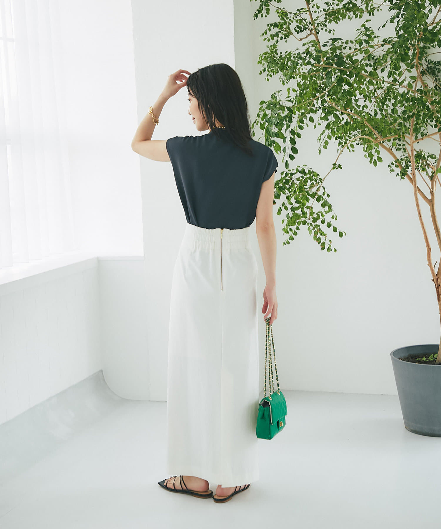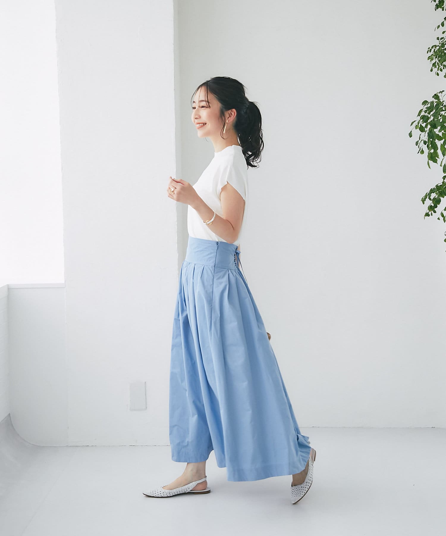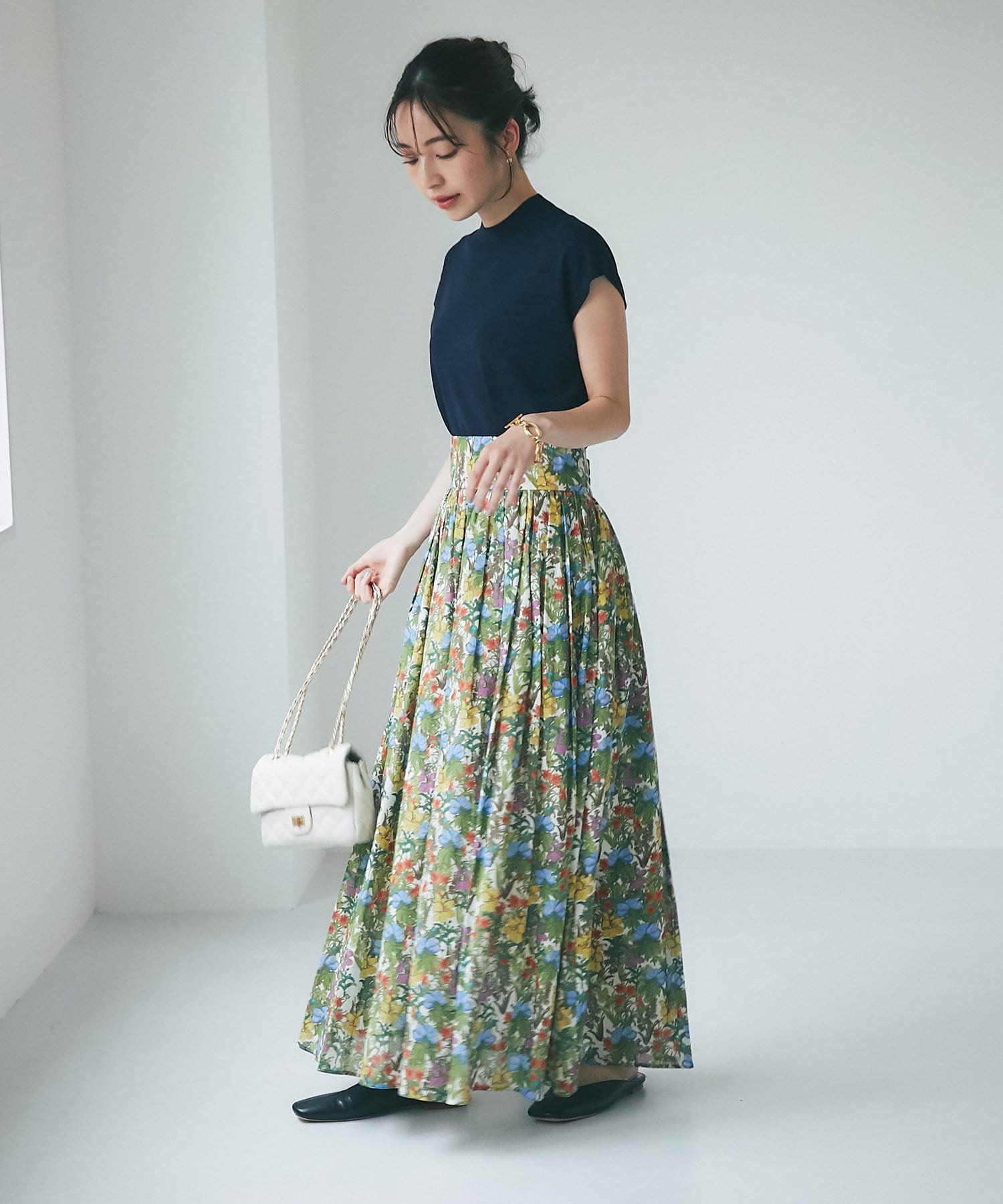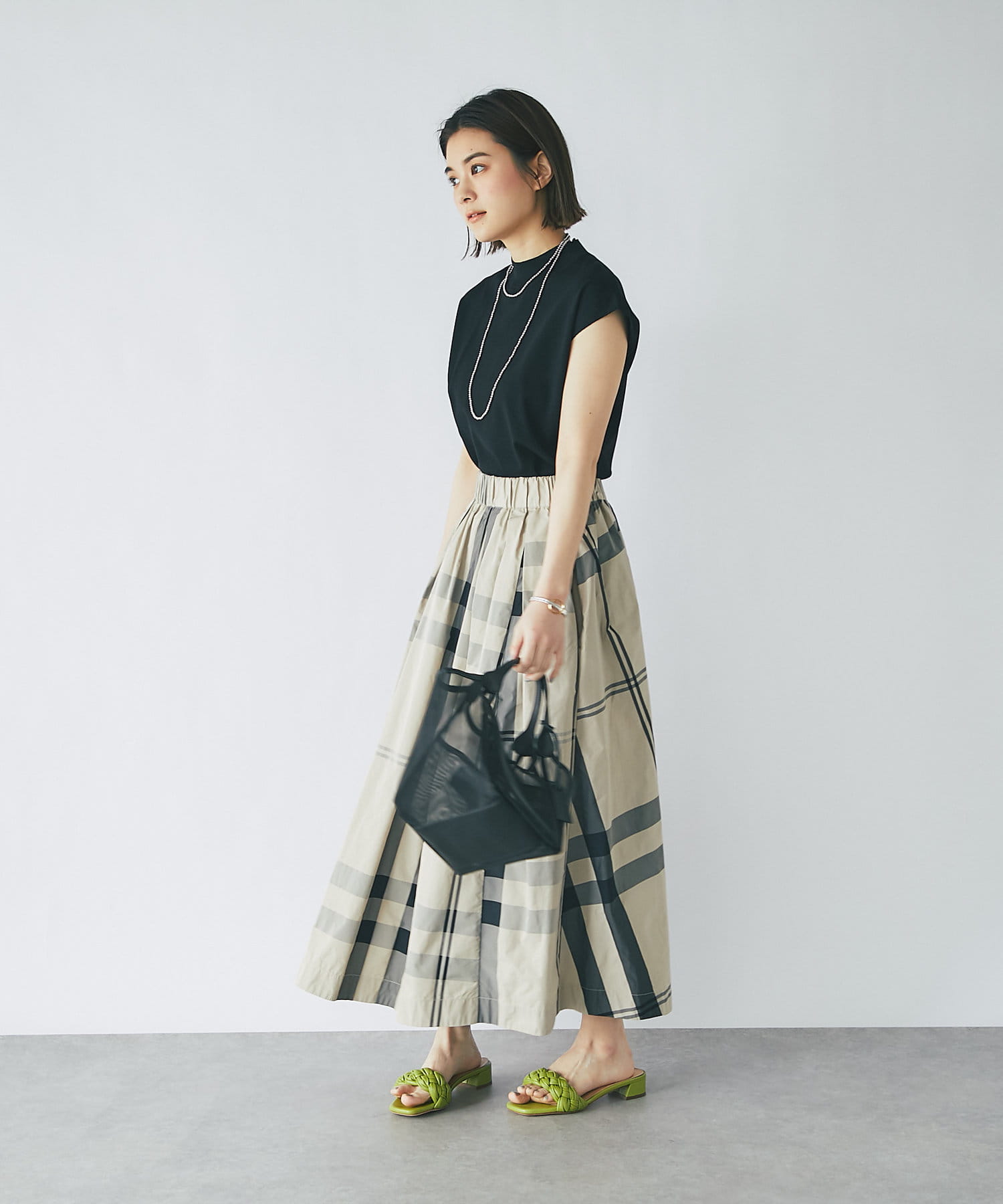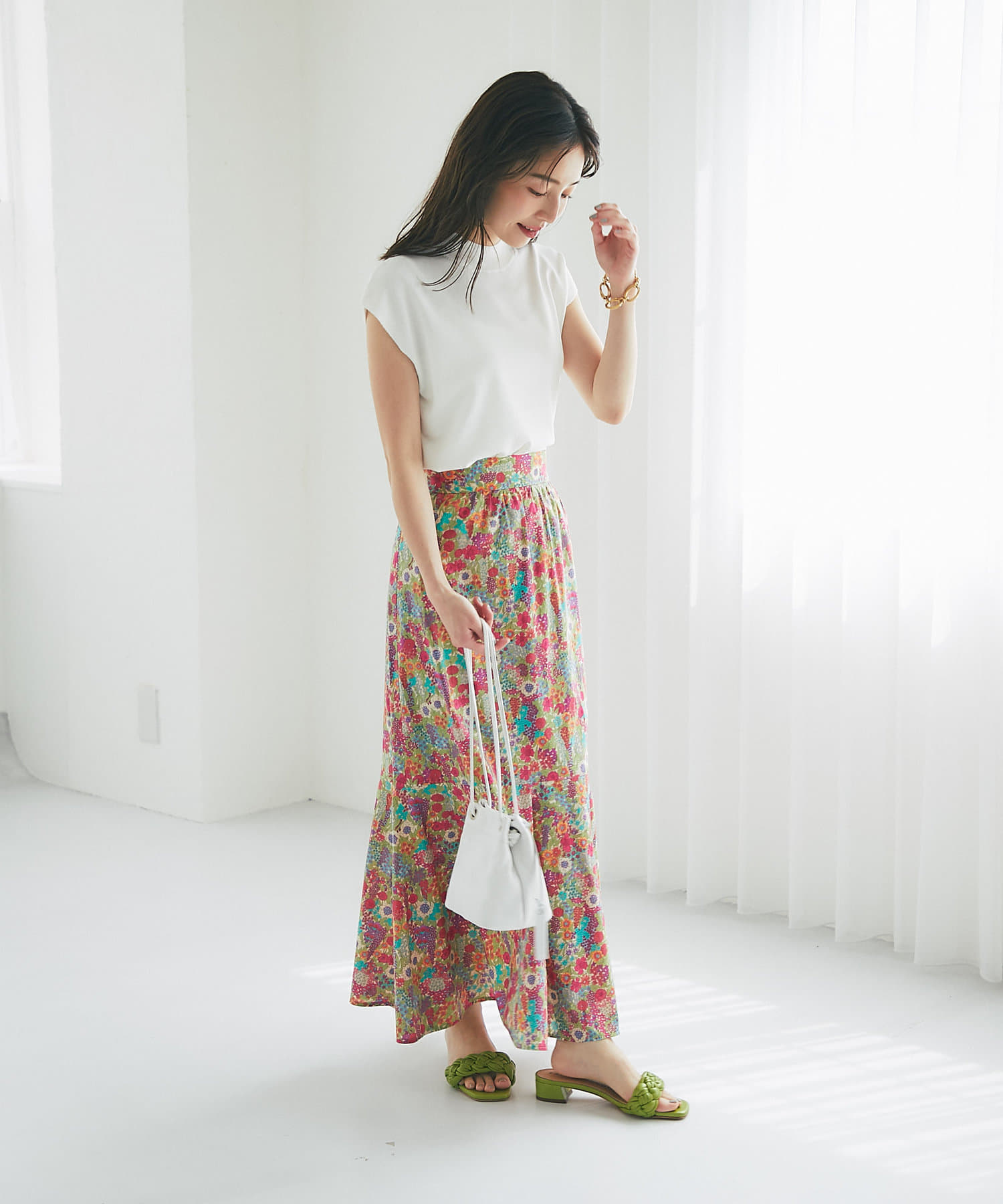 柄スカートなど華やかなボトムの合わせに使いやすいアイテムです。