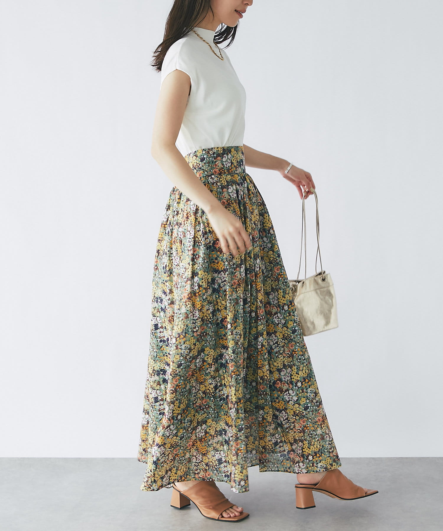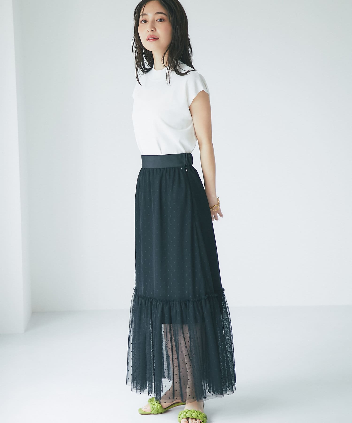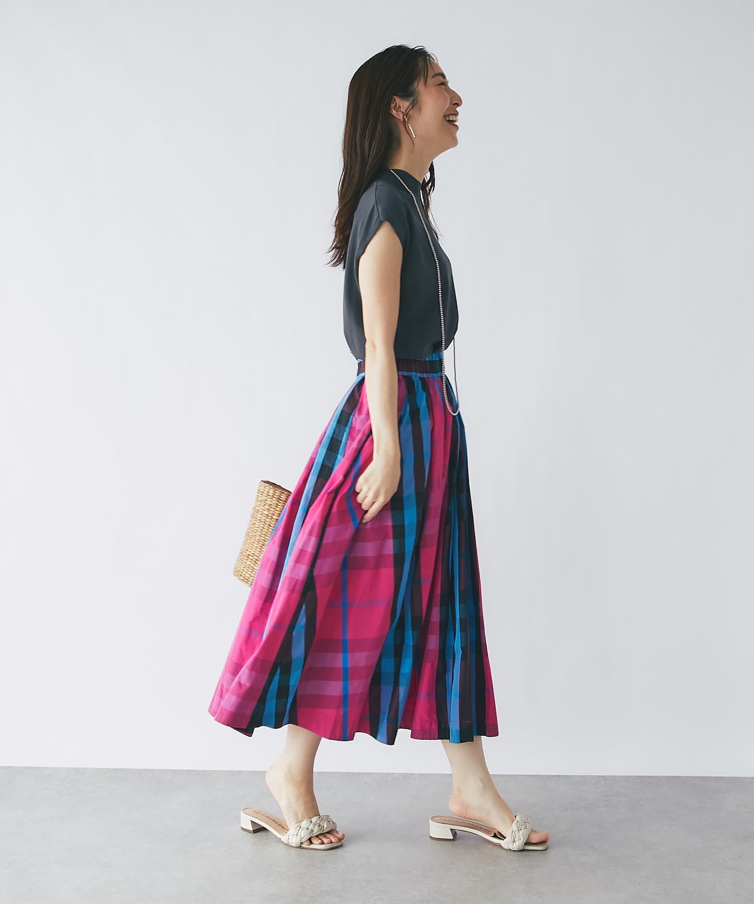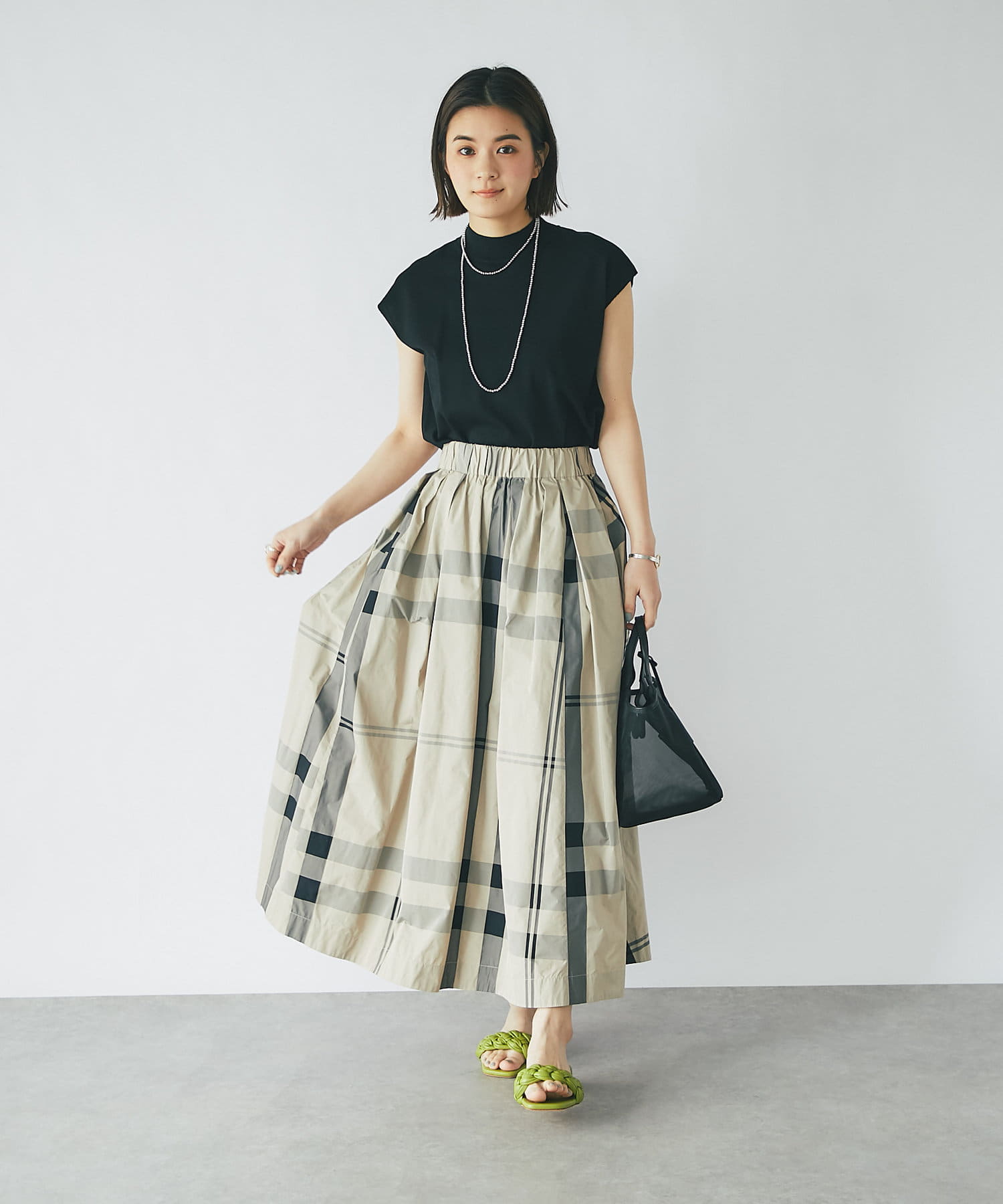 柄スカートなど華やかなボトムの合わせに使いやすいアイテムです。