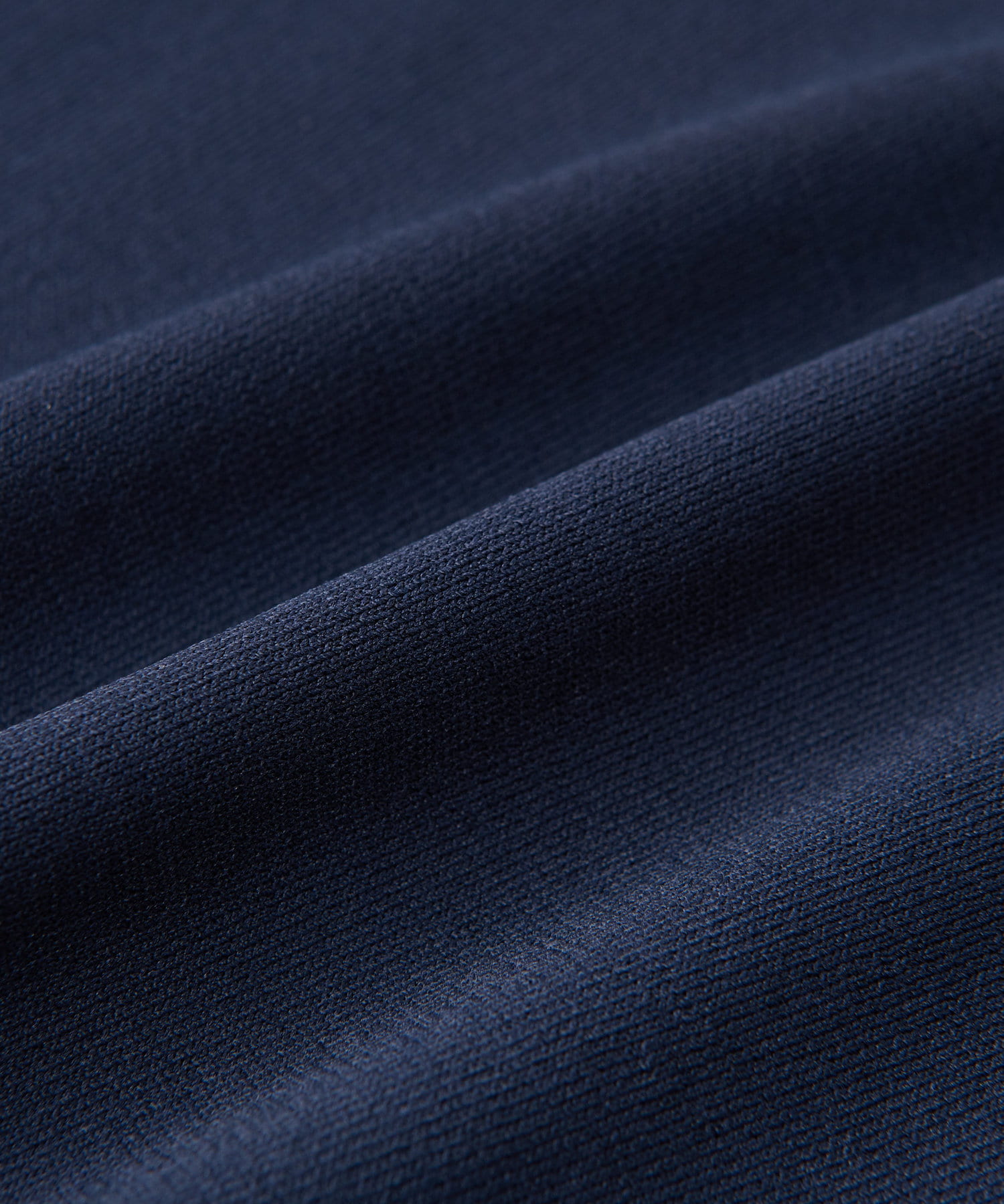 目の詰まった編地に、マットな光沢面できれいめな印象に。