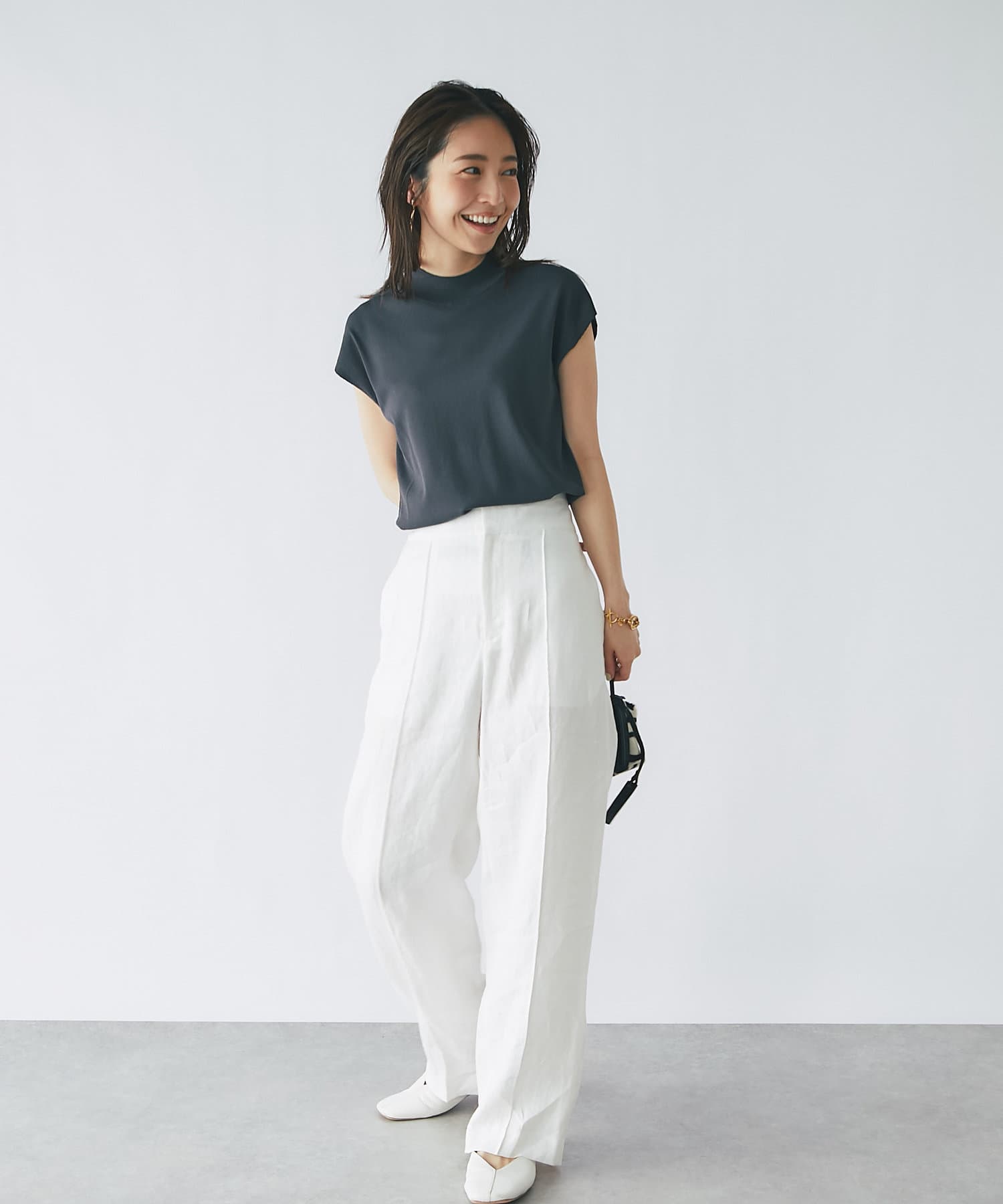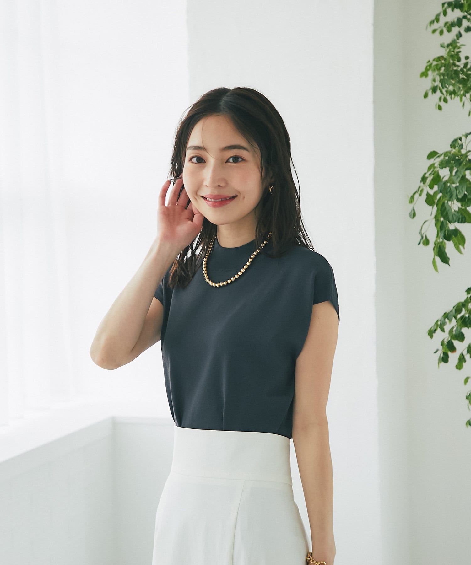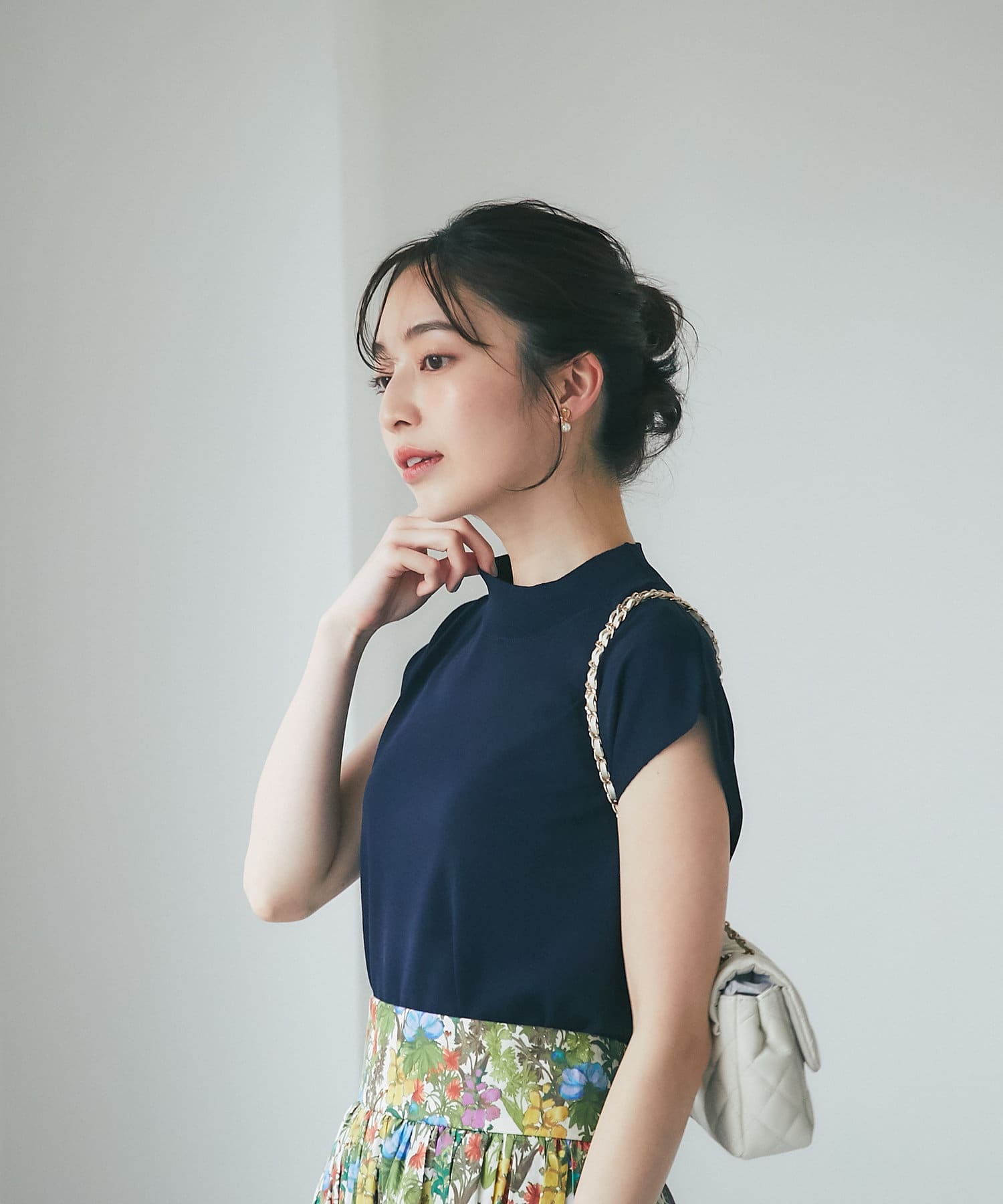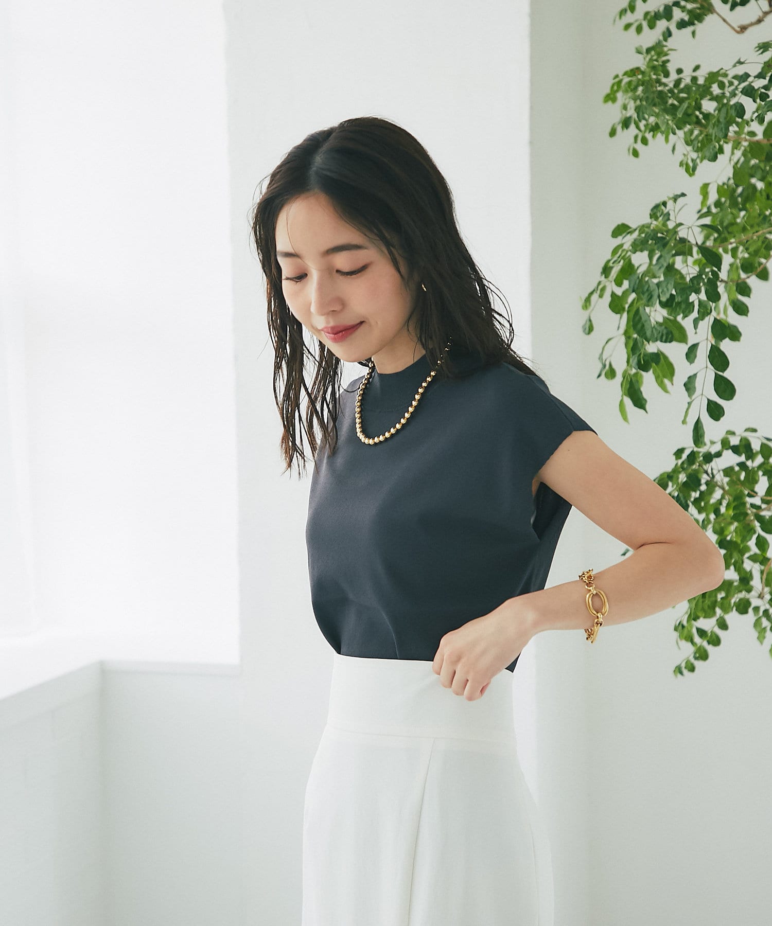 #大人カジュアル #きれいめカジュアル #シンプル #ハイネック #ベーシック #上品カジュアル #デイリー #大人女子 #モテ女子 #モテコーデ #モテ服 #通勤コーデ #手洗い可 #オンスタイル #オフィスカジュアル #無地 #クールタッチ #フレンチスリーブ #シンプルニット