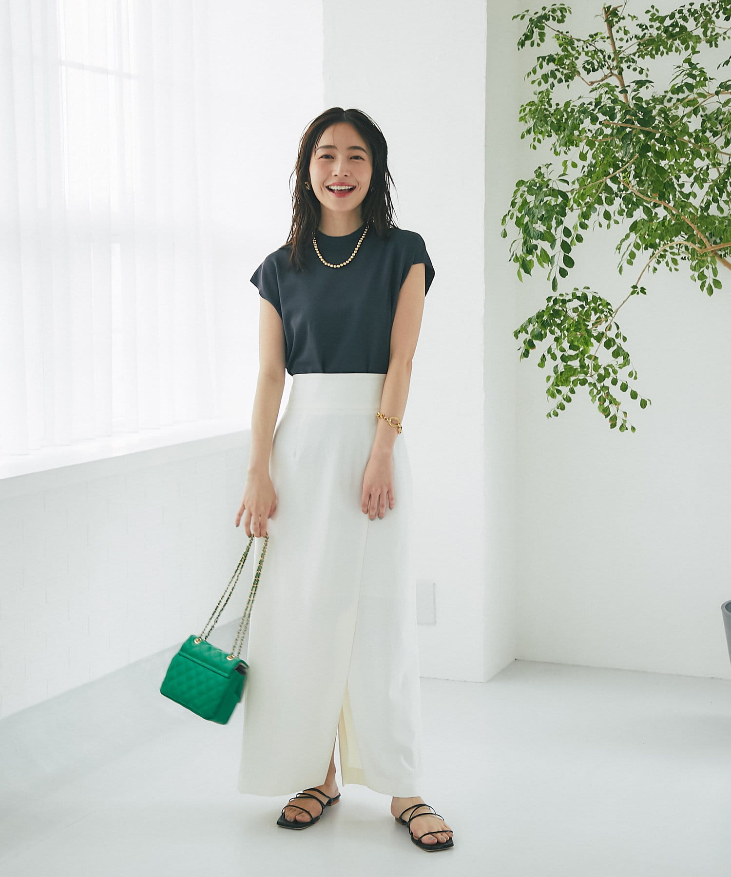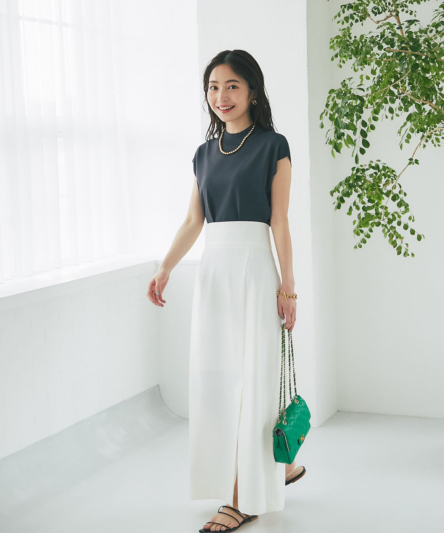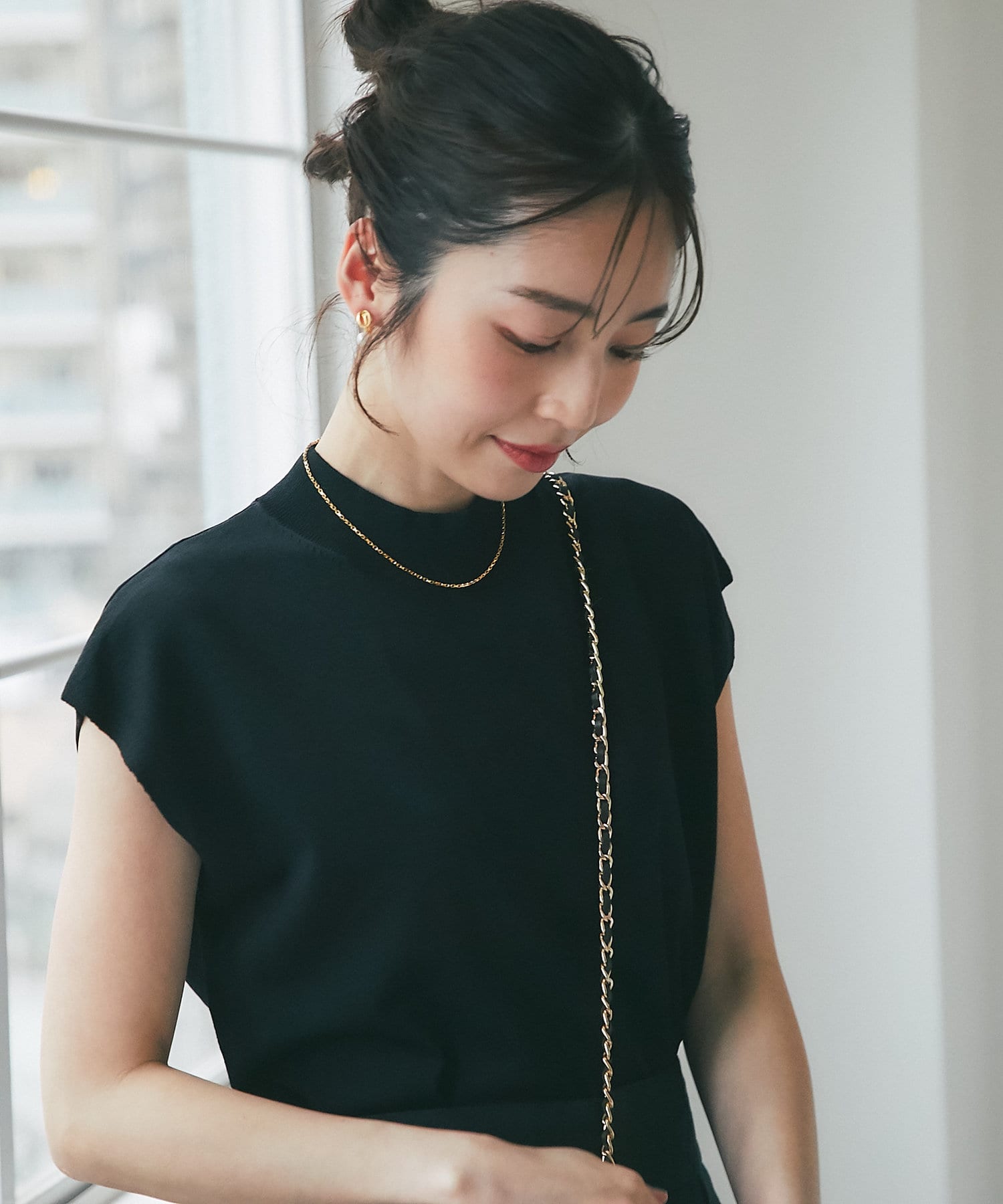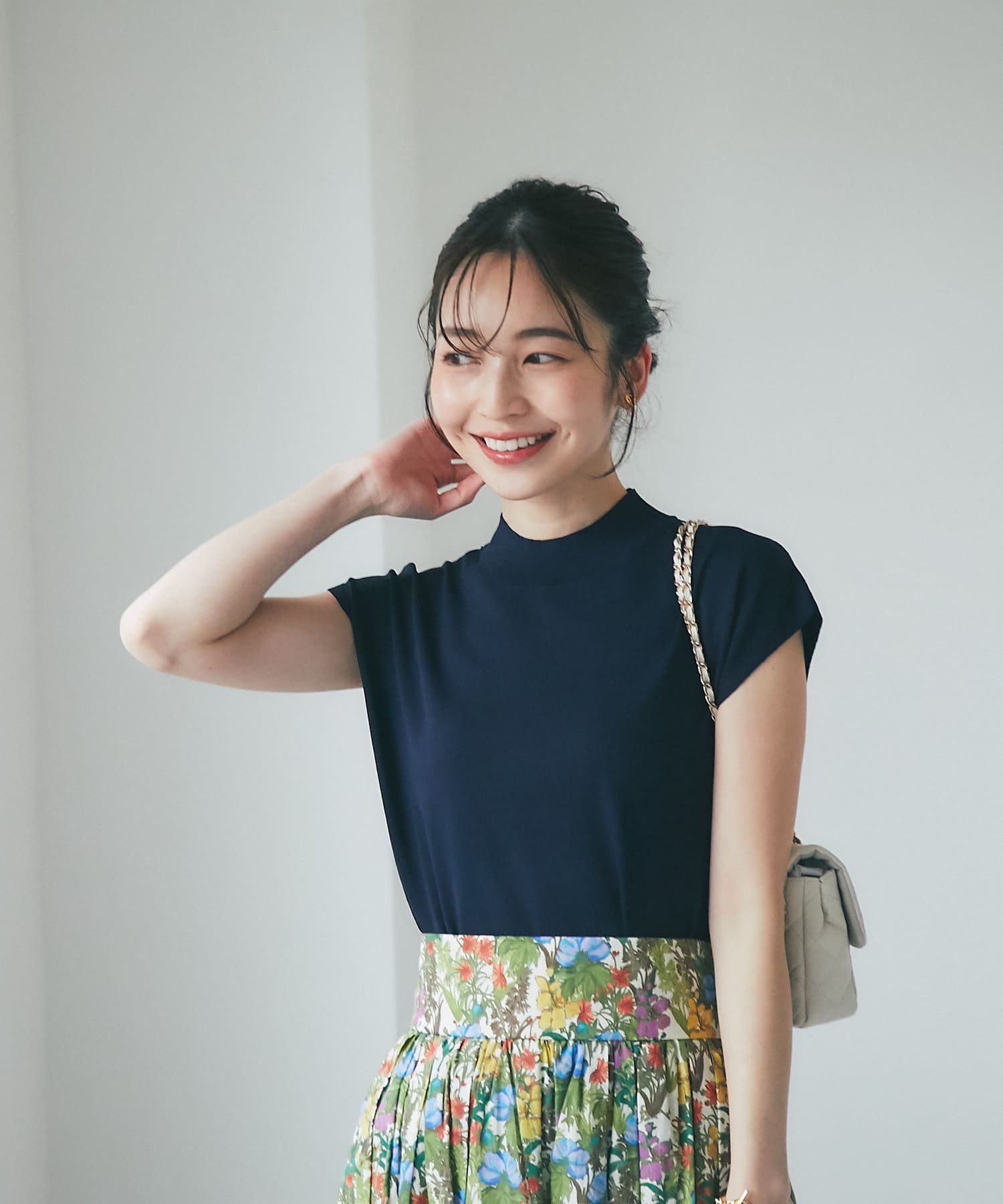 #大人カジュアル #きれいめカジュアル #シンプル #ハイネック #ベーシック #上品カジュアル #デイリー #大人女子 #モテ女子 #モテコーデ #モテ服 #通勤コーデ #手洗い可 #オンスタイル #オフィスカジュアル #無地 #クールタッチ #フレンチスリーブ #シンプルニット