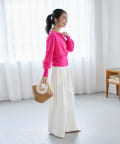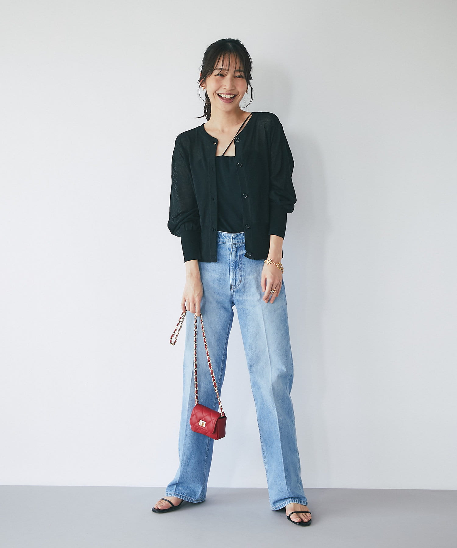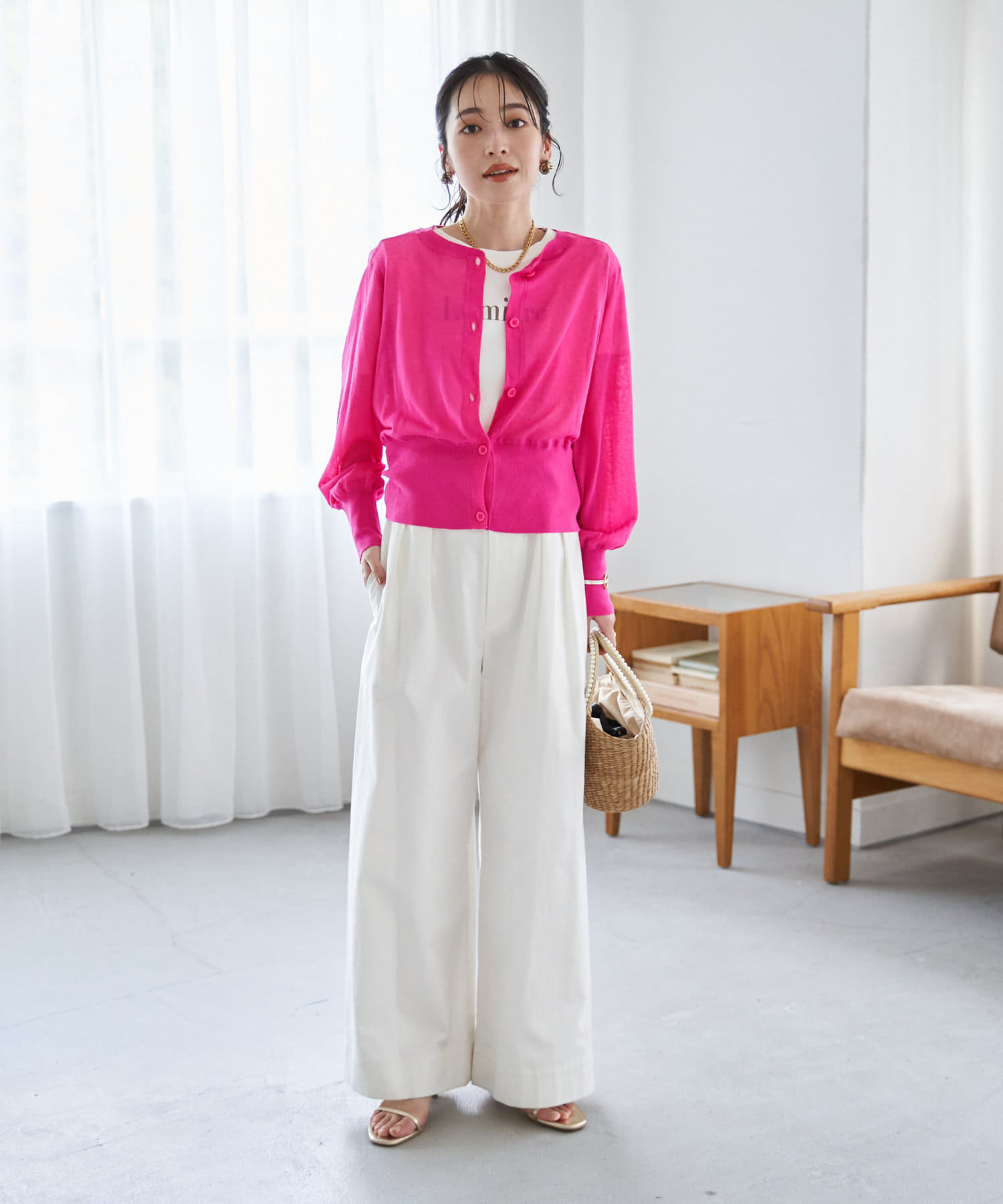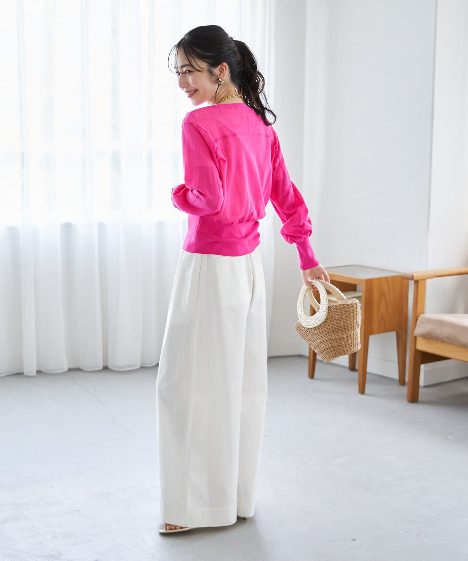 ワイドパンツなどカジュアルなボトムに合わせるのも抜け感が出ておすすめです。