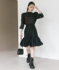 セットアップのスカートと合わせて着ればお呼ばれにもピッタリの華やかコーデに。