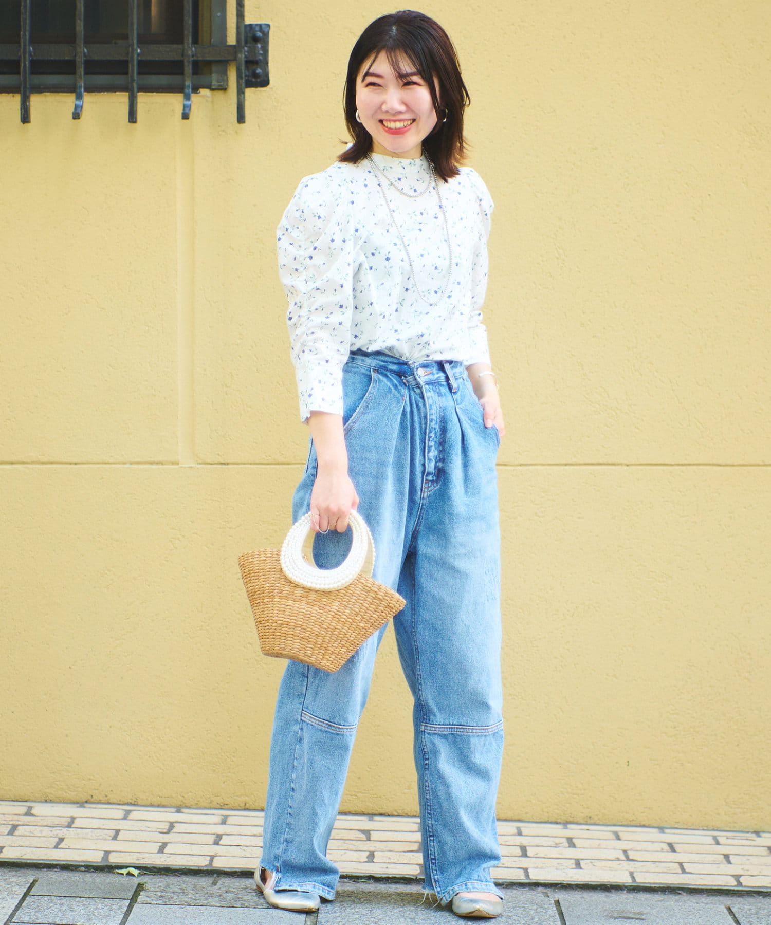 単品でも華やかなアイテムなので、デニムに合わせてカジュアルダウンもおすすめです。