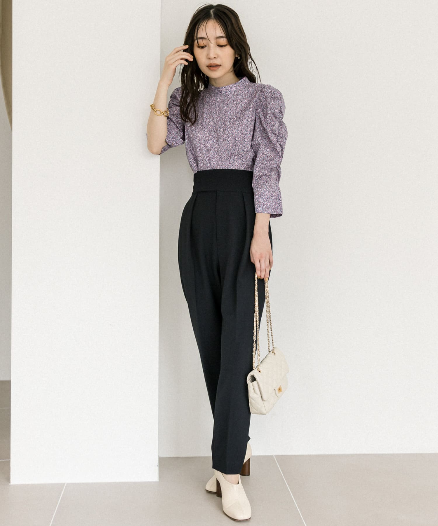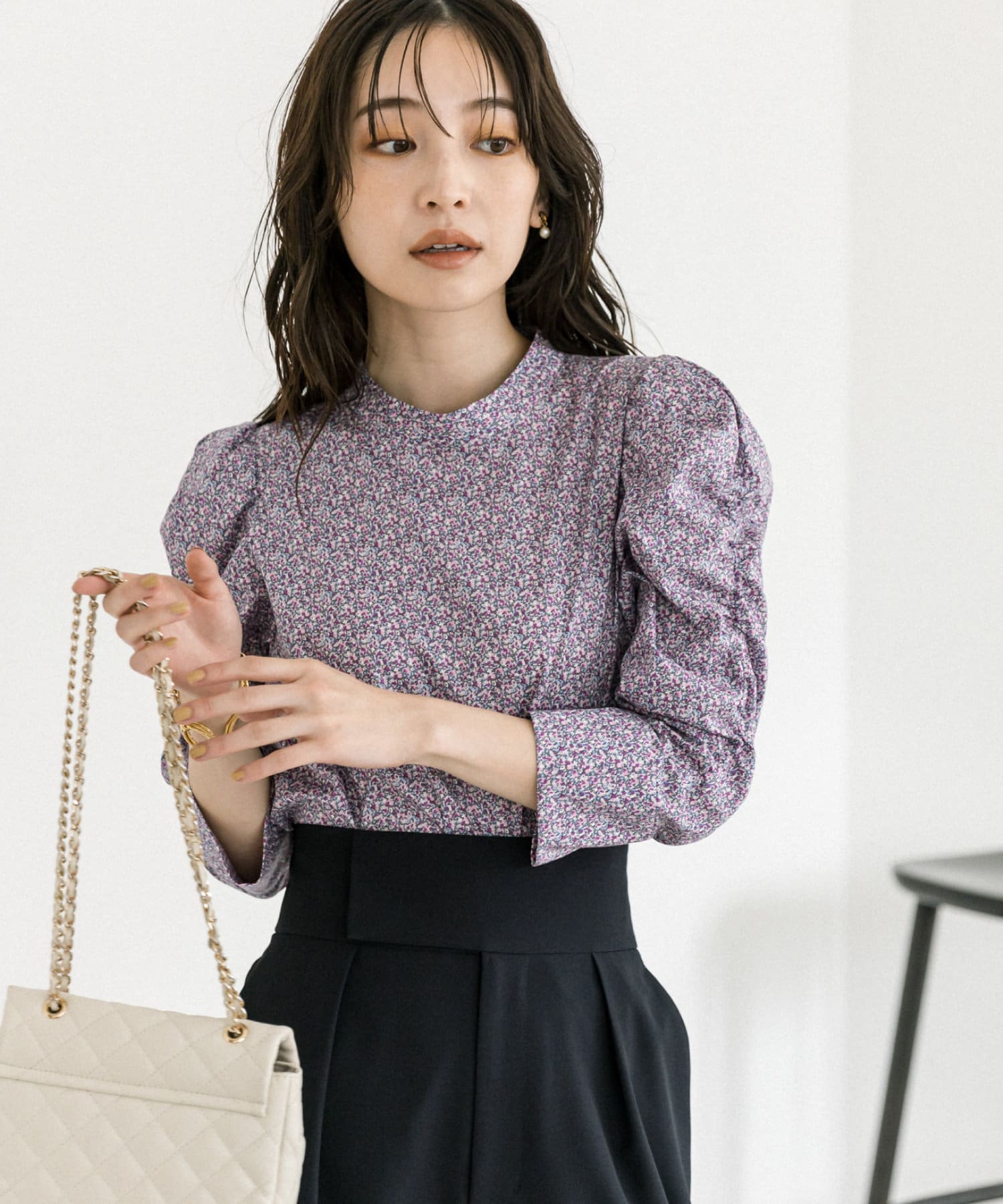 立体的なギャザースリーブで華奢見えが叶うレディなブラウスです。