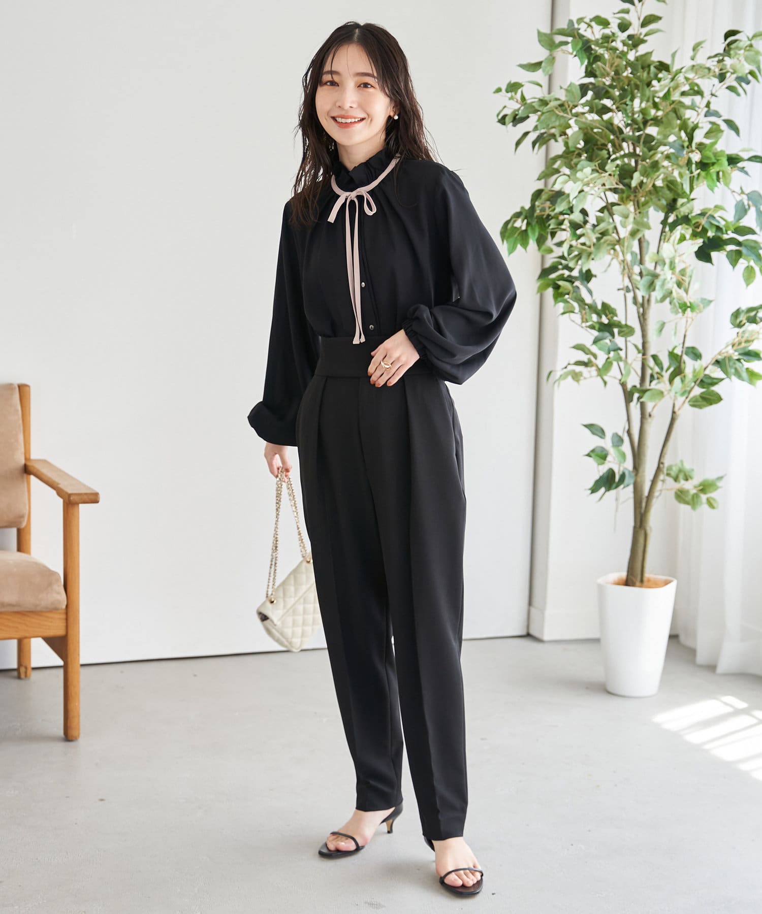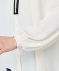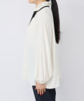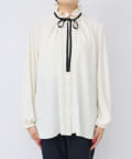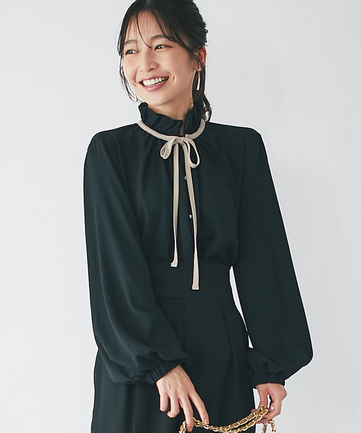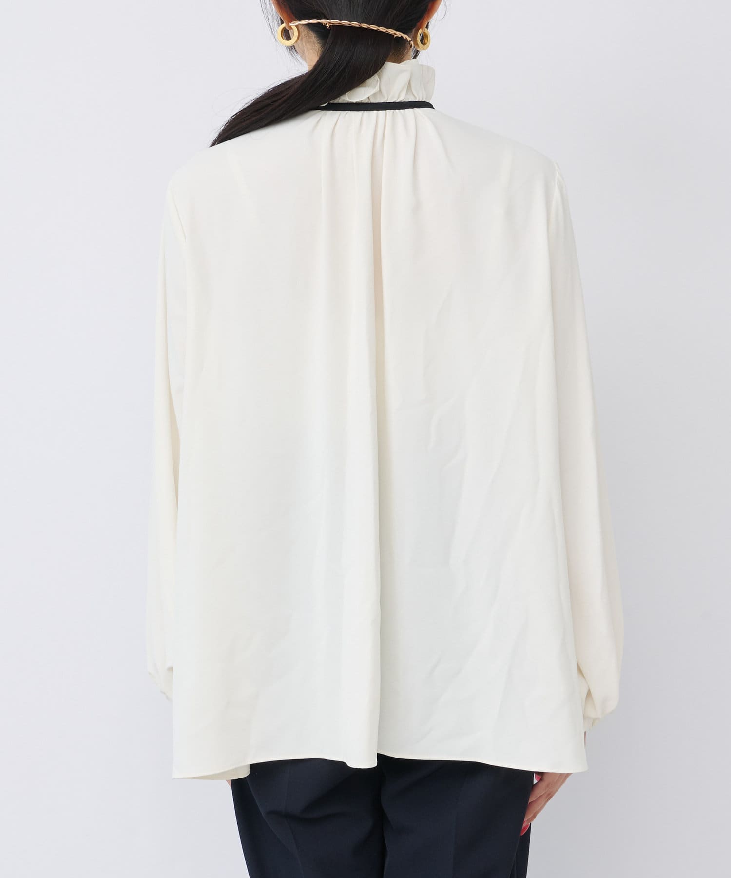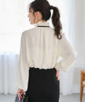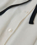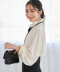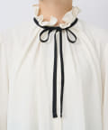 繊細なフリルとバイカラーのリボンが顔周りを華やかにするデザインブラウス。