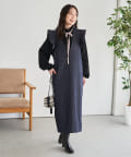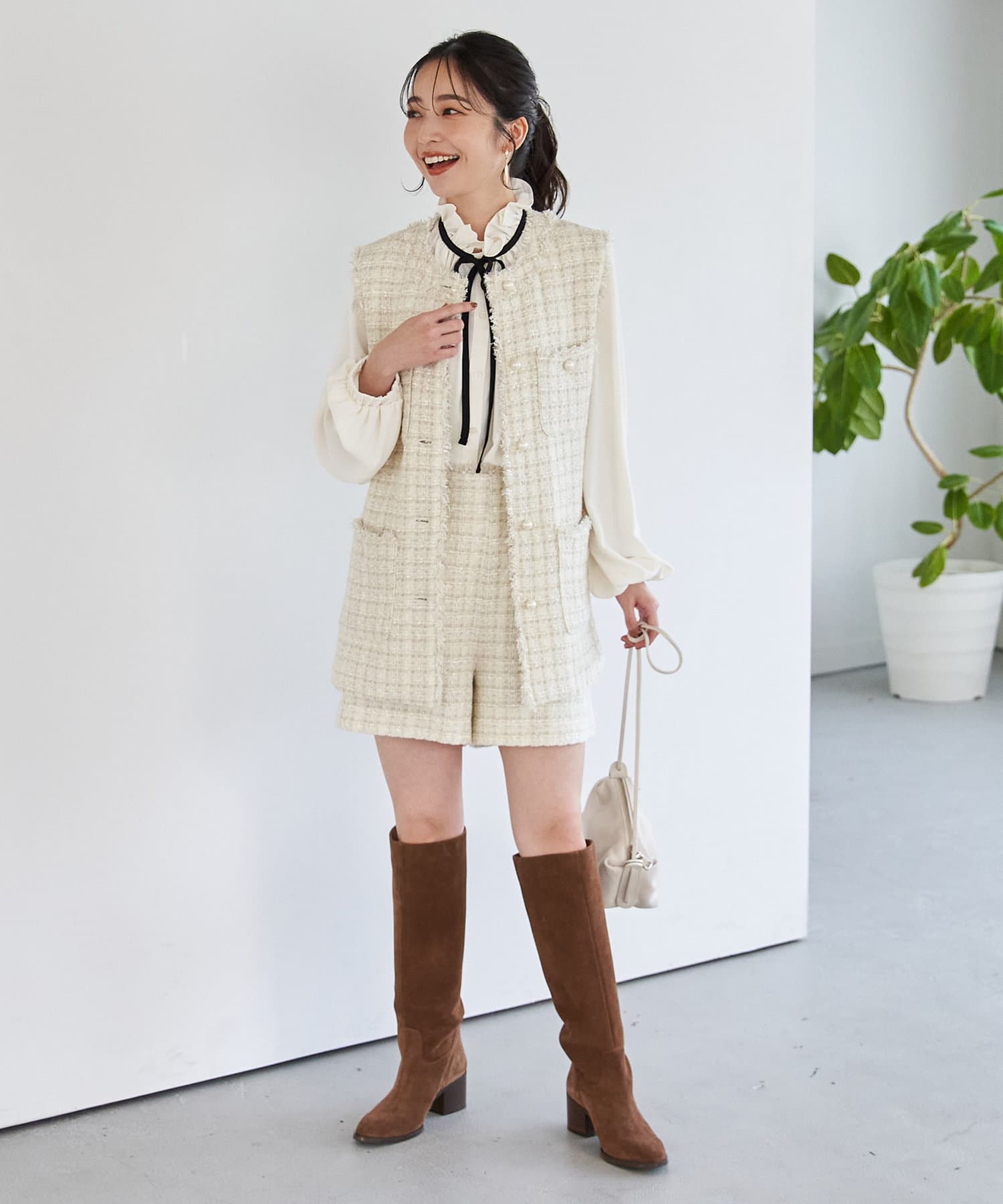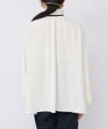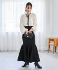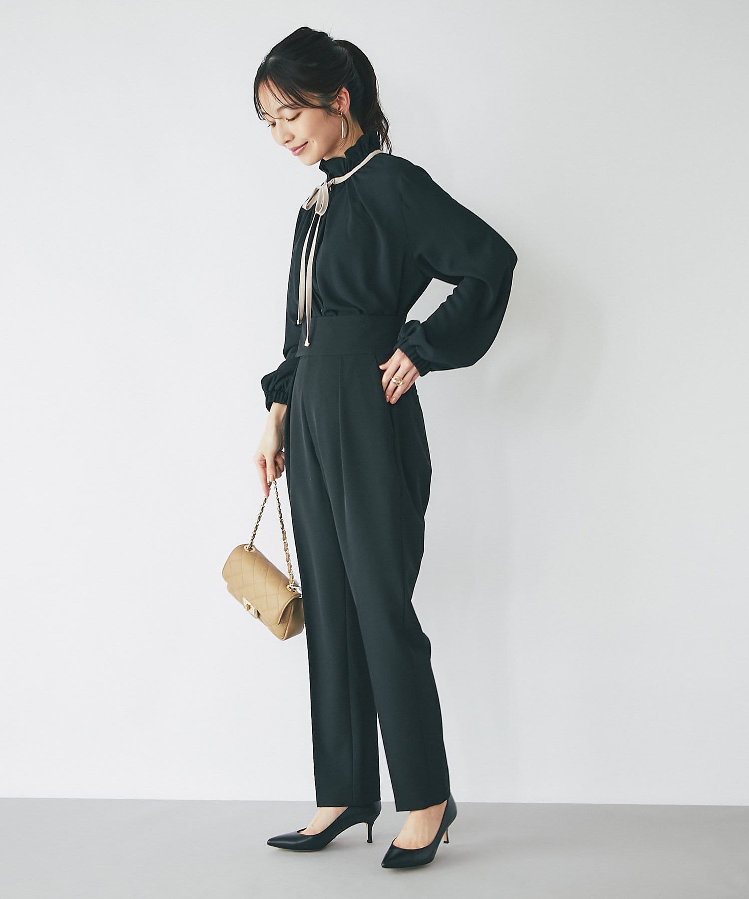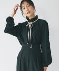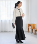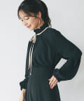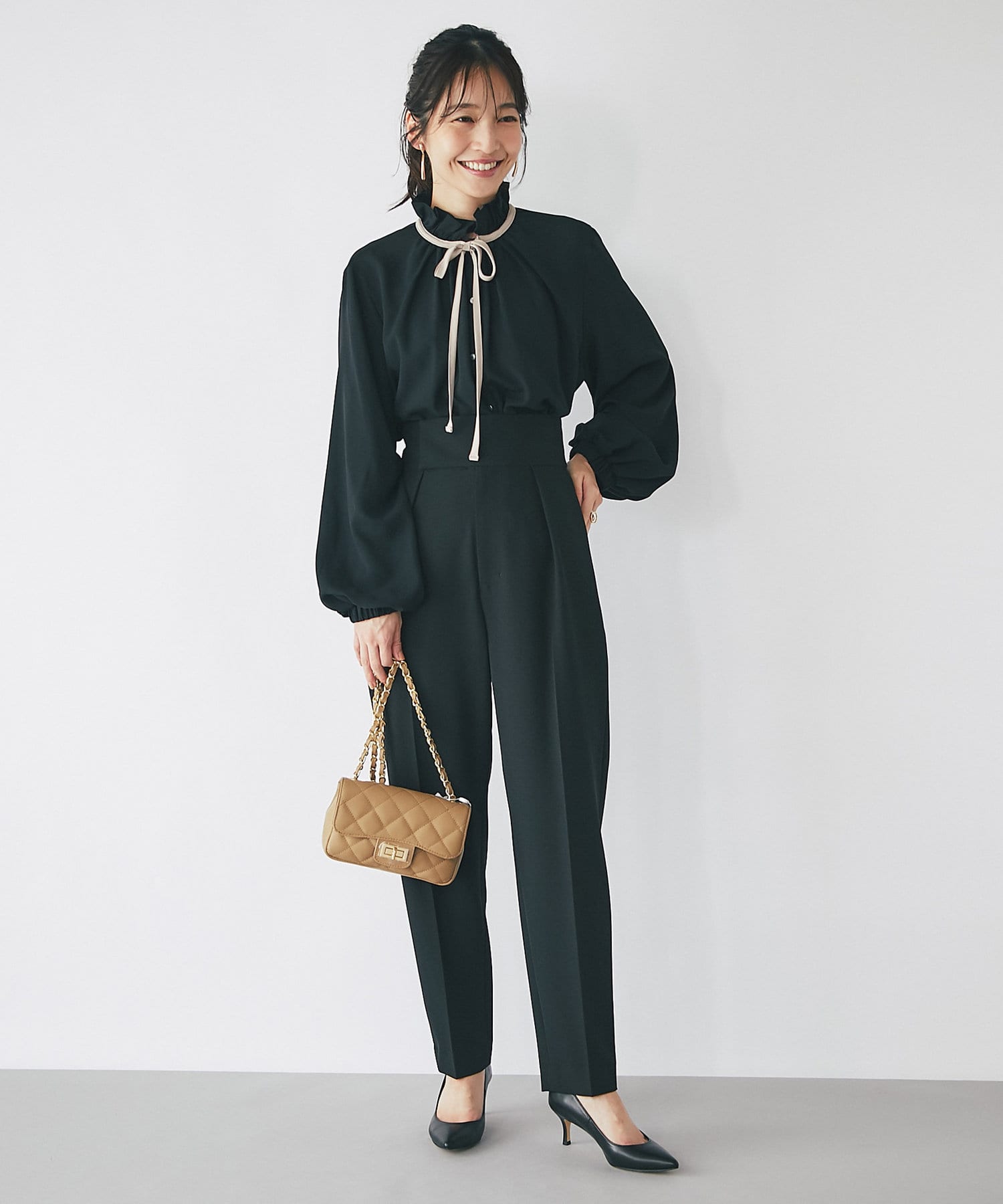 繊細なフリルとバイカラーのリボンが顔周りを華やかにするデザインブラウス。
