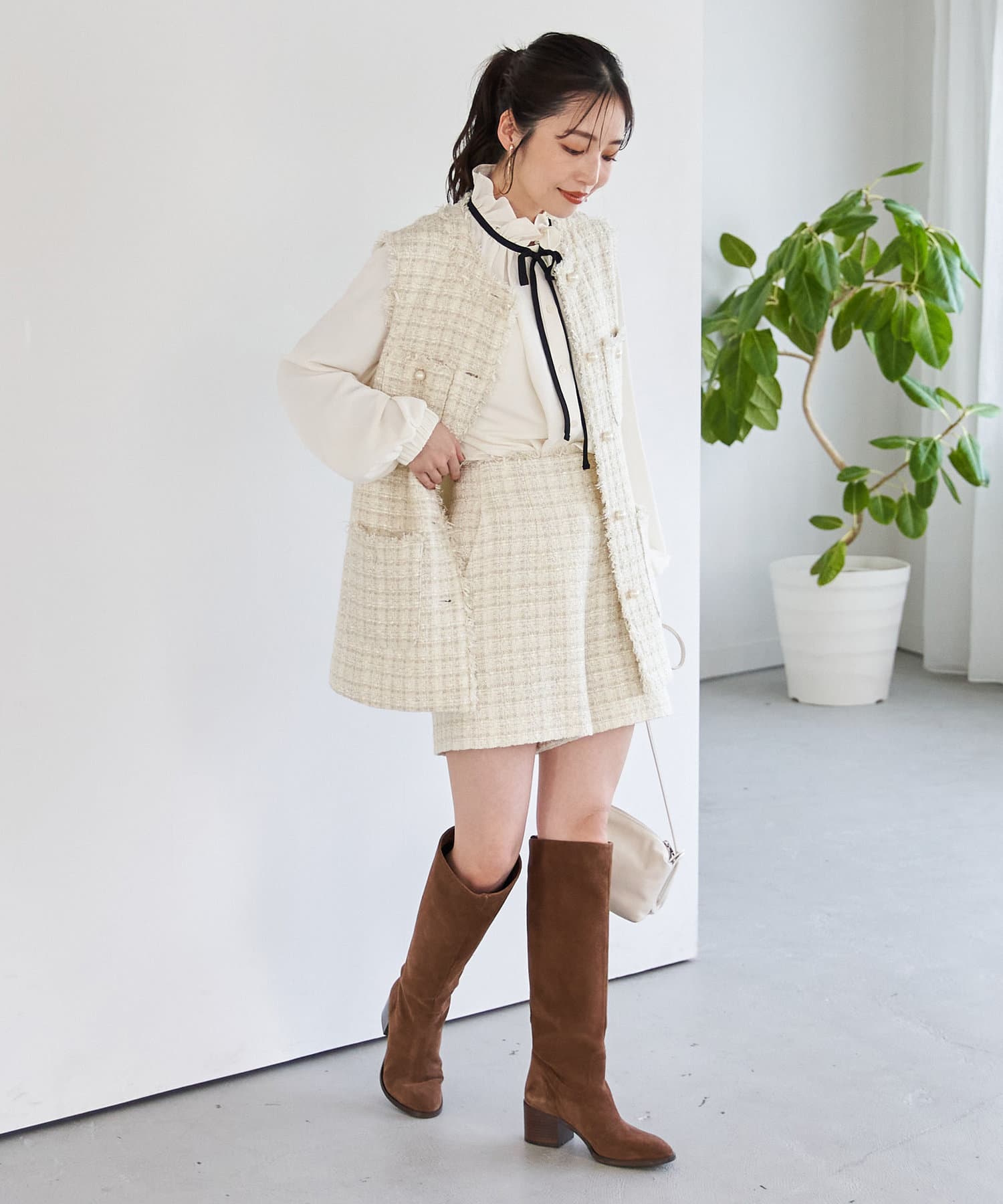 タイトパンツに合わせたりインでフレアスカートに合わせたりと、