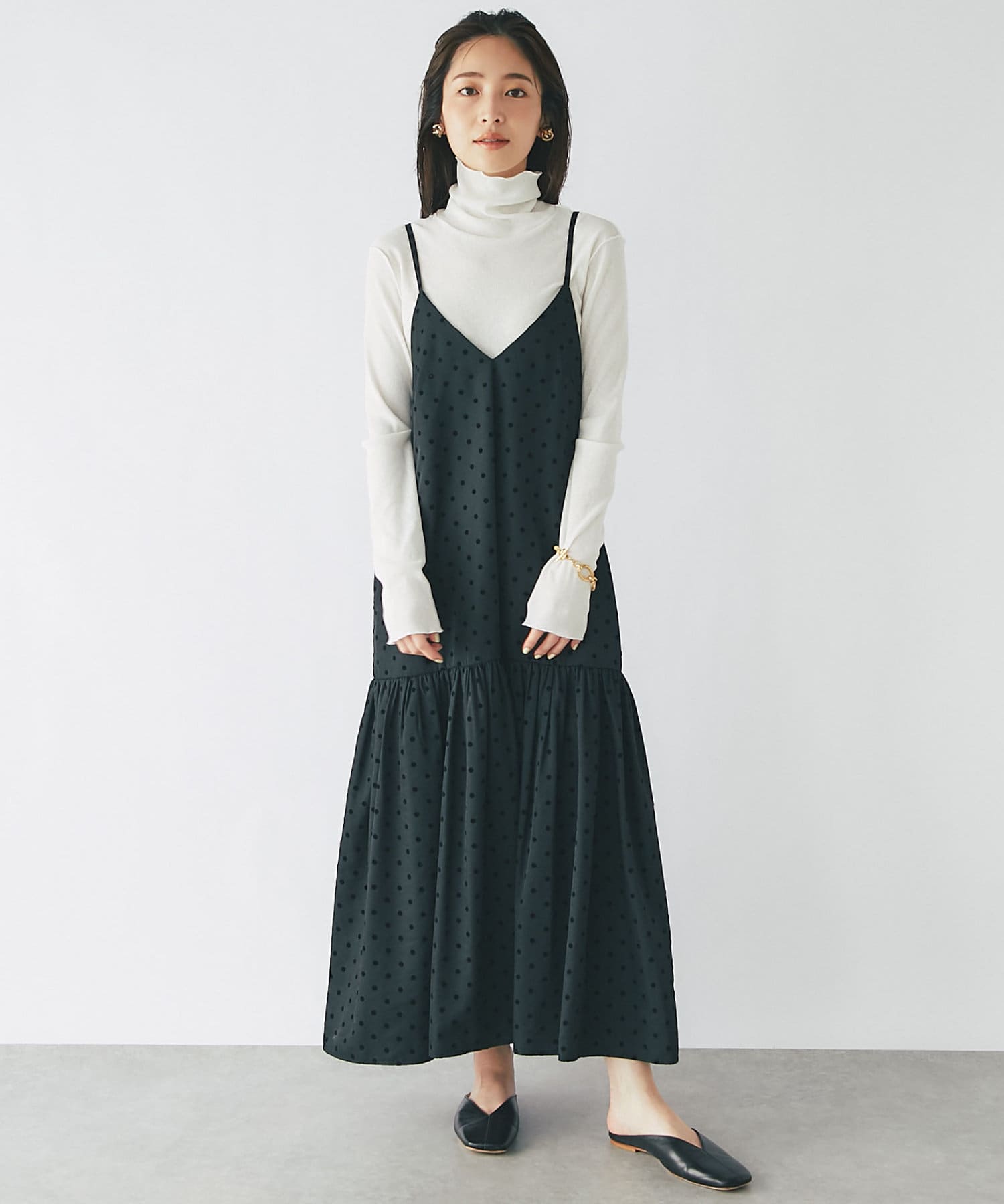 フロッキードットキャミワンピース