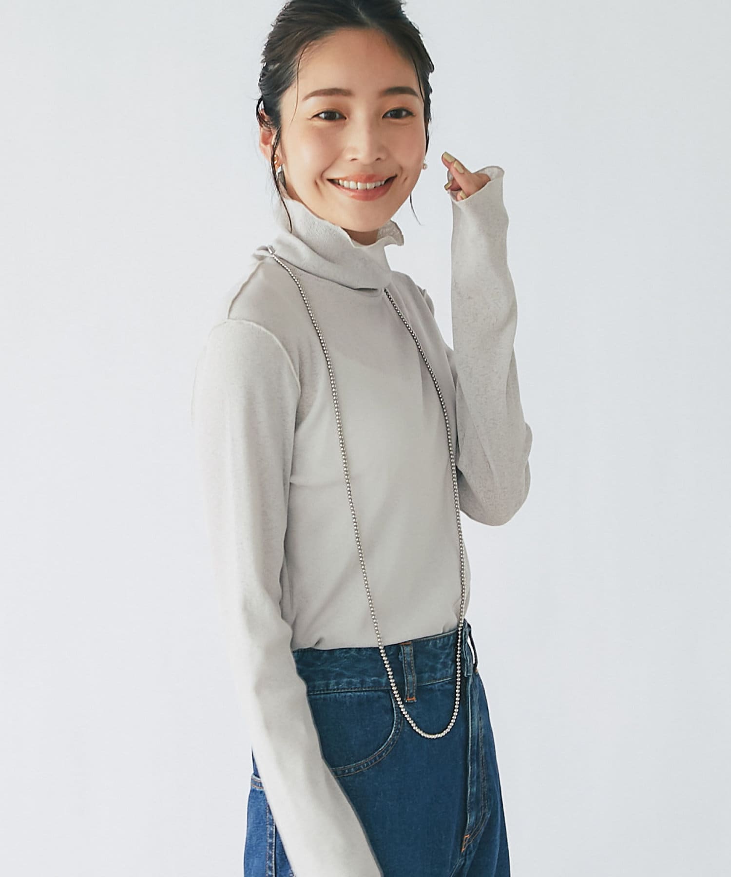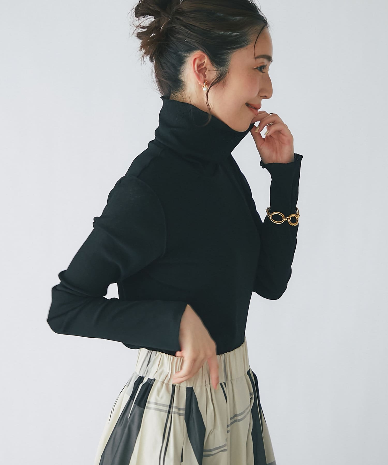 着まわしやすいタートルネックカットソー。
