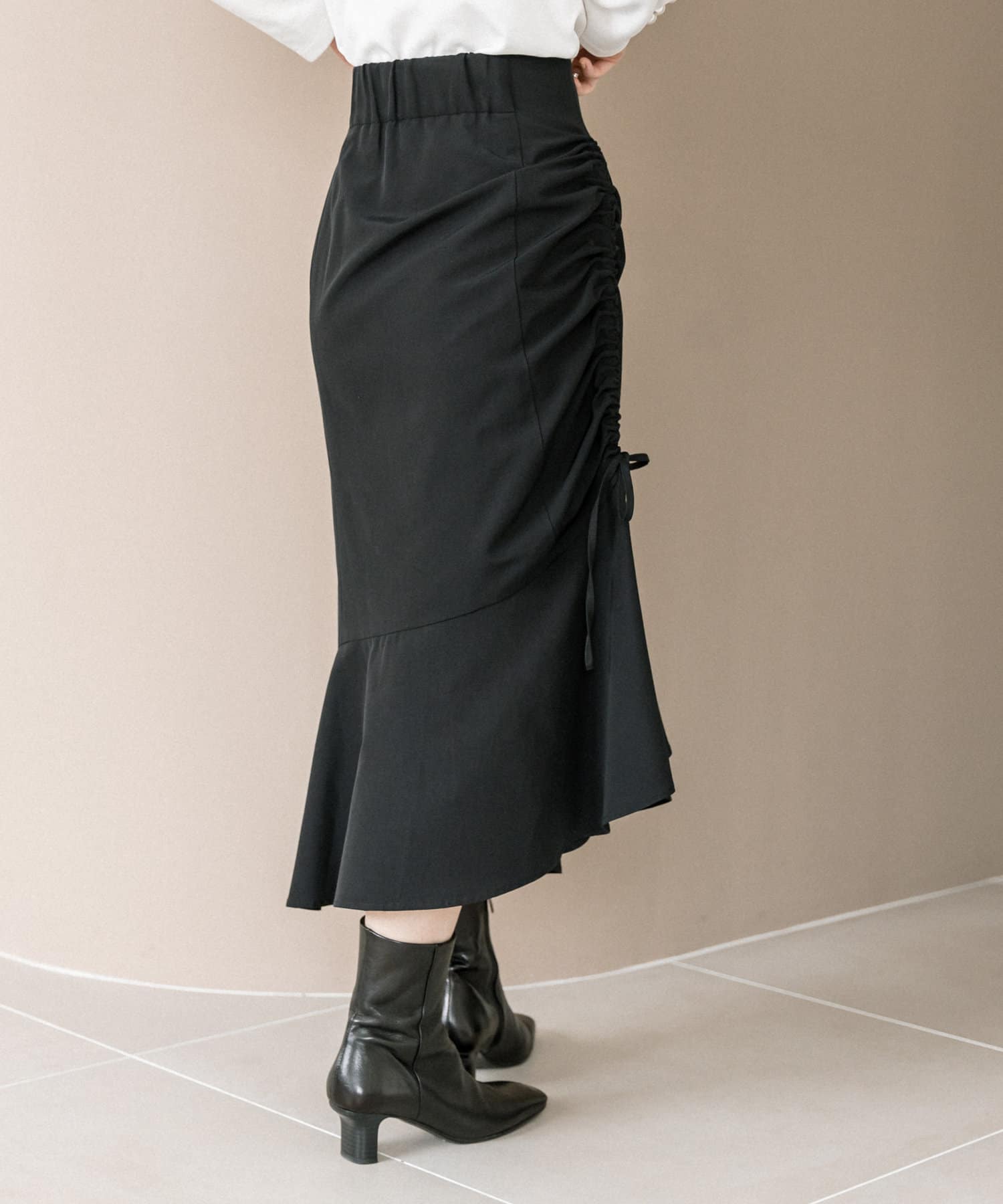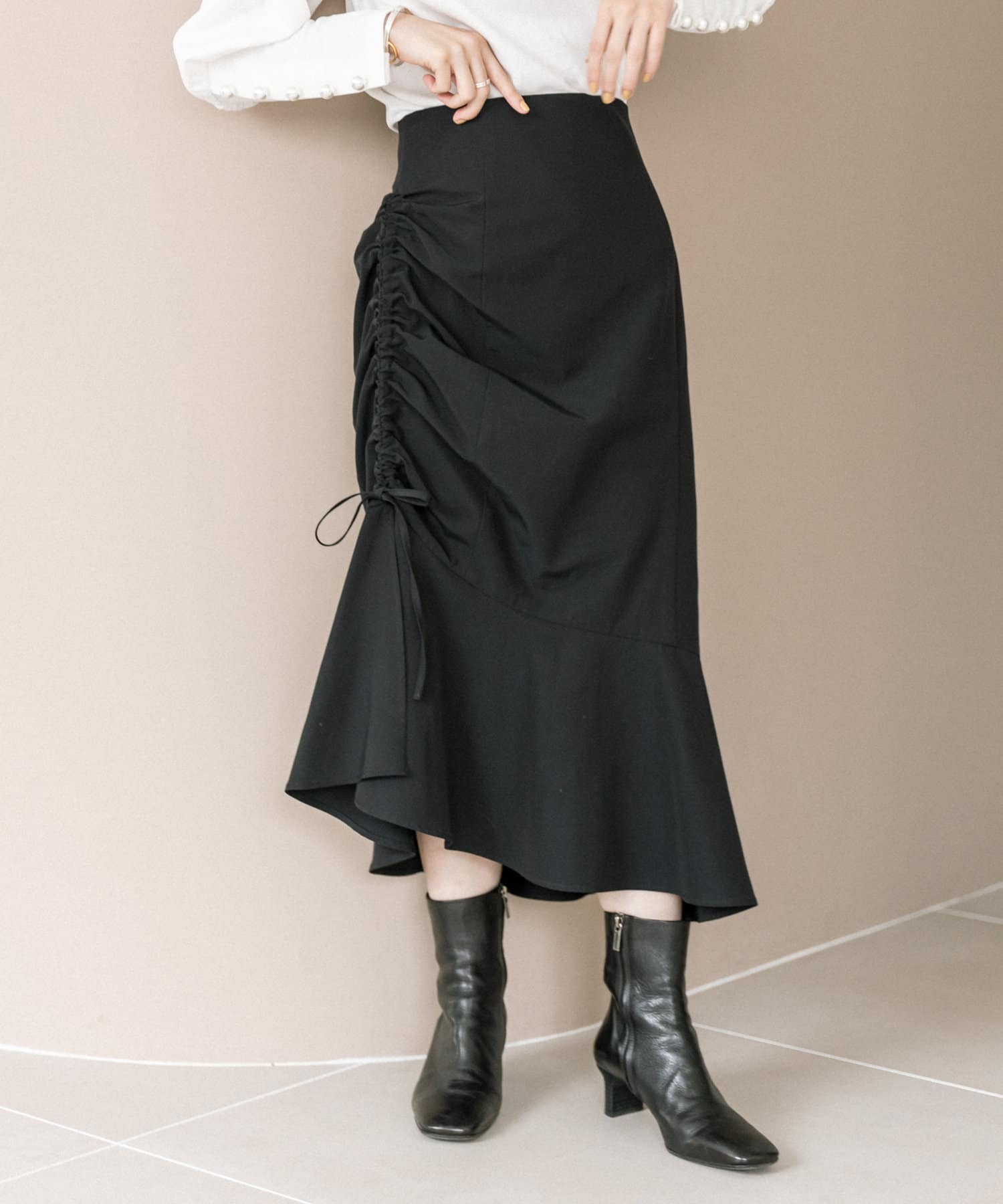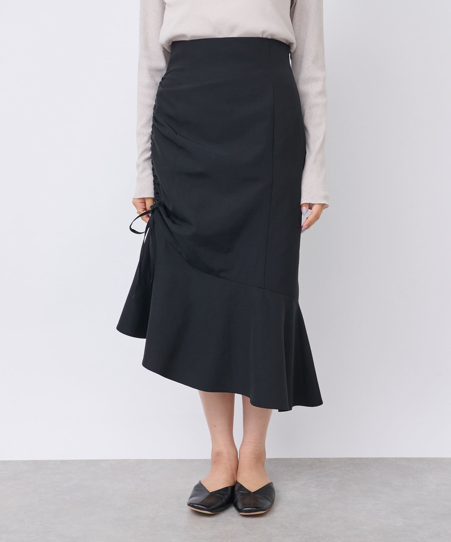 【最旬ルック】アシメドロストギャザースカート