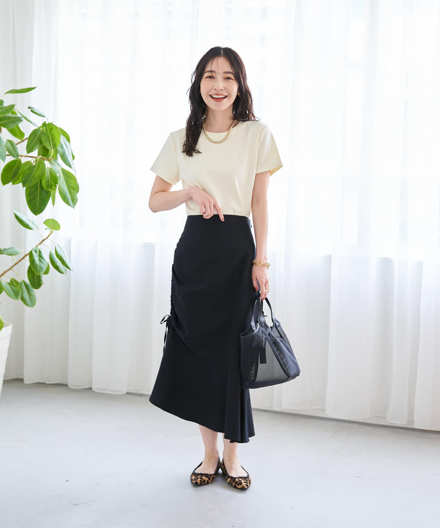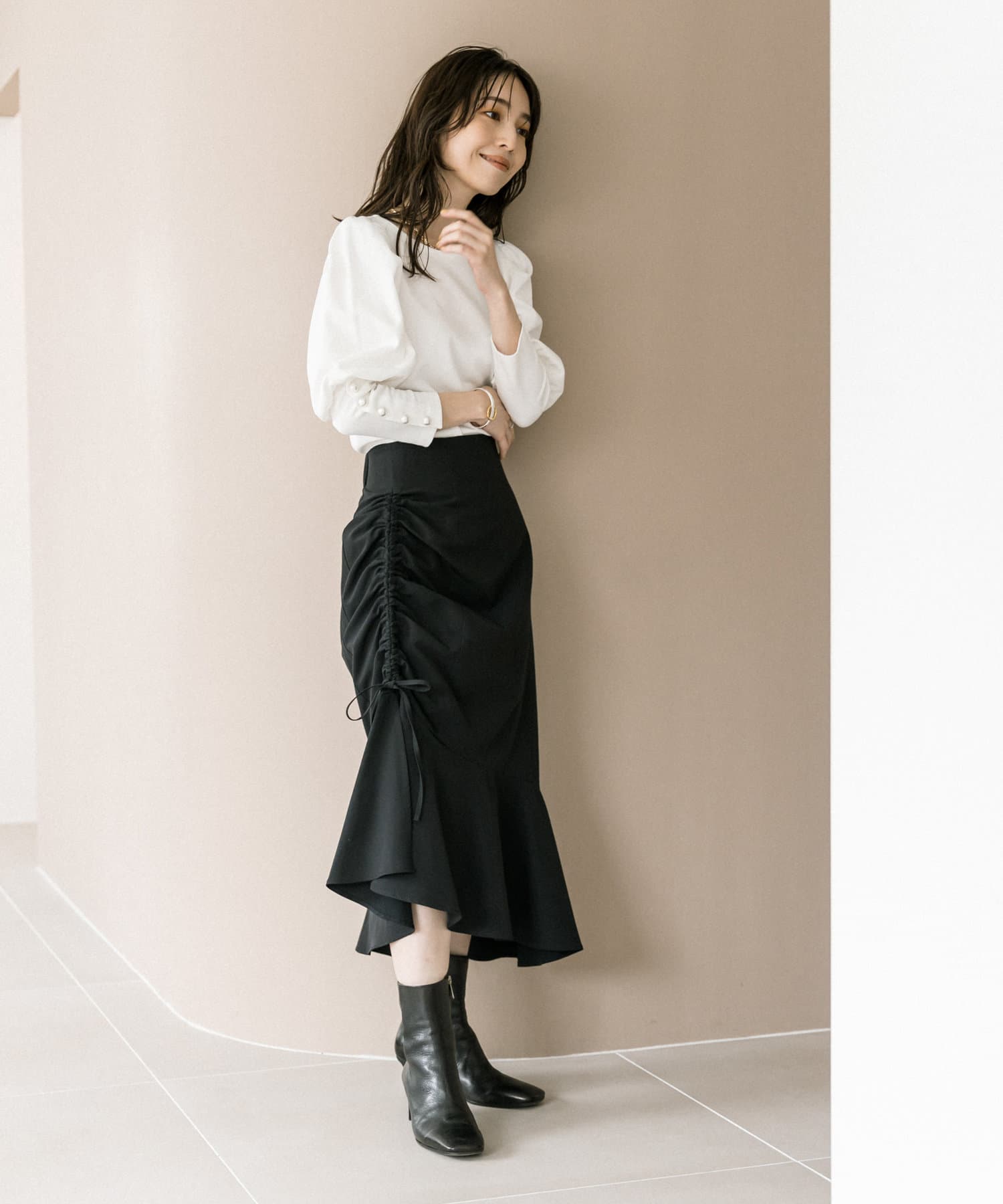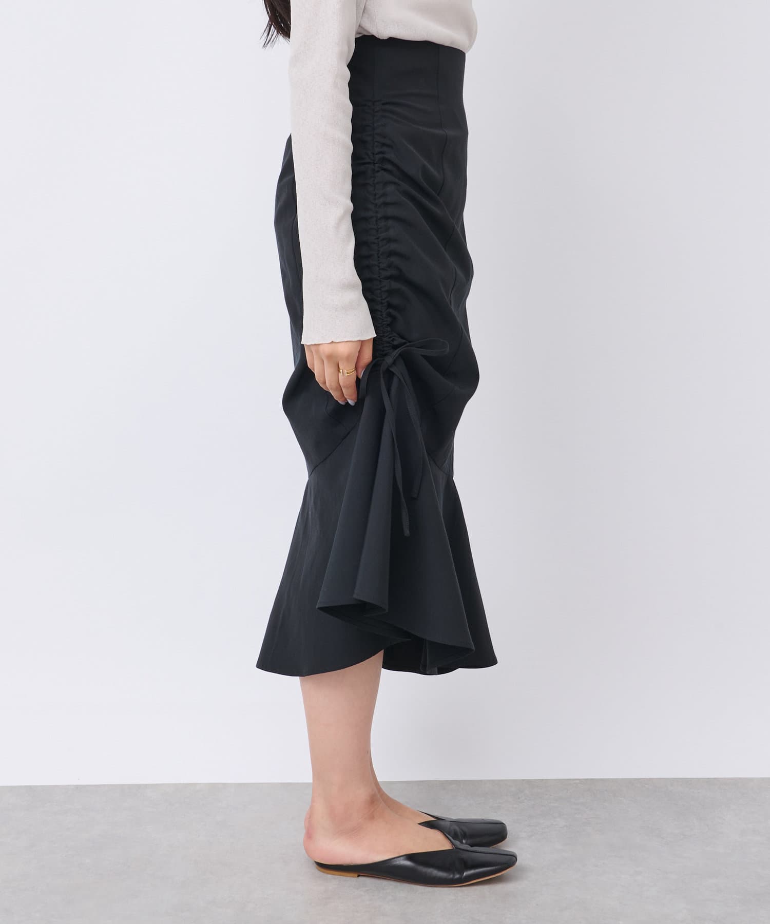 【最旬ルック】アシメドロストギャザースカート