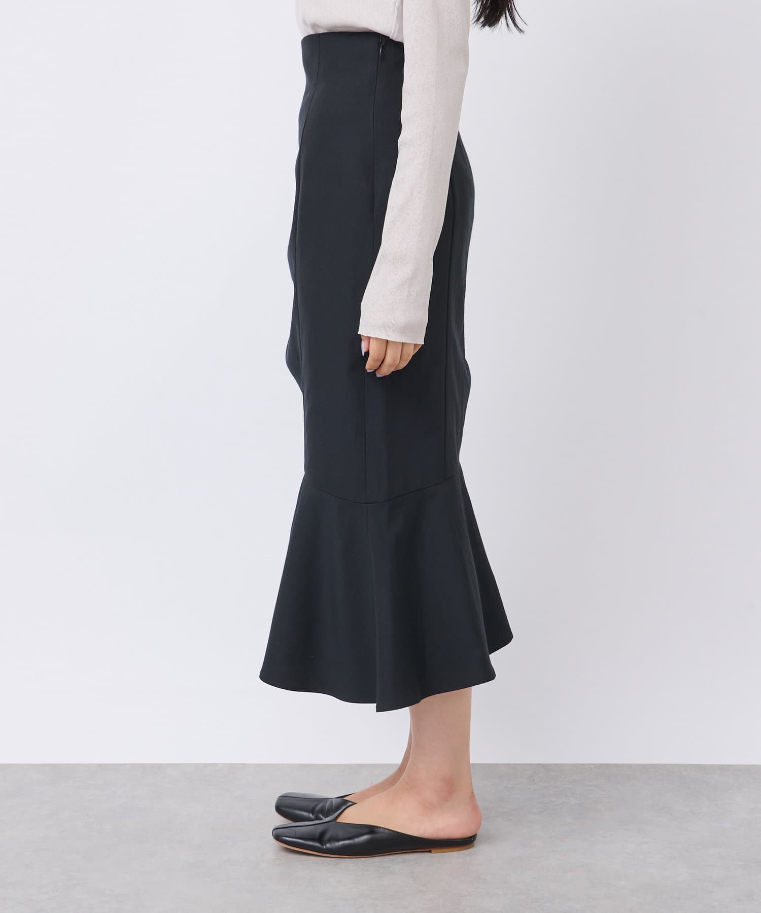アシンメトリーラインが印象的な、大人のデザインスカート