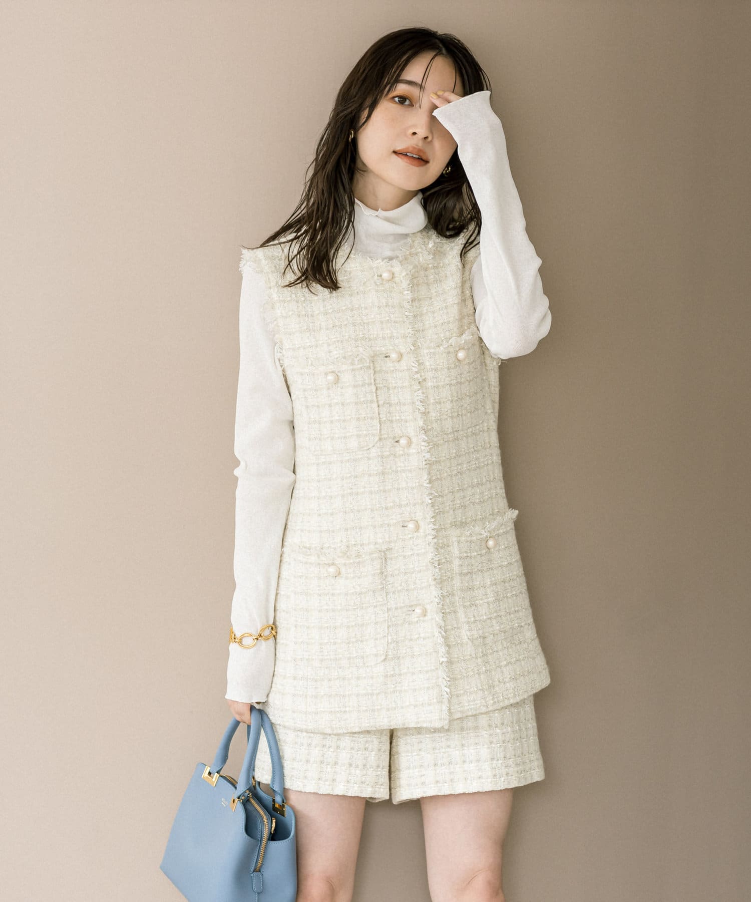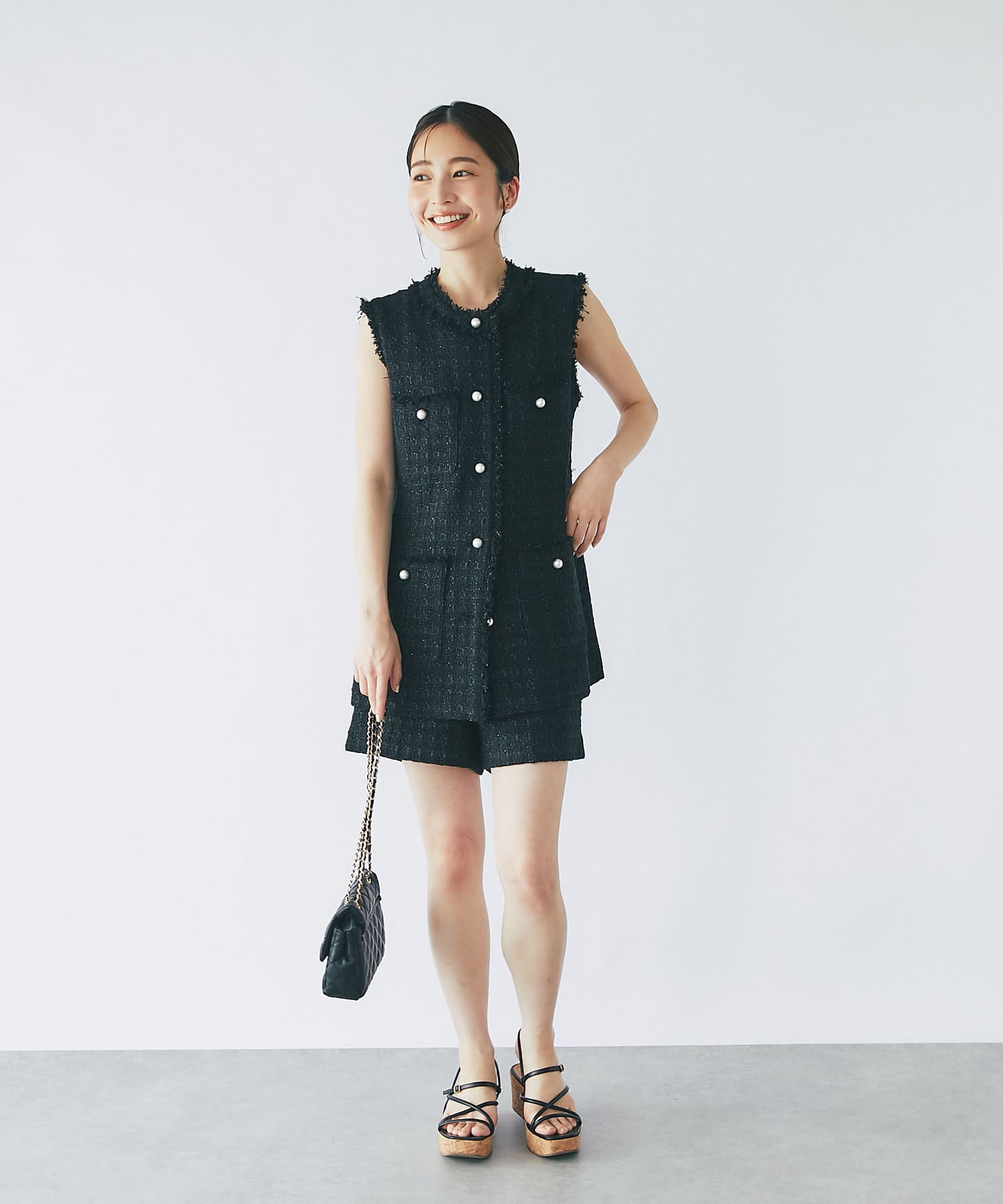 ・ファンシーツイードスリーブレスジャケット(LBZ1032207A0002)