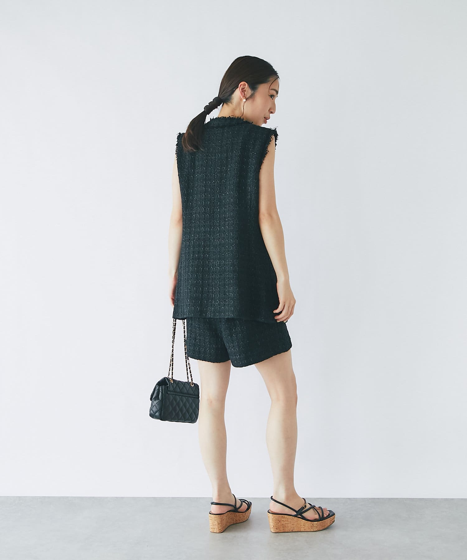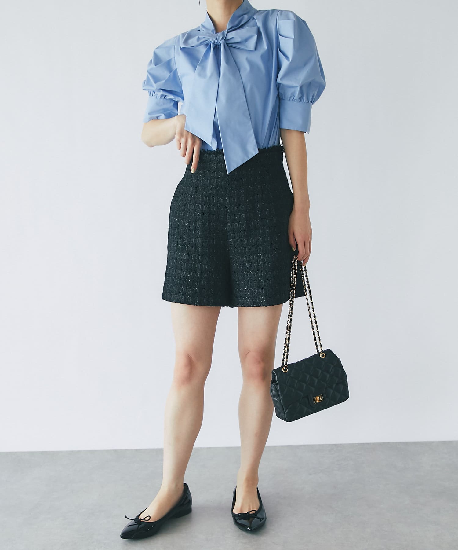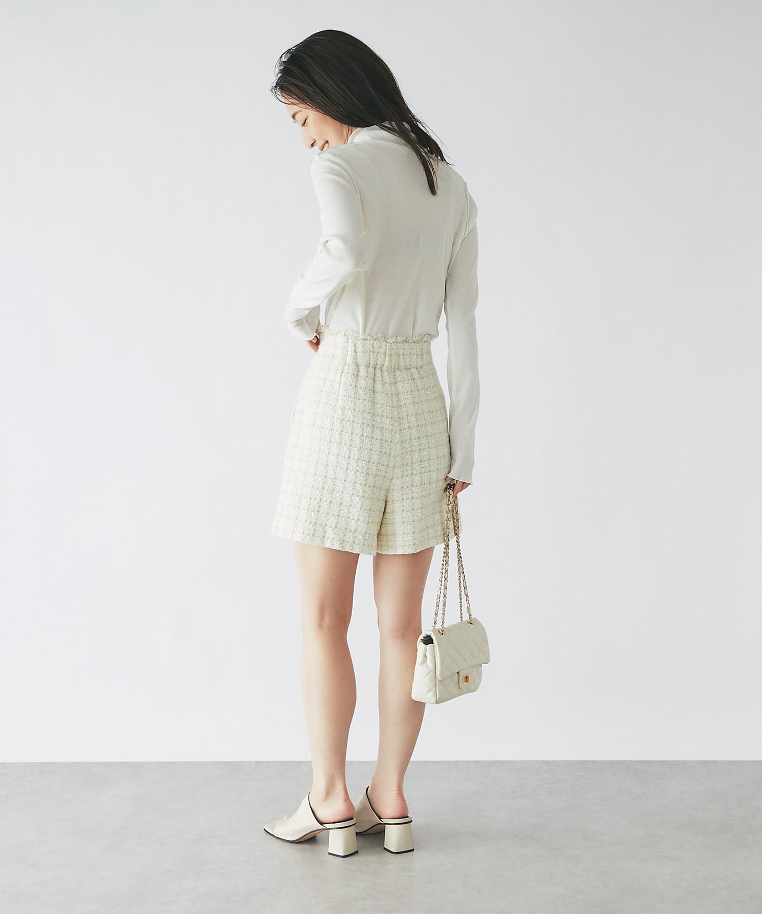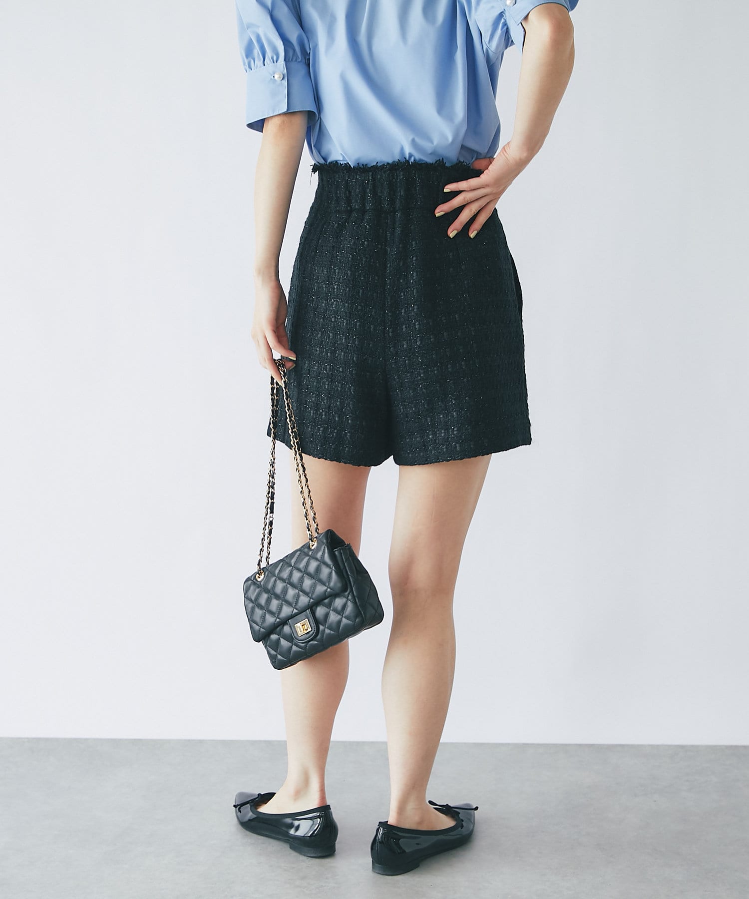 【上品見え・セットアップ着用可能】ファンシーツイードショートパンツ