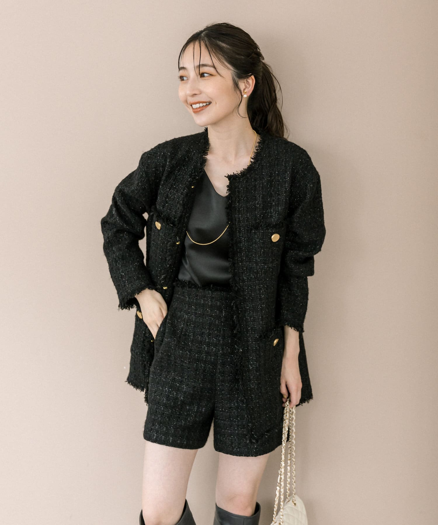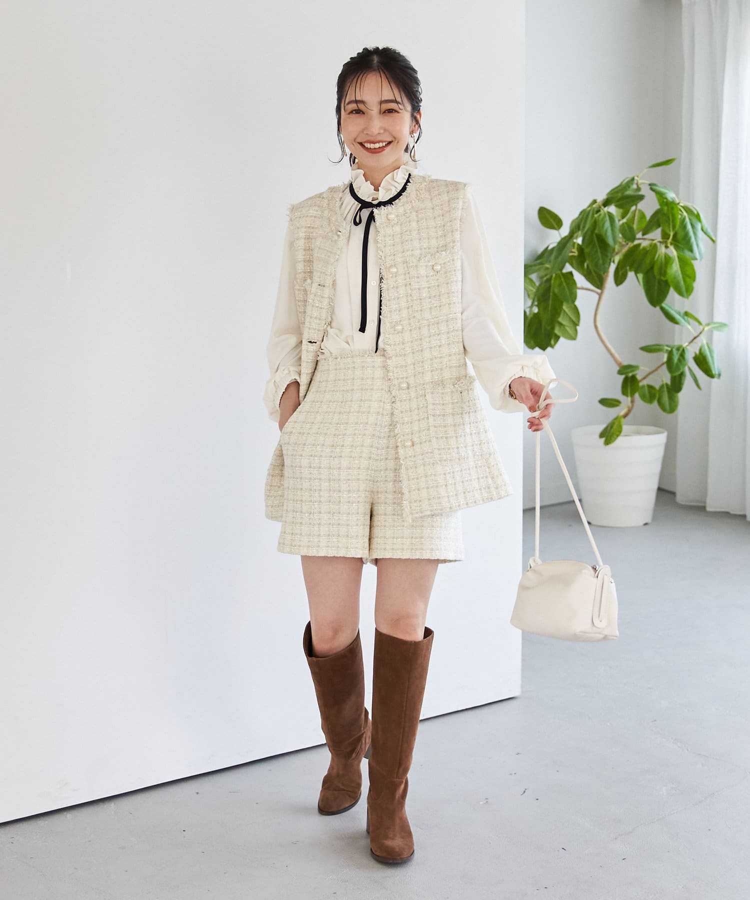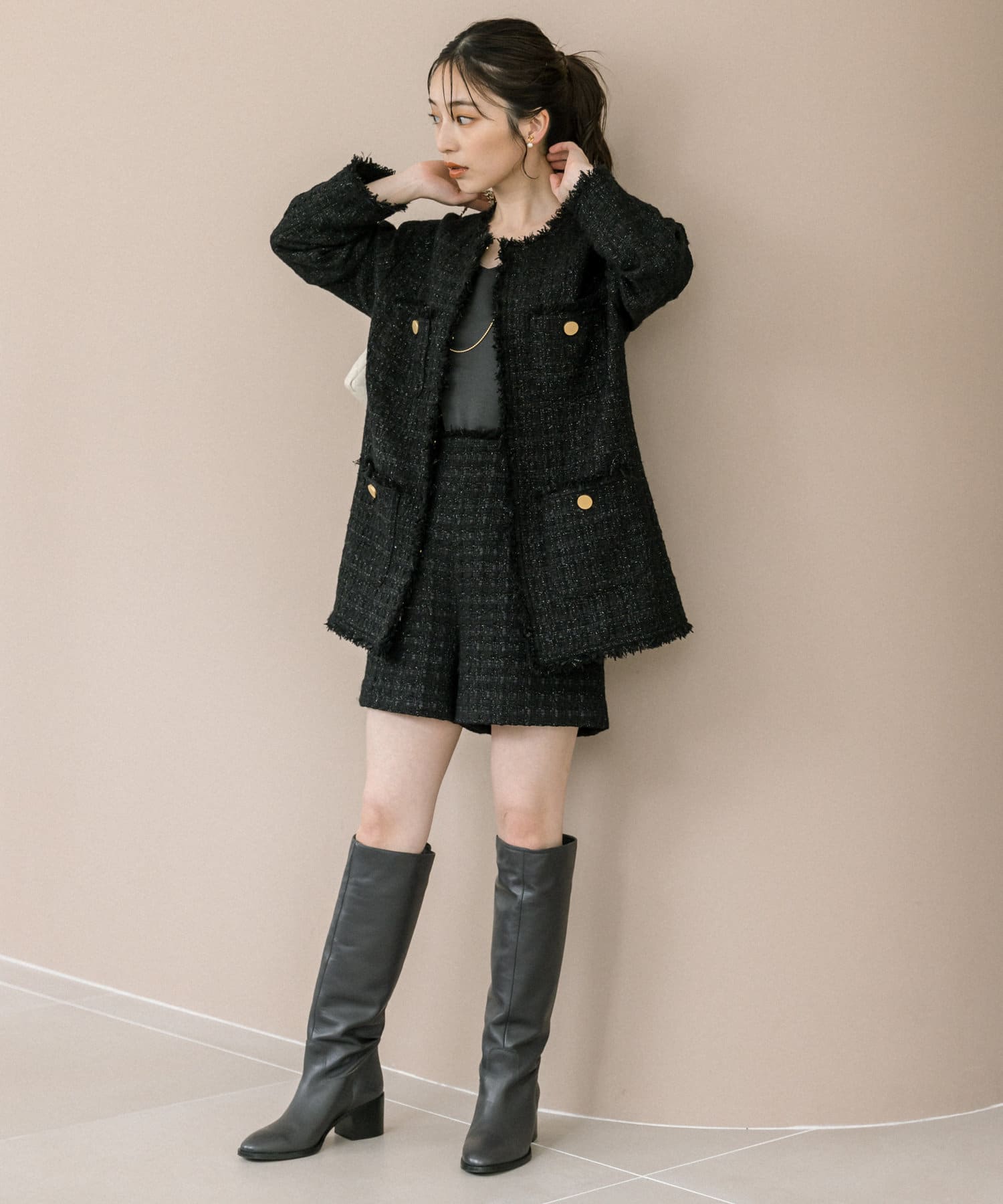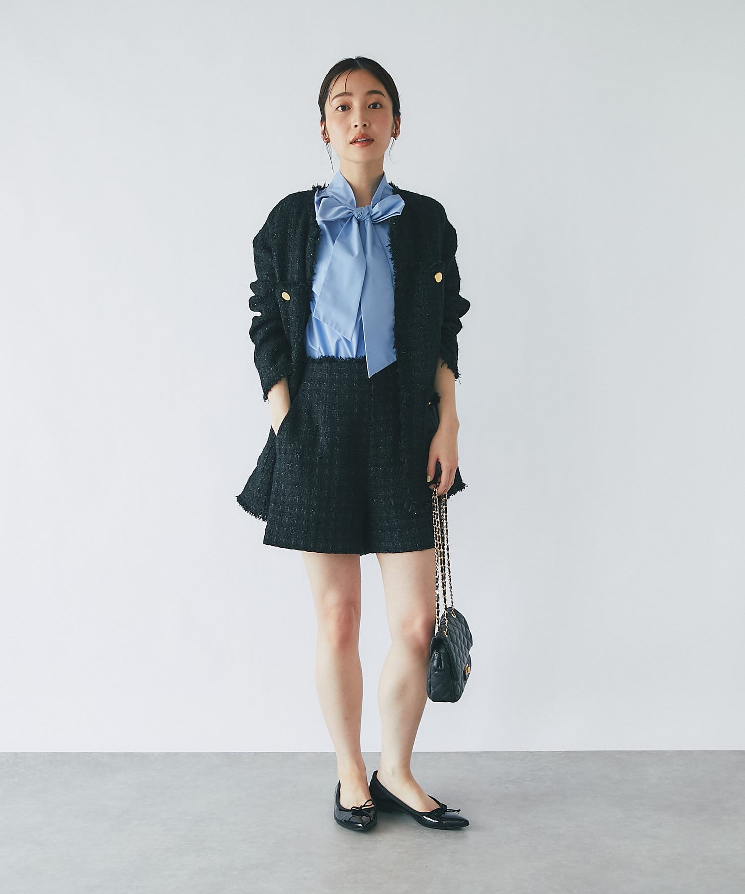 【上品見え・セットアップ着用可能】ファンシーツイードショートパンツ