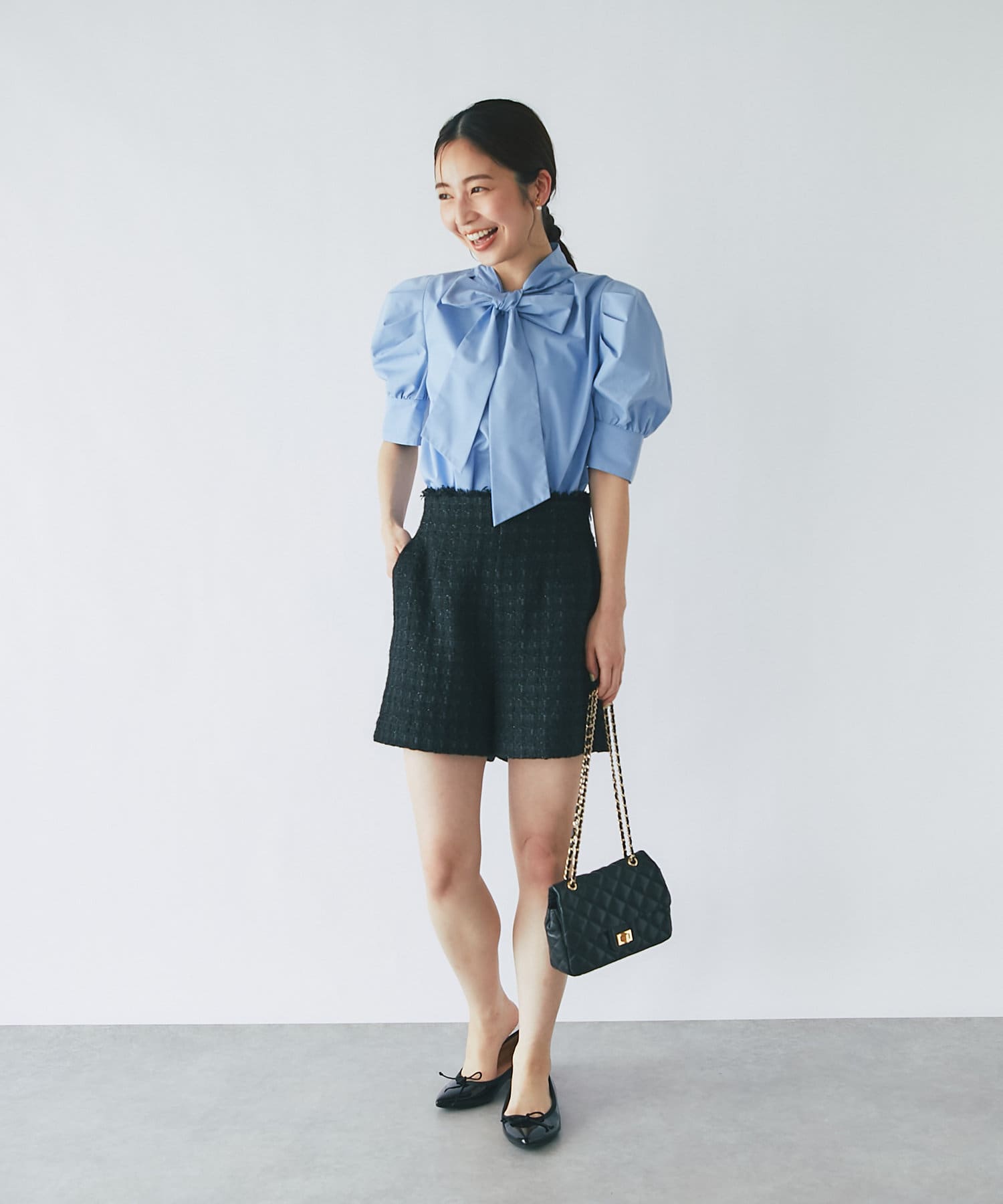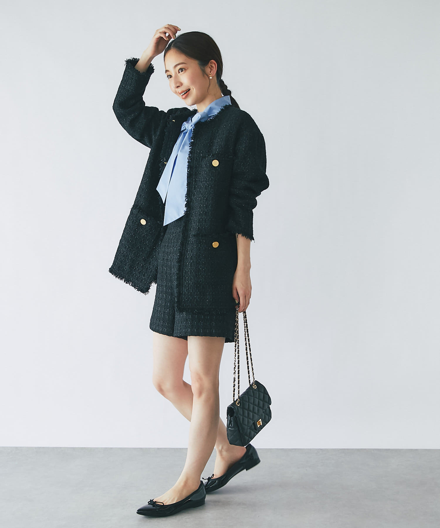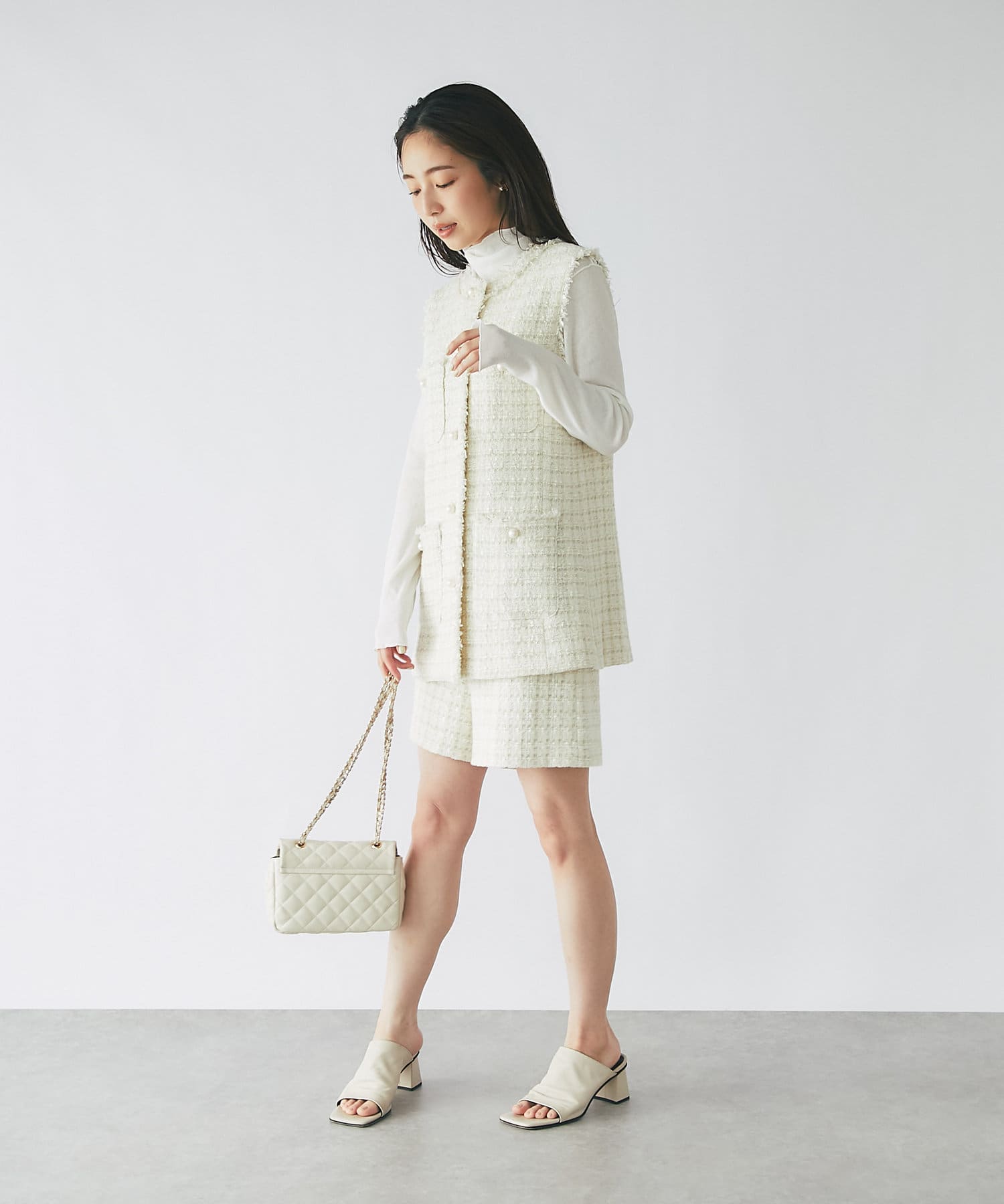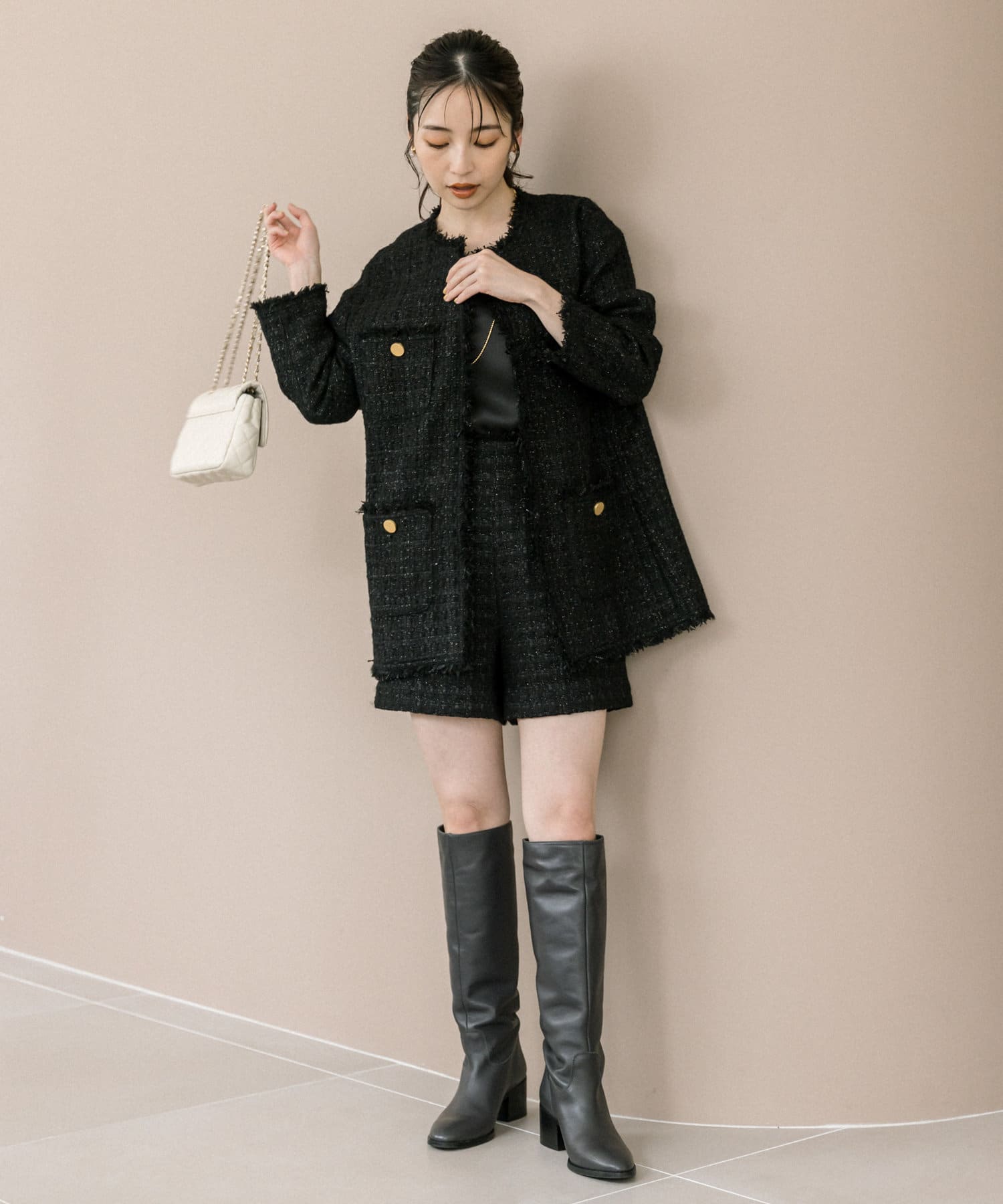 【上品見え・セットアップ着用可能】ファンシーツイードショートパンツ
