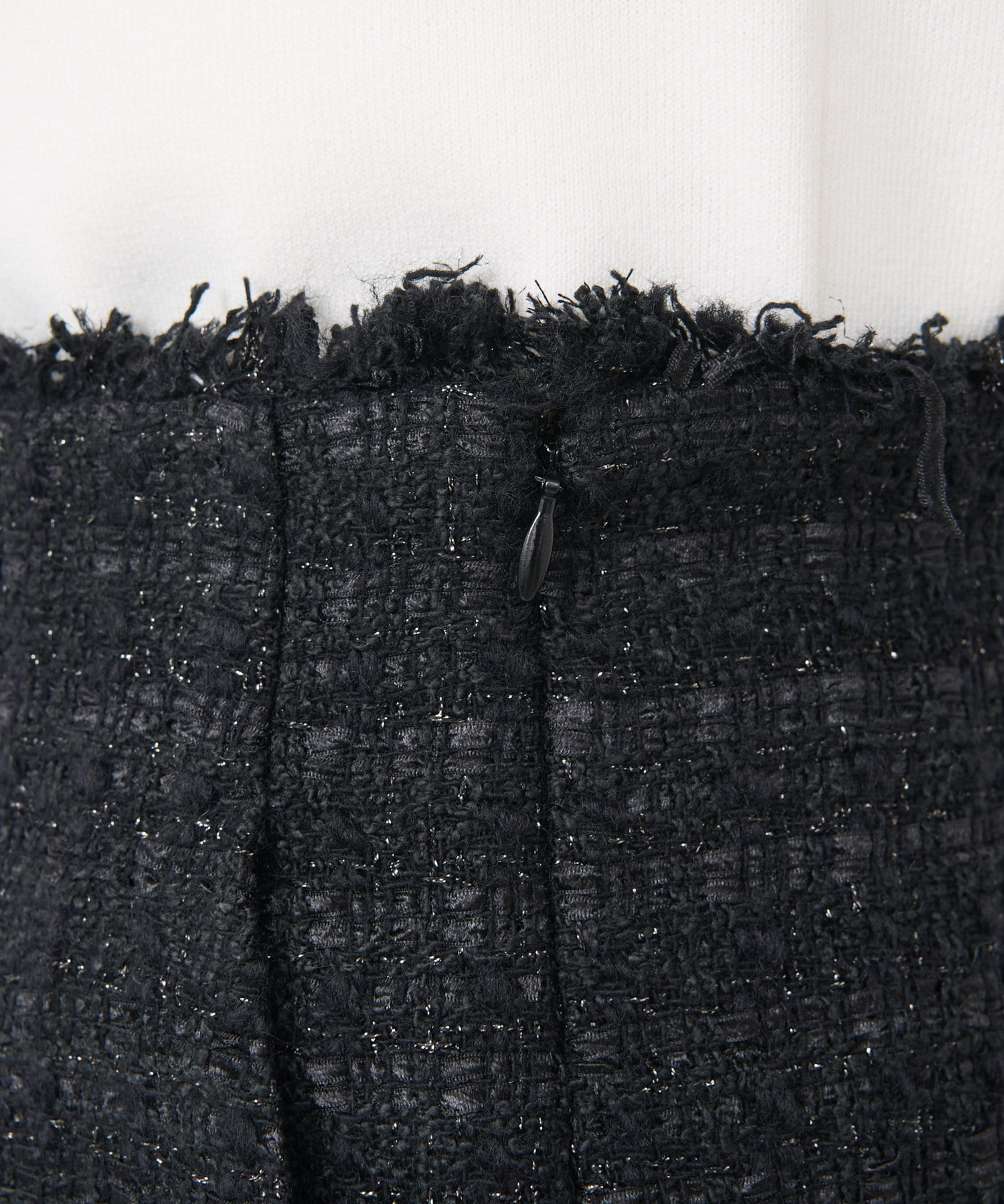 ウエスト部分はほぐしのフリンジで華やかに仕上げた一枚。