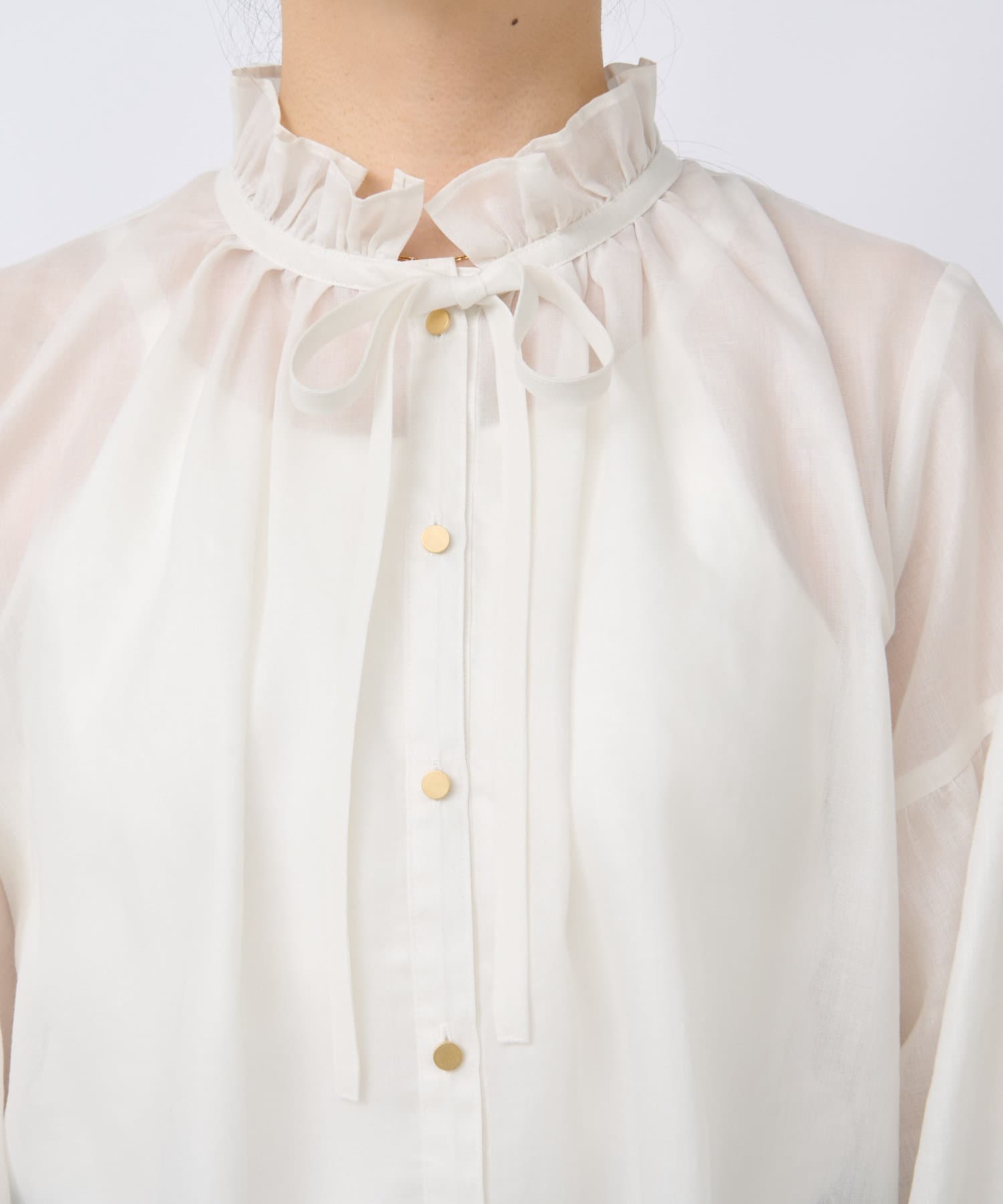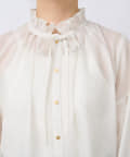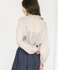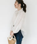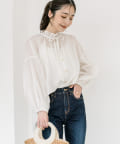 繊細なフリルと細いリボンで顔周りを華やかにするデザインブラウス。