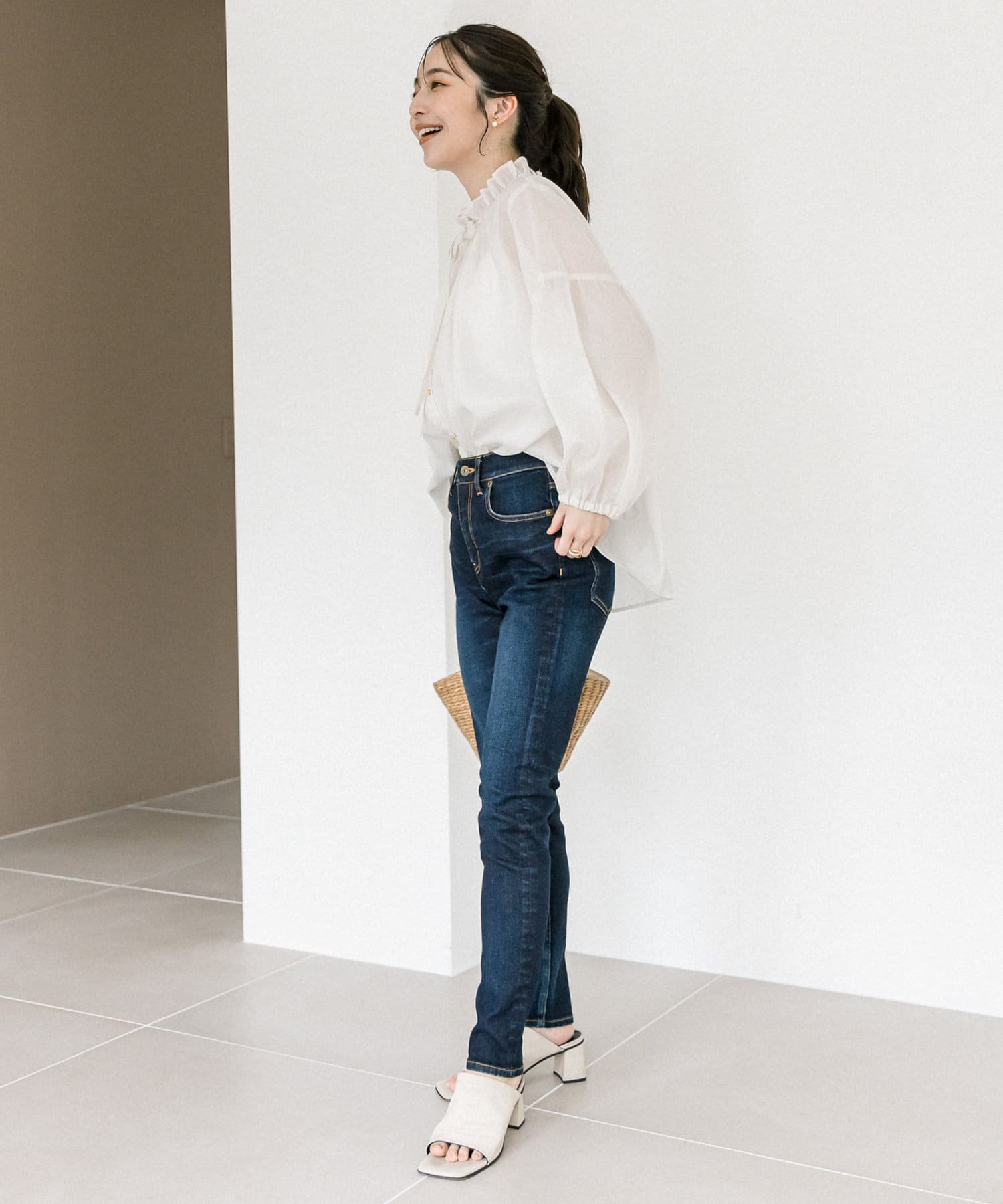 【YENN (エン)】ハイライズタックワイドデニム