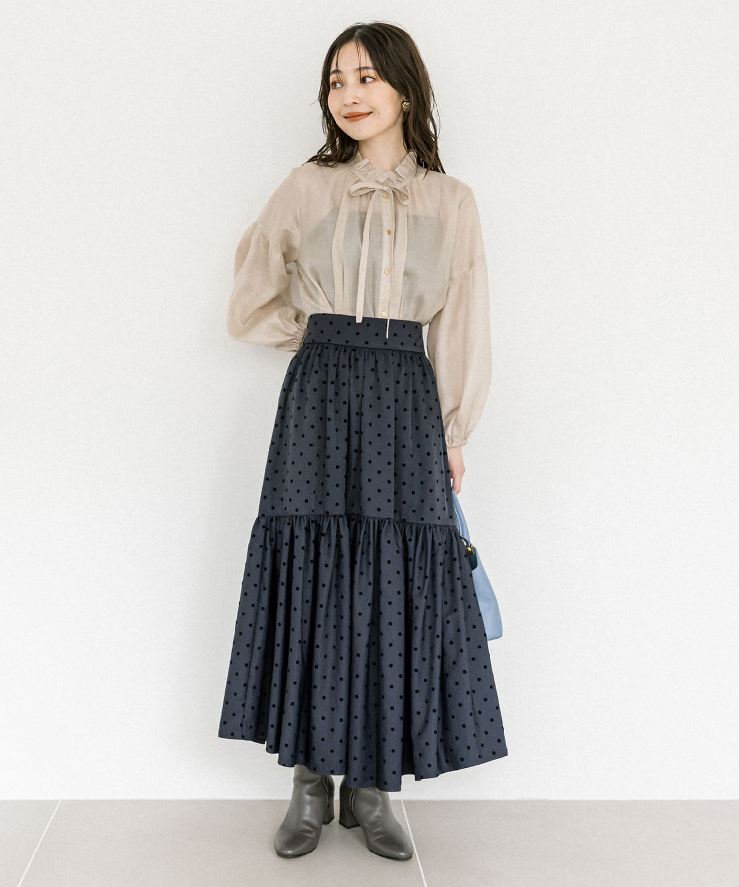 フロッキードットティアードマキシスカート