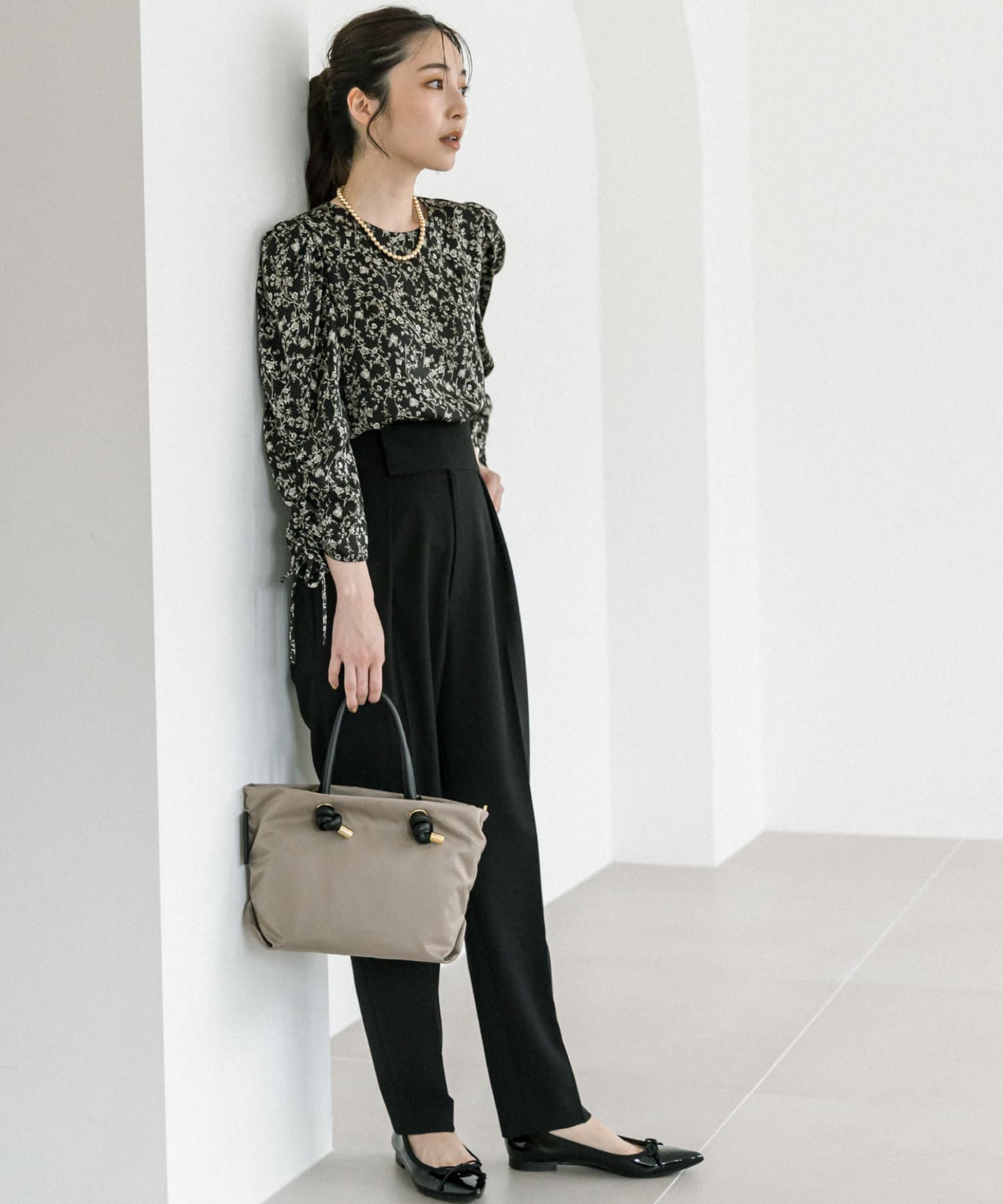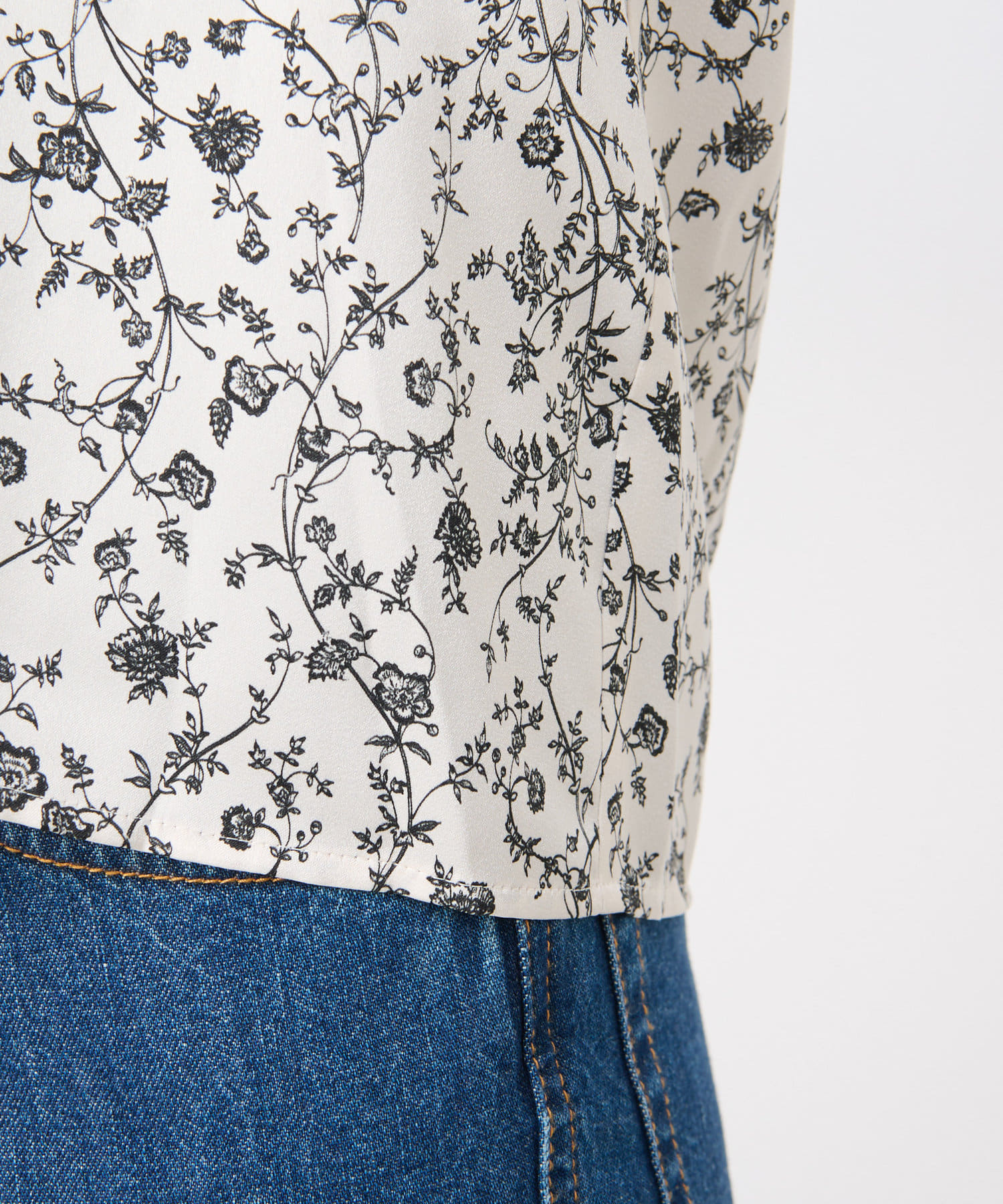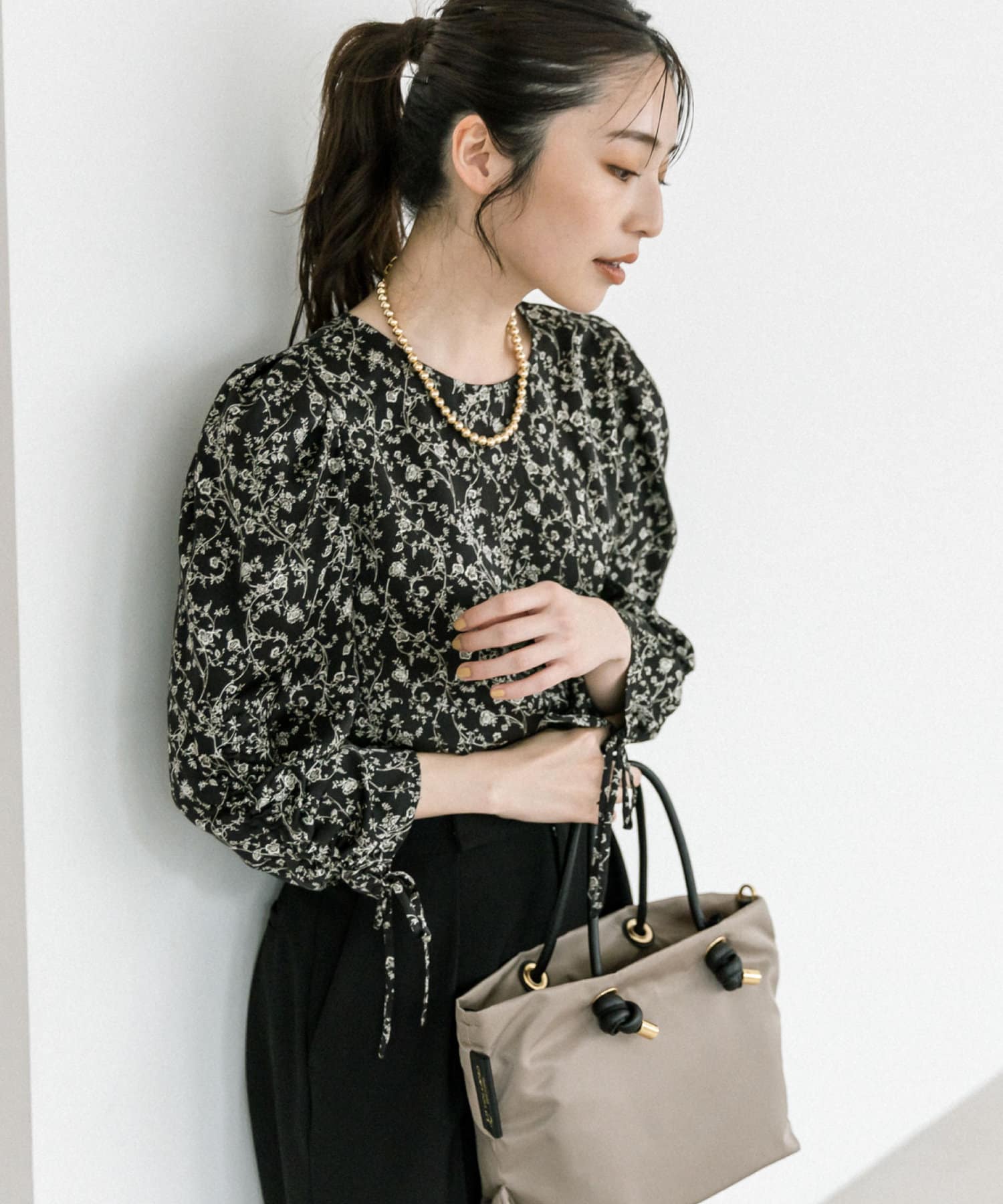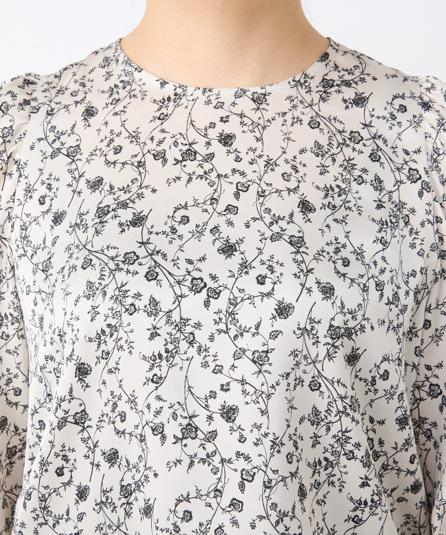 単色の小花柄で甘すぎず上品に着られるブラウス