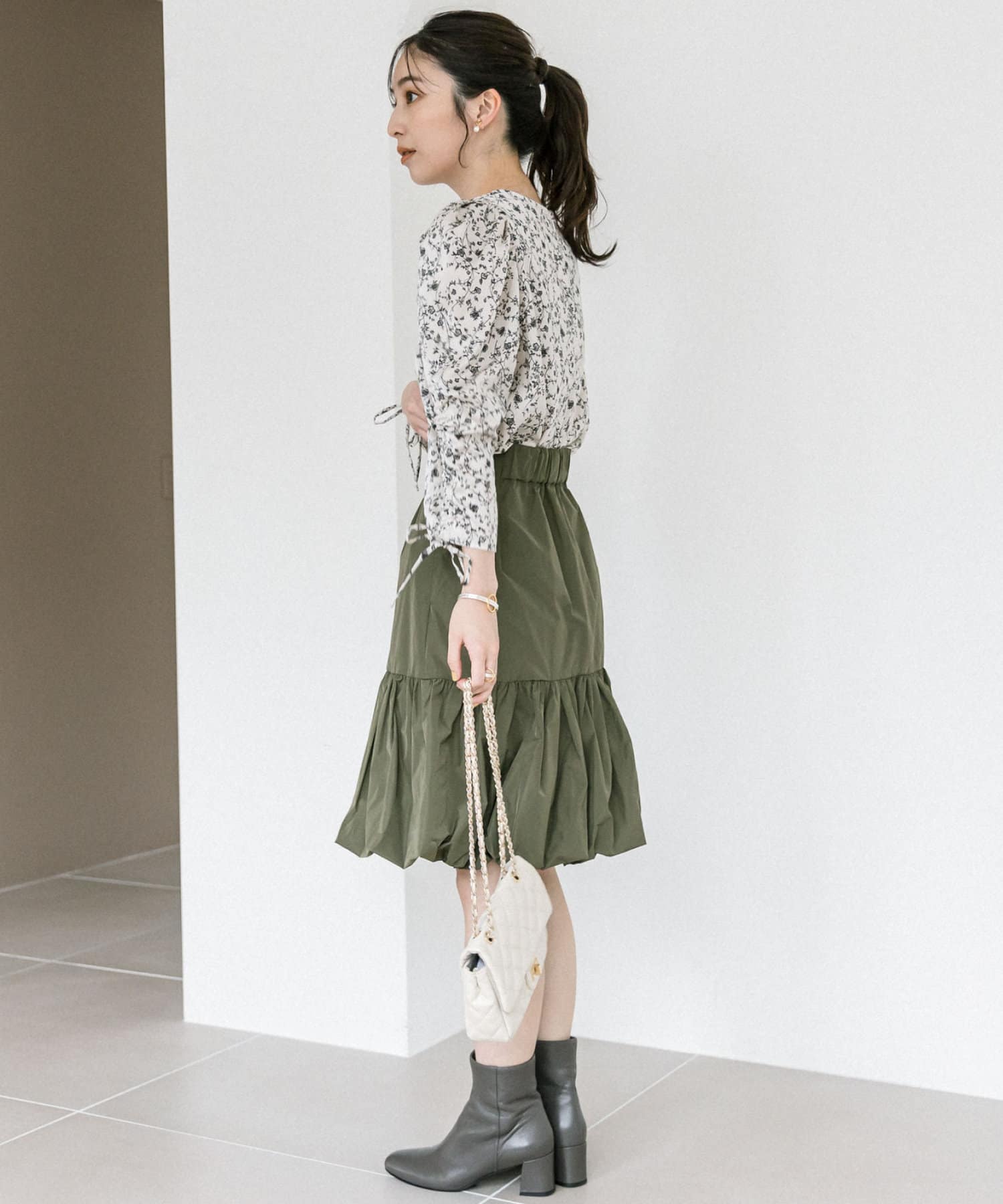 スカートはもちろん、パンツと合わせてもフェミニンに決まります。