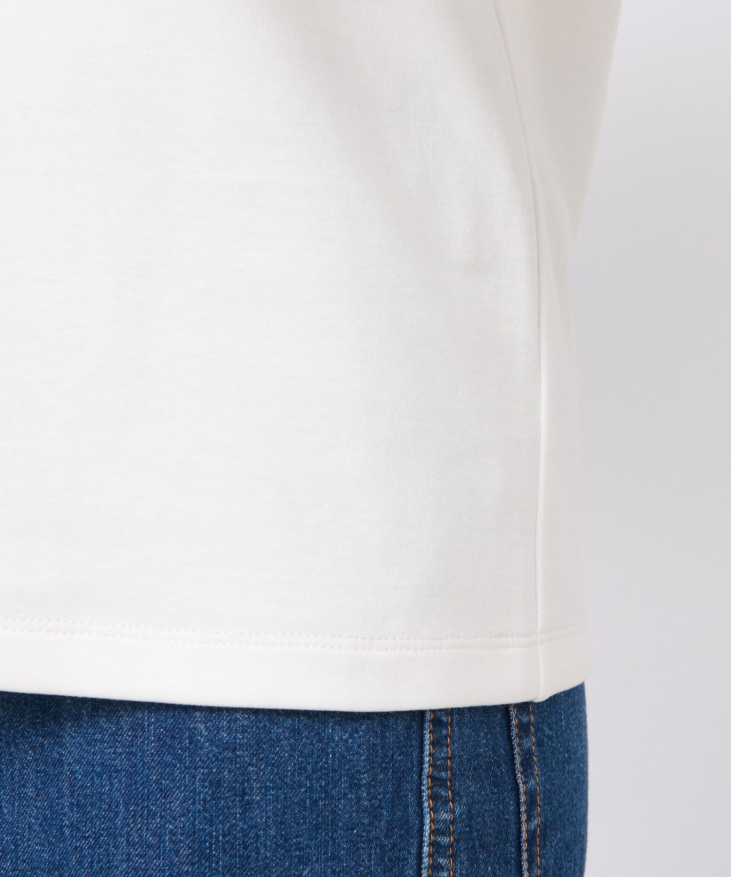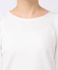 横広がりのクルーネックでデコルテをきれいに見せてくれます。