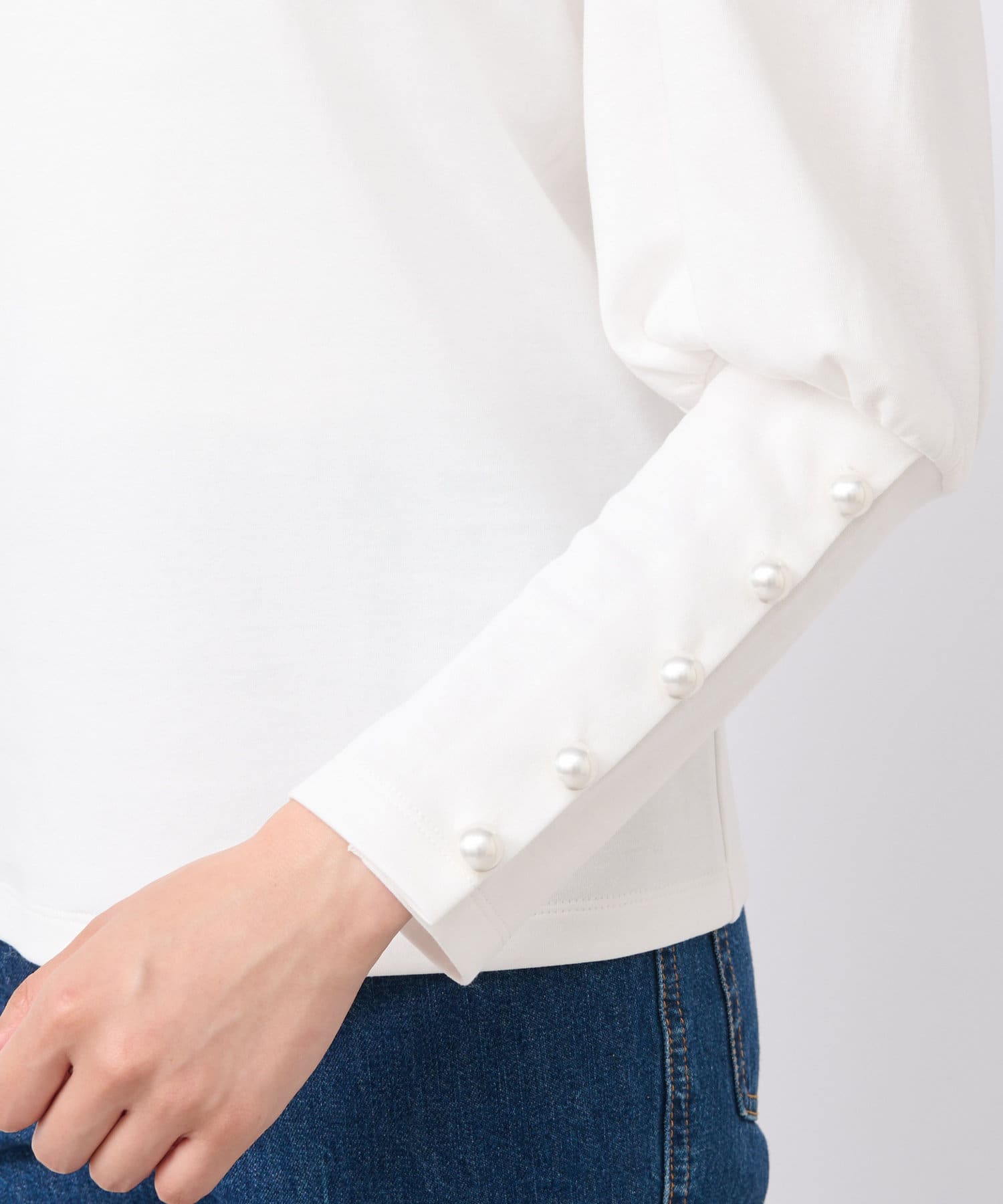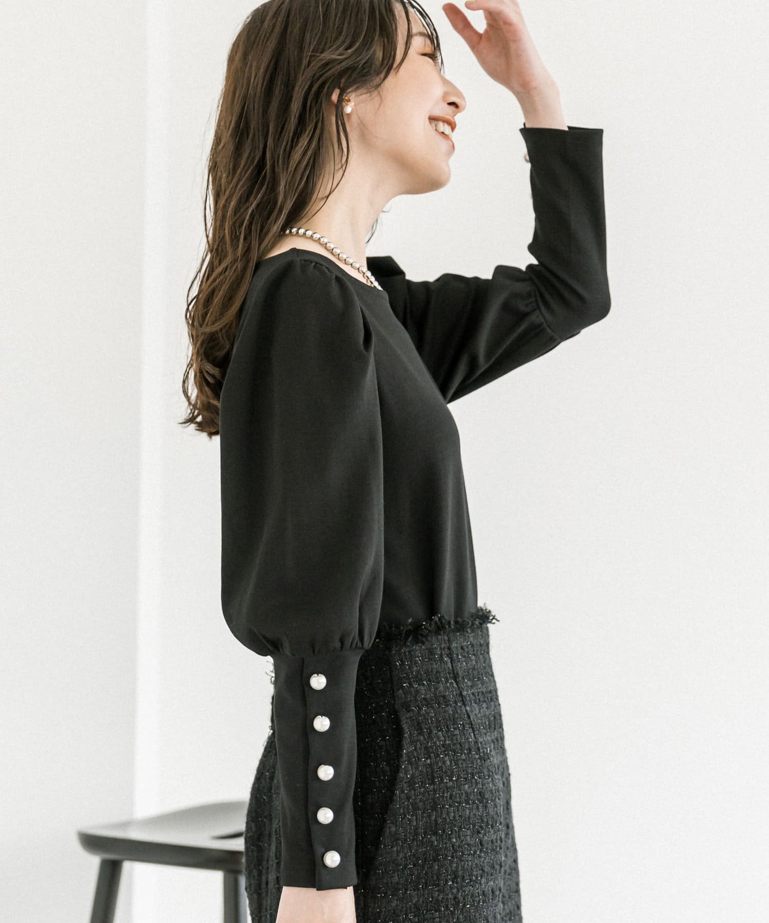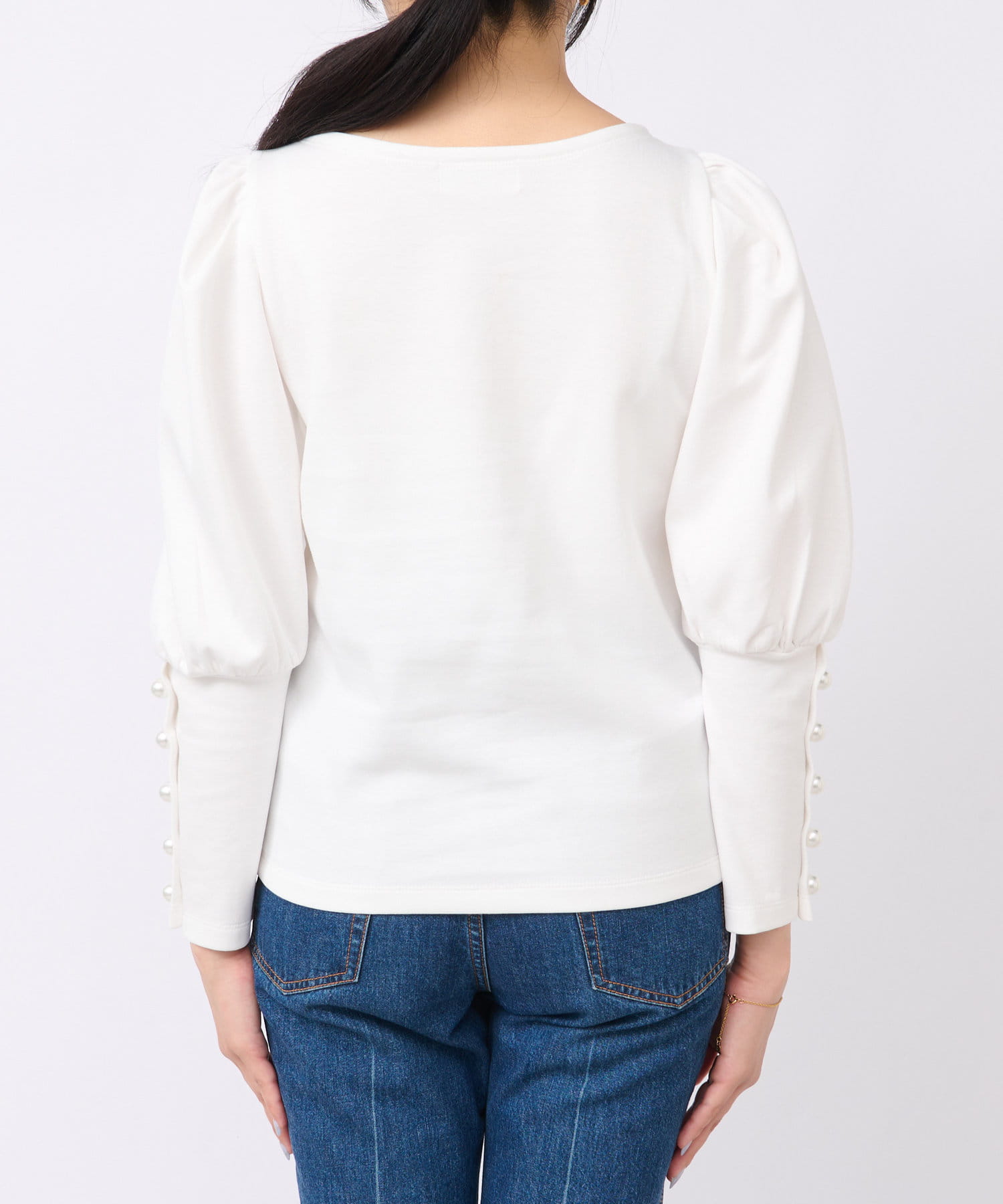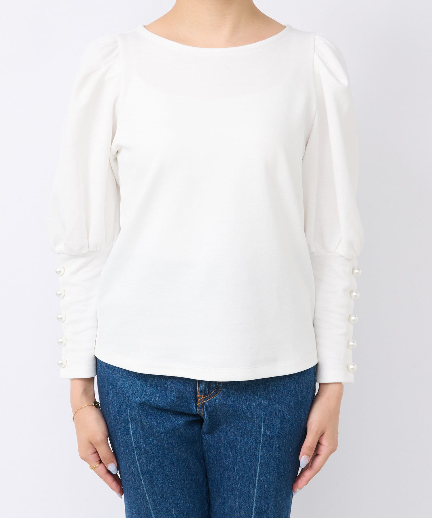 ボリュームスリーブのシルエットが可愛いデザインカットソー。