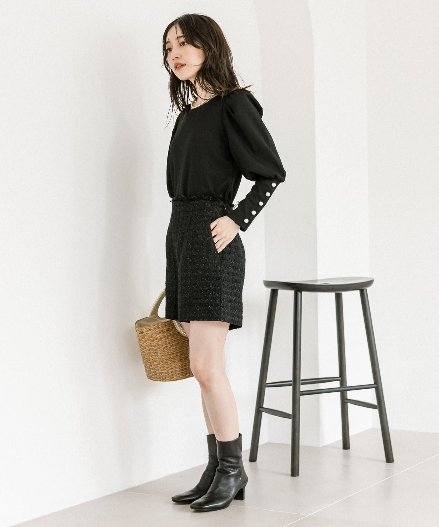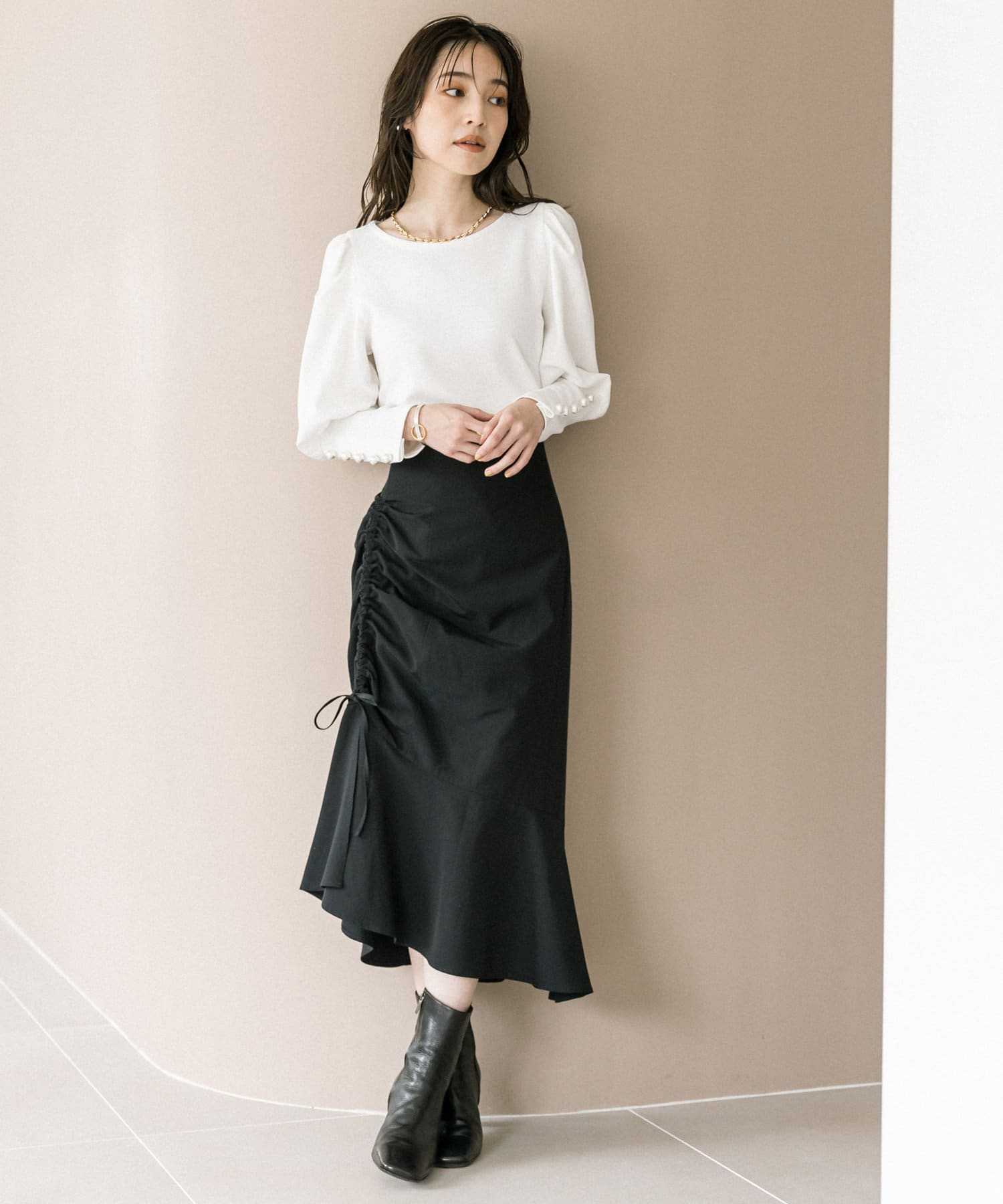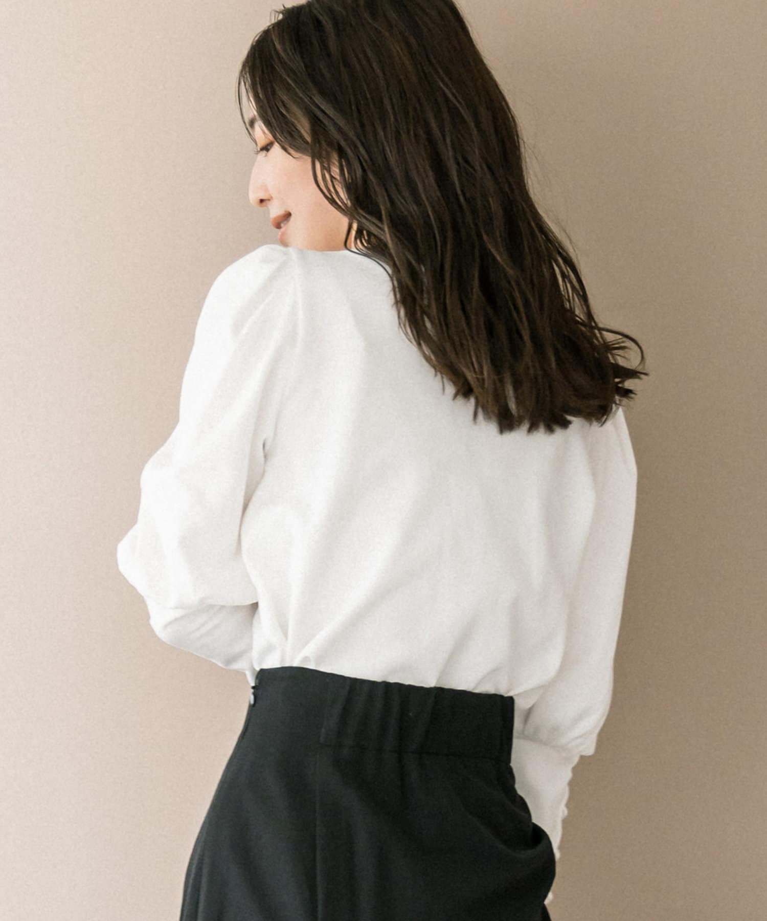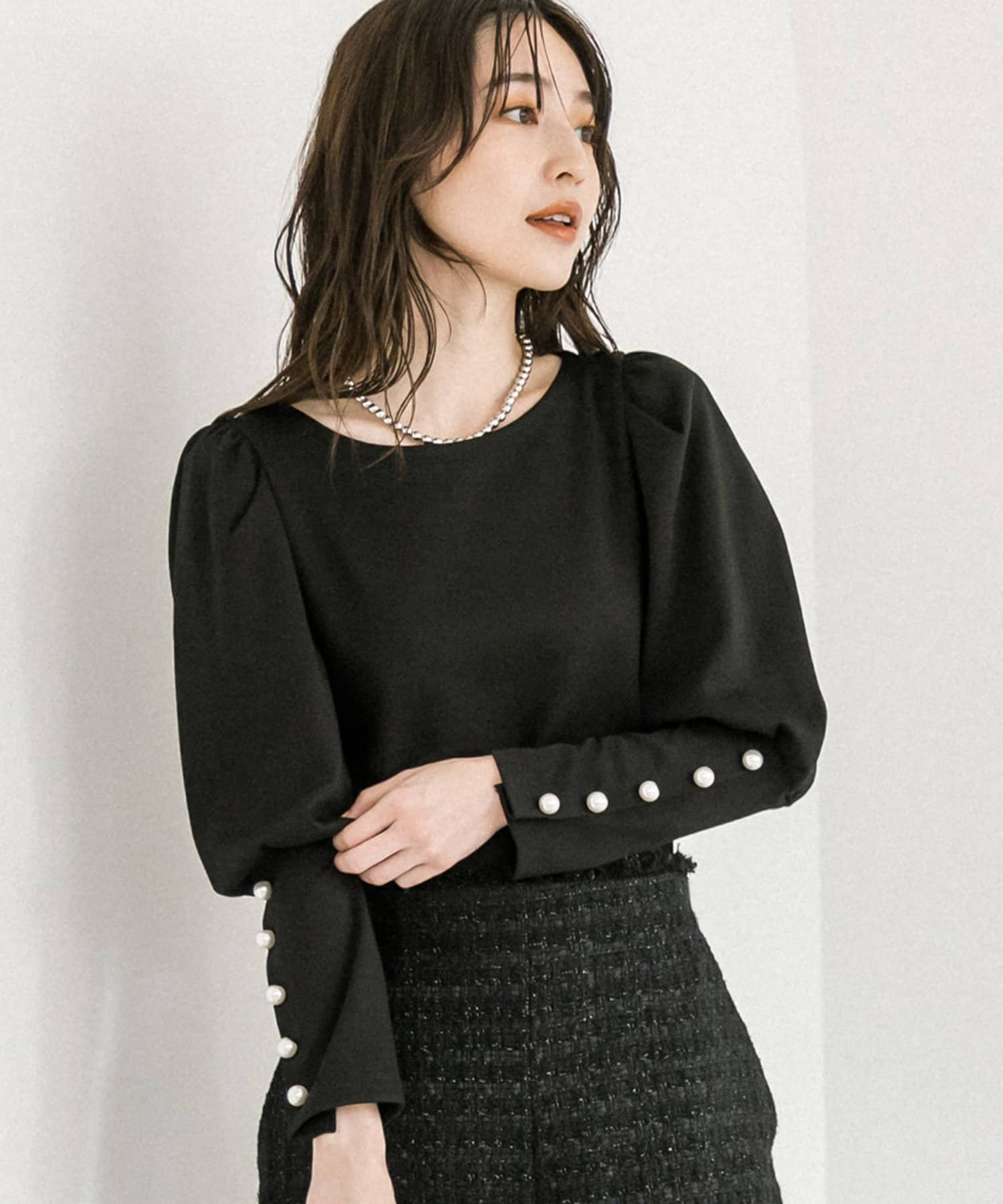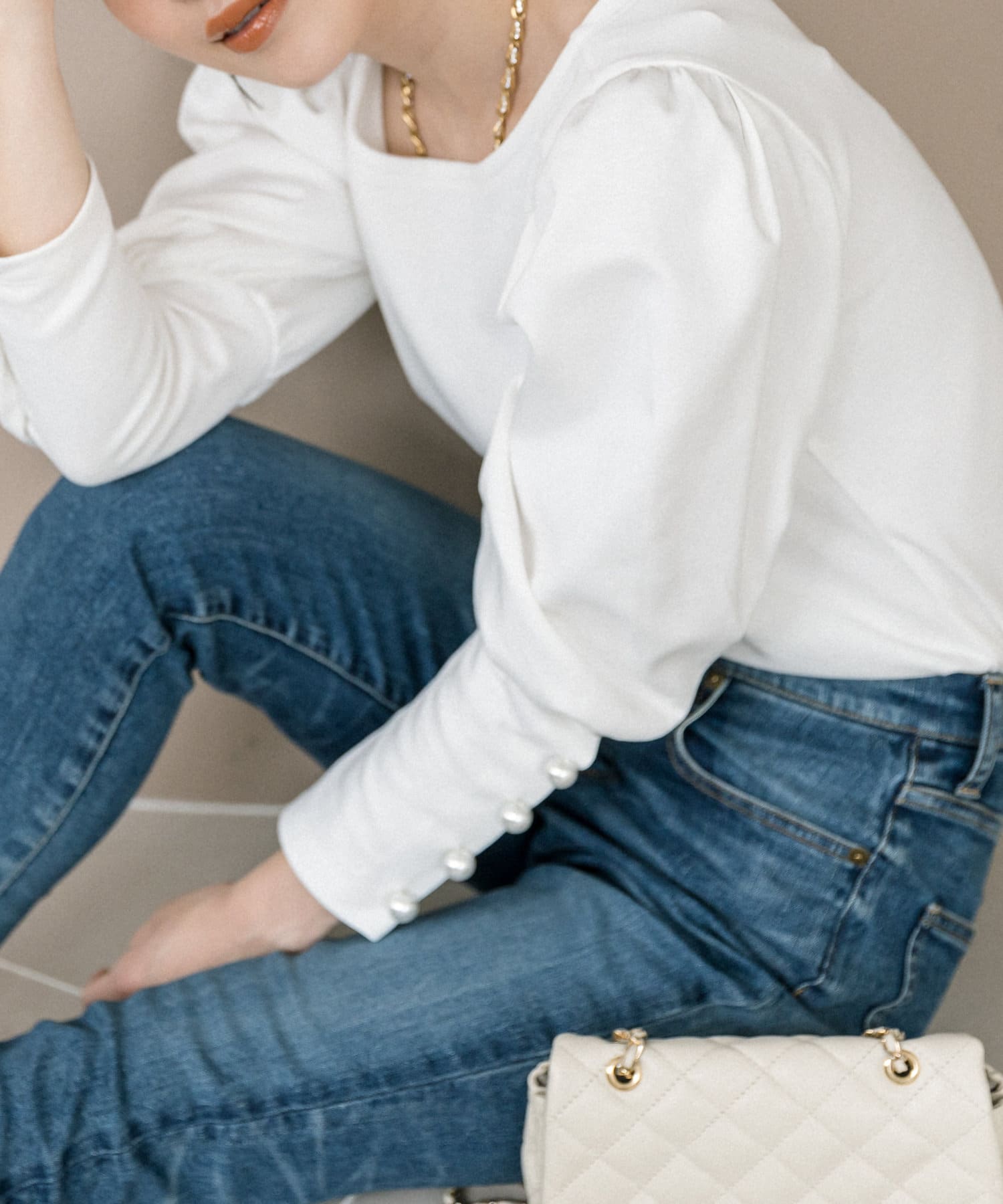 ボリュームスリーブのシルエットが可愛いデザインカットソー。