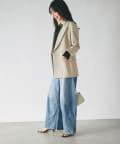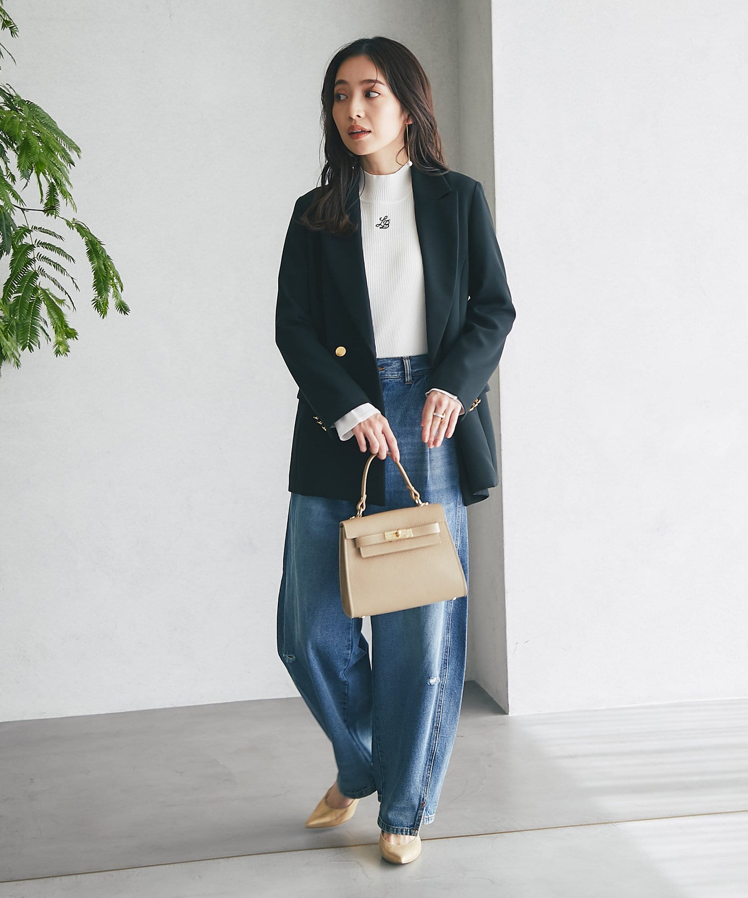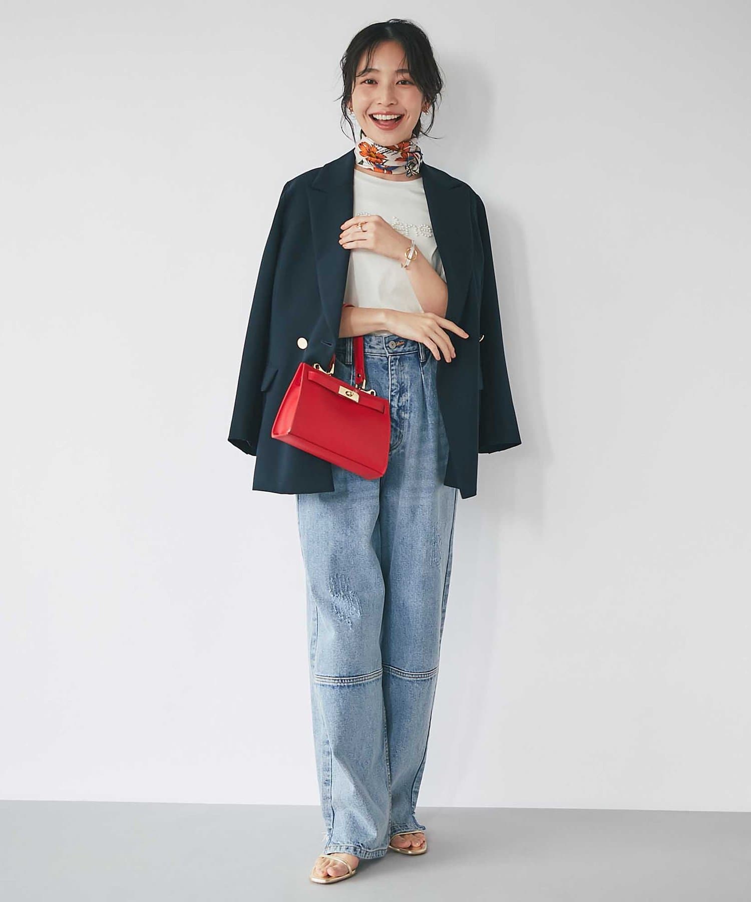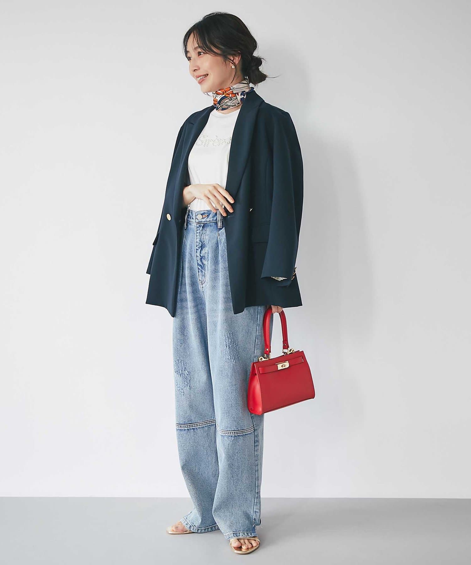デニムやTシャツなどのカジュアルなアイテムと合わせると抜け感が出て大人のカジュアルスタイルに。