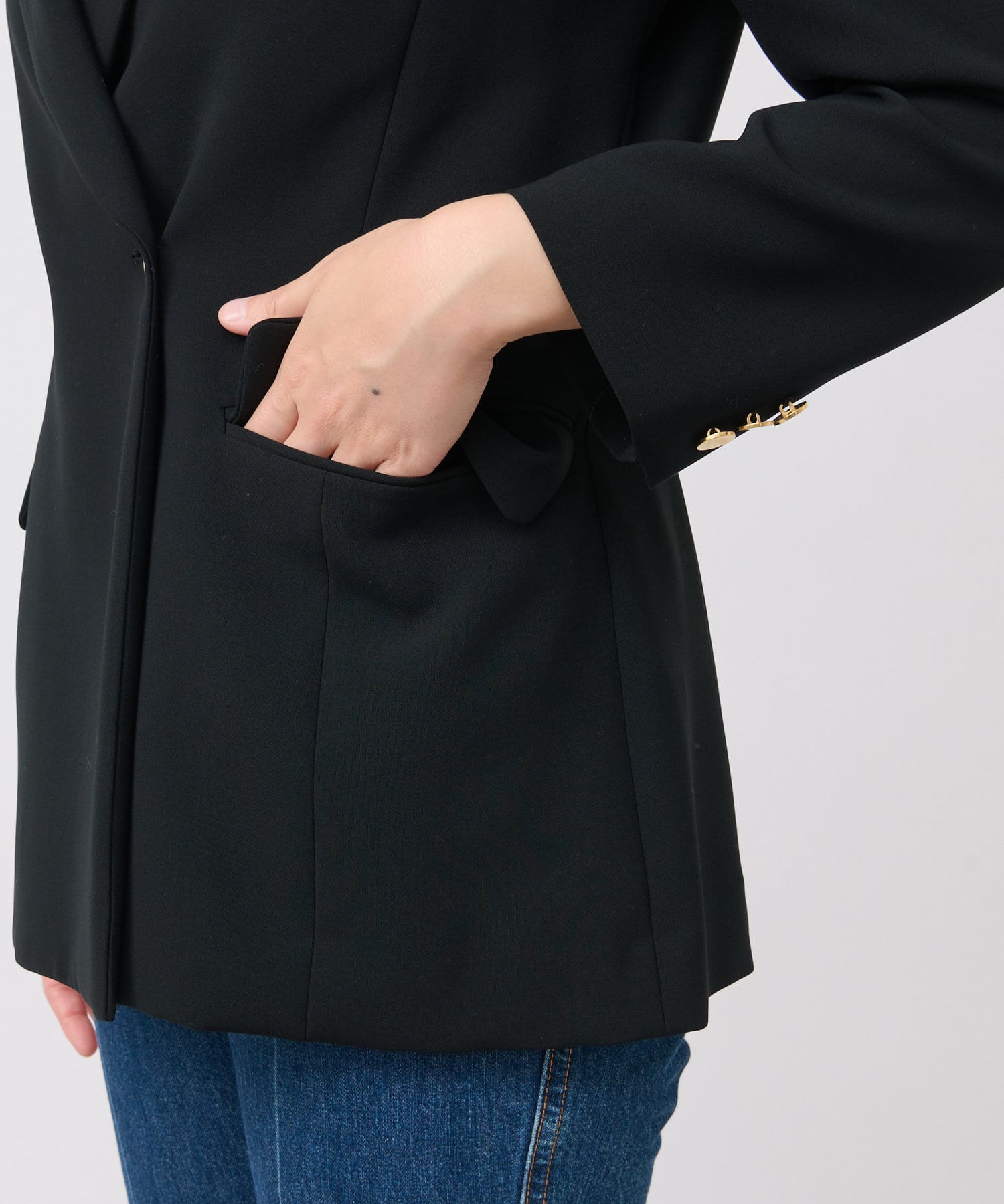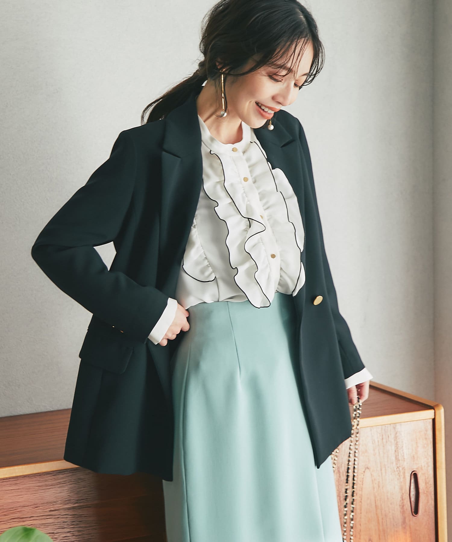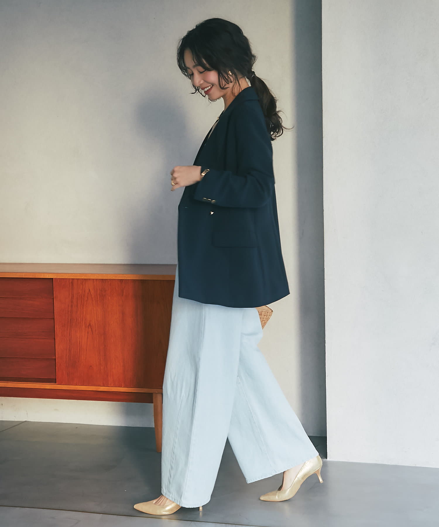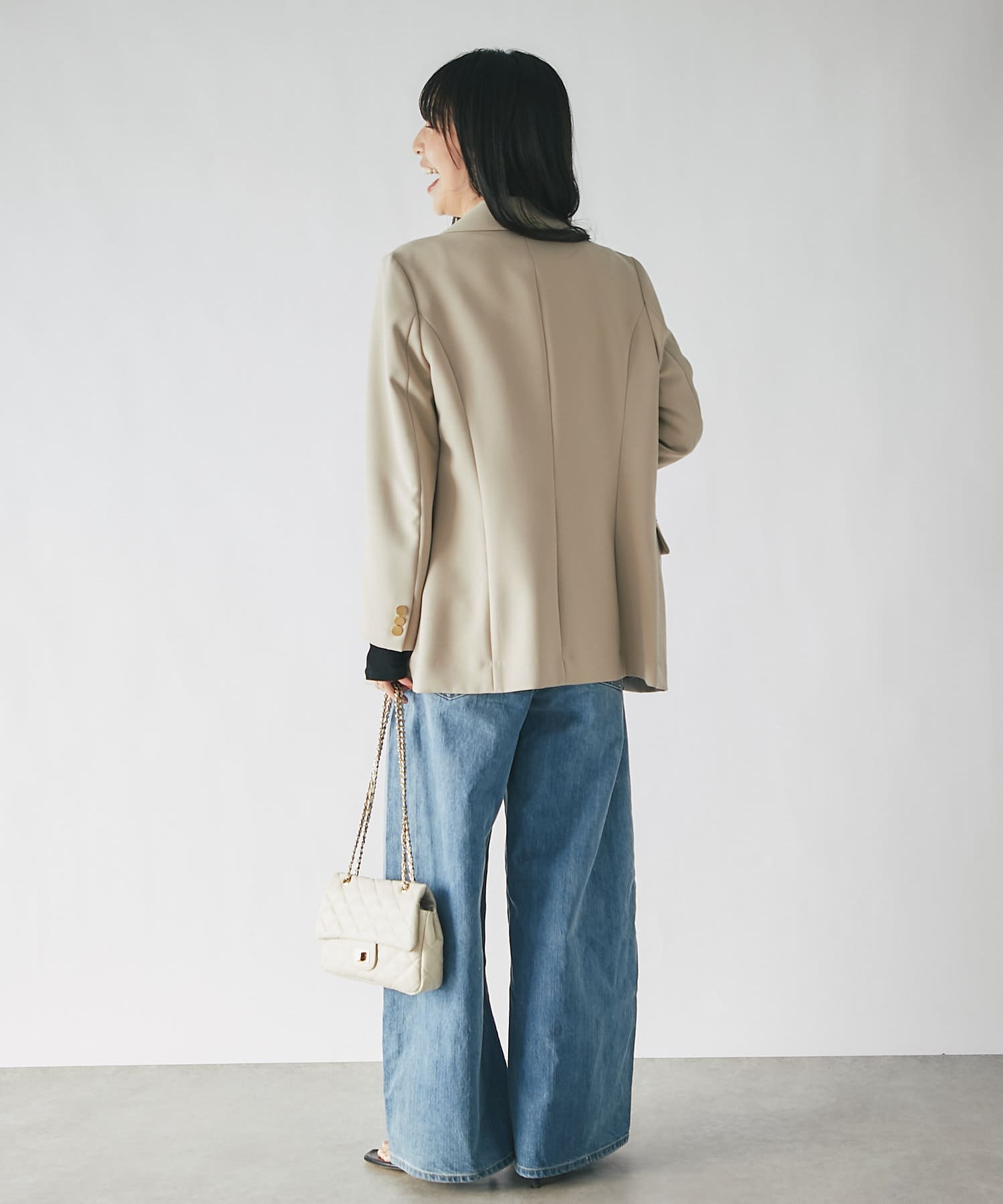 ☑ゴールドの釦が目線を上に誘導するのでスタイルアップにも効果アリ