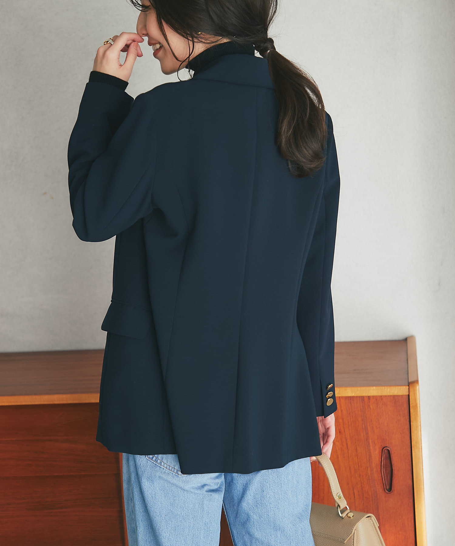 【ベストセラー・美シルエット】メタル釦ダブルジャケット