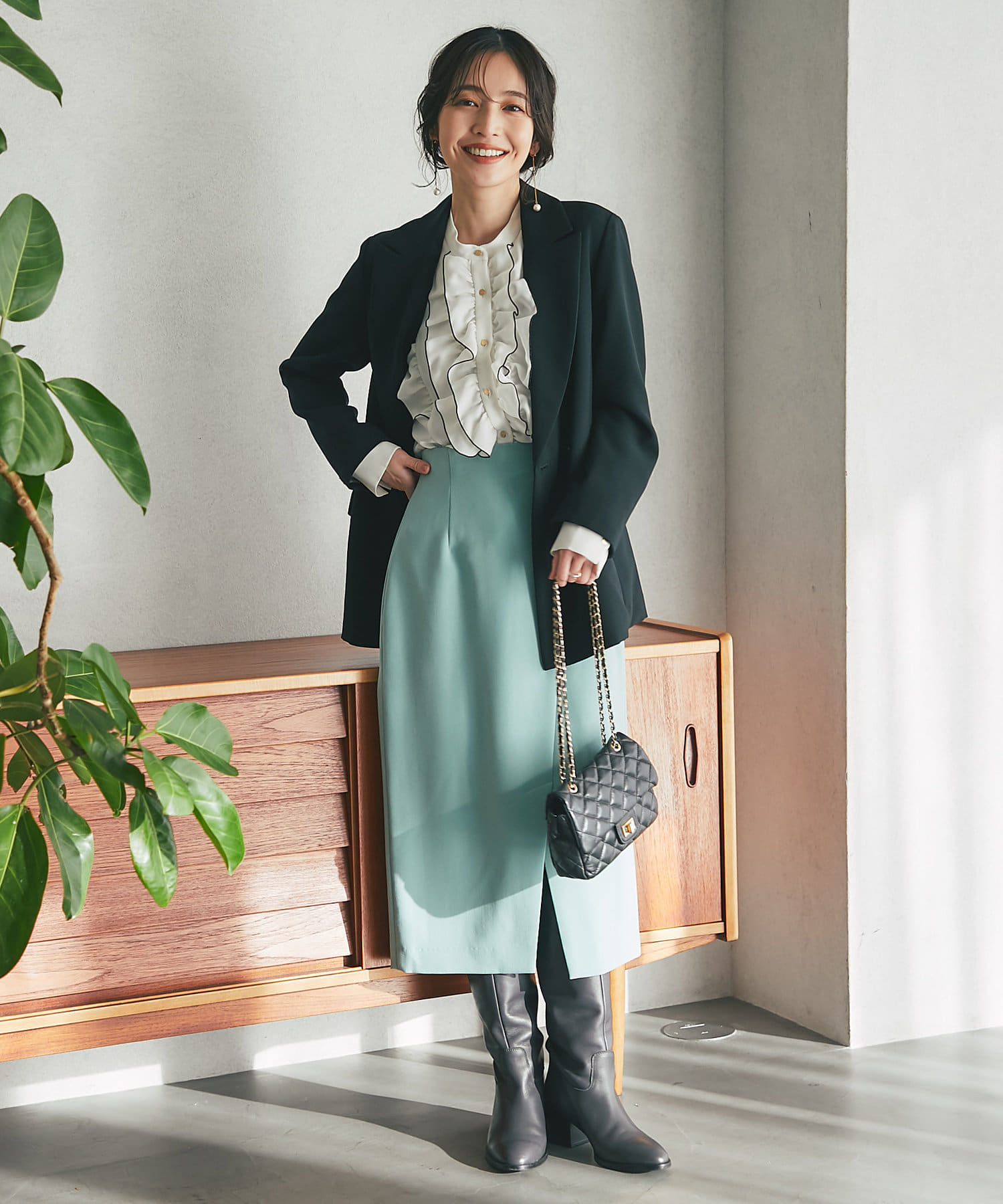 女性らしさを感じさせつつマニッシュに決まるのでおすすめのコーディネートです。