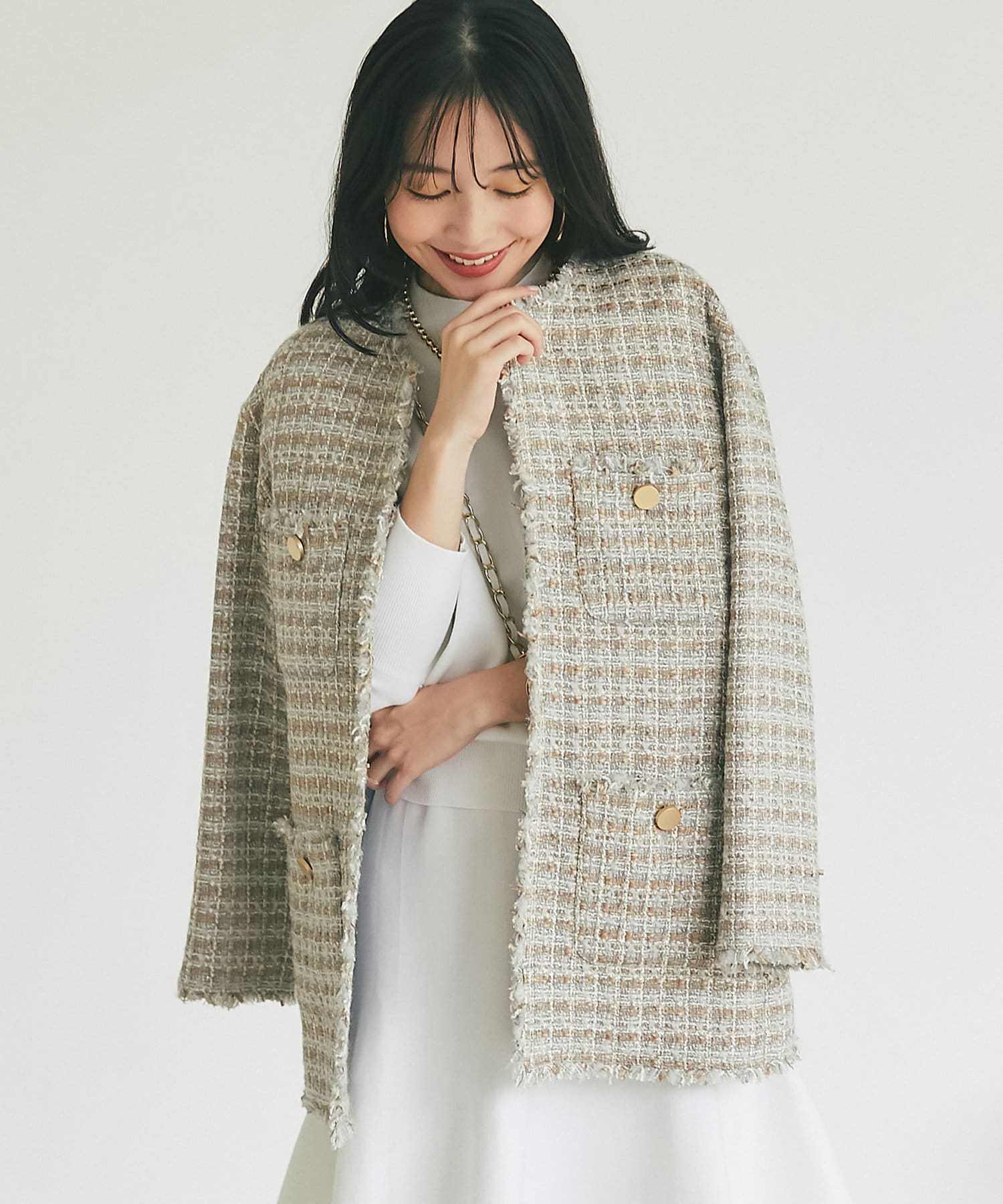 【コンサバすぎないリッチ感】ファンシーツイードジャケット