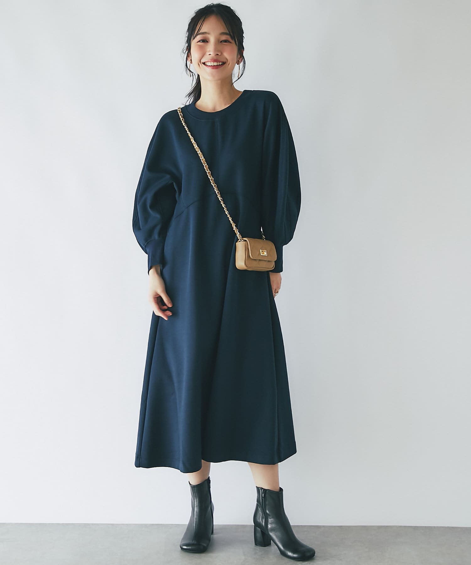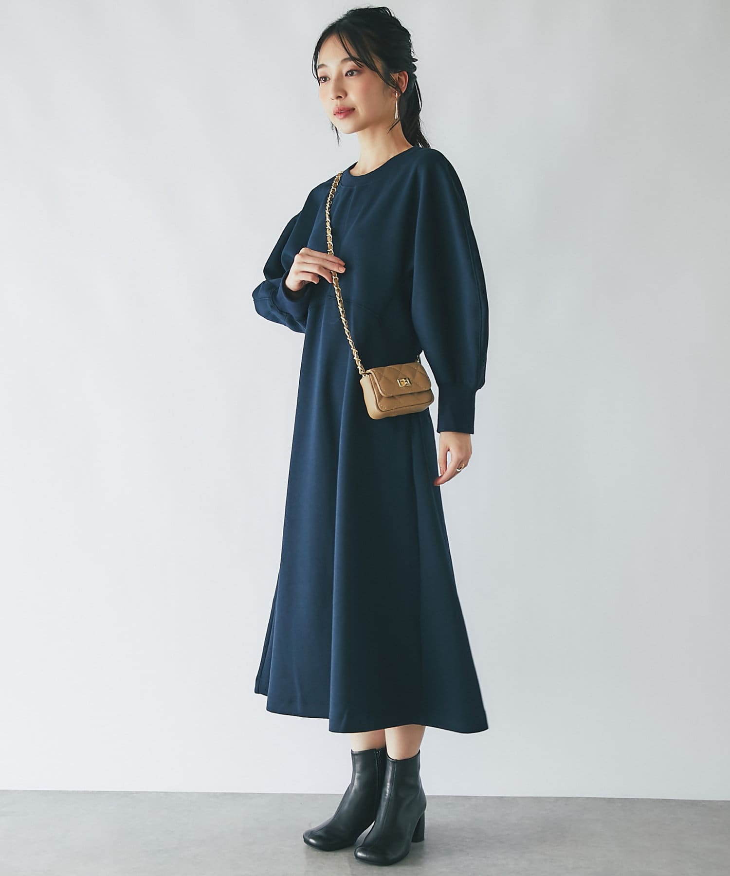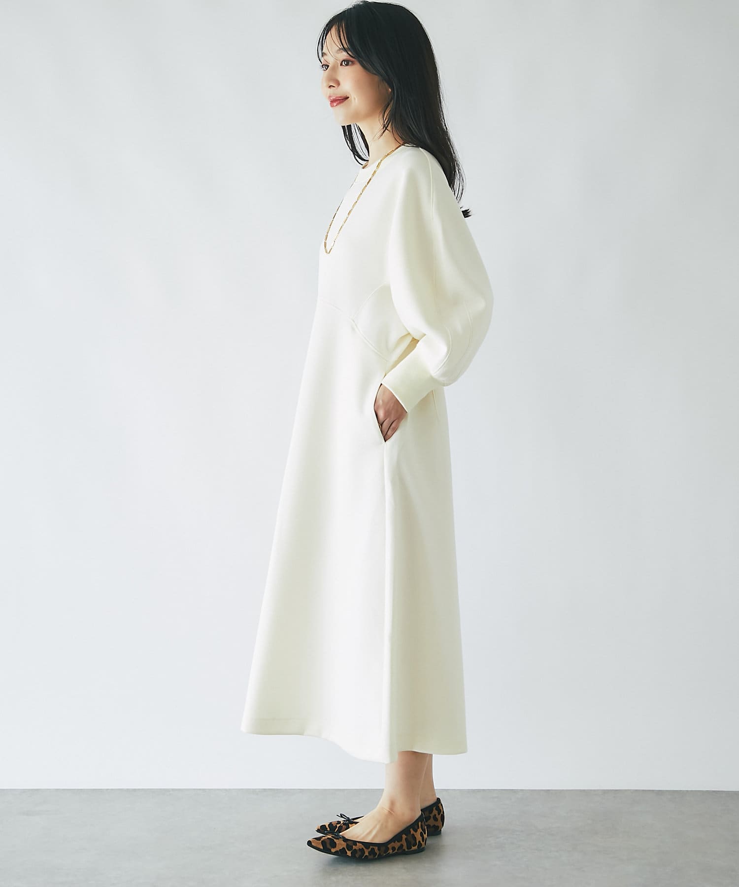 ウエスト切り替えのデザインでフェミニンな印象に。