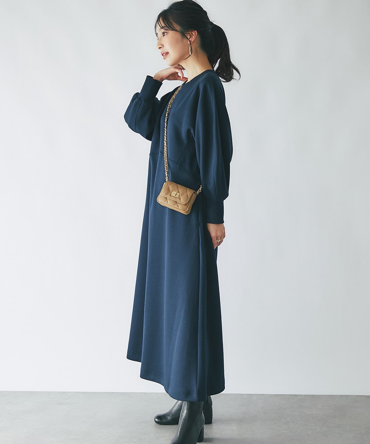 【低身長サイズあり・着丈が選べる】ドルマン切り替えワンピース