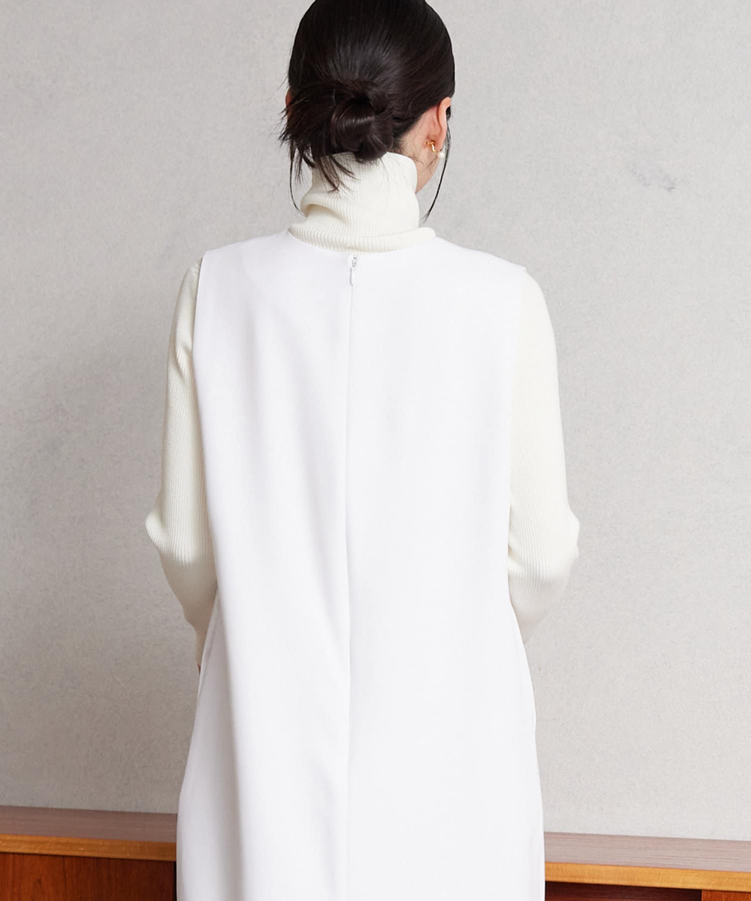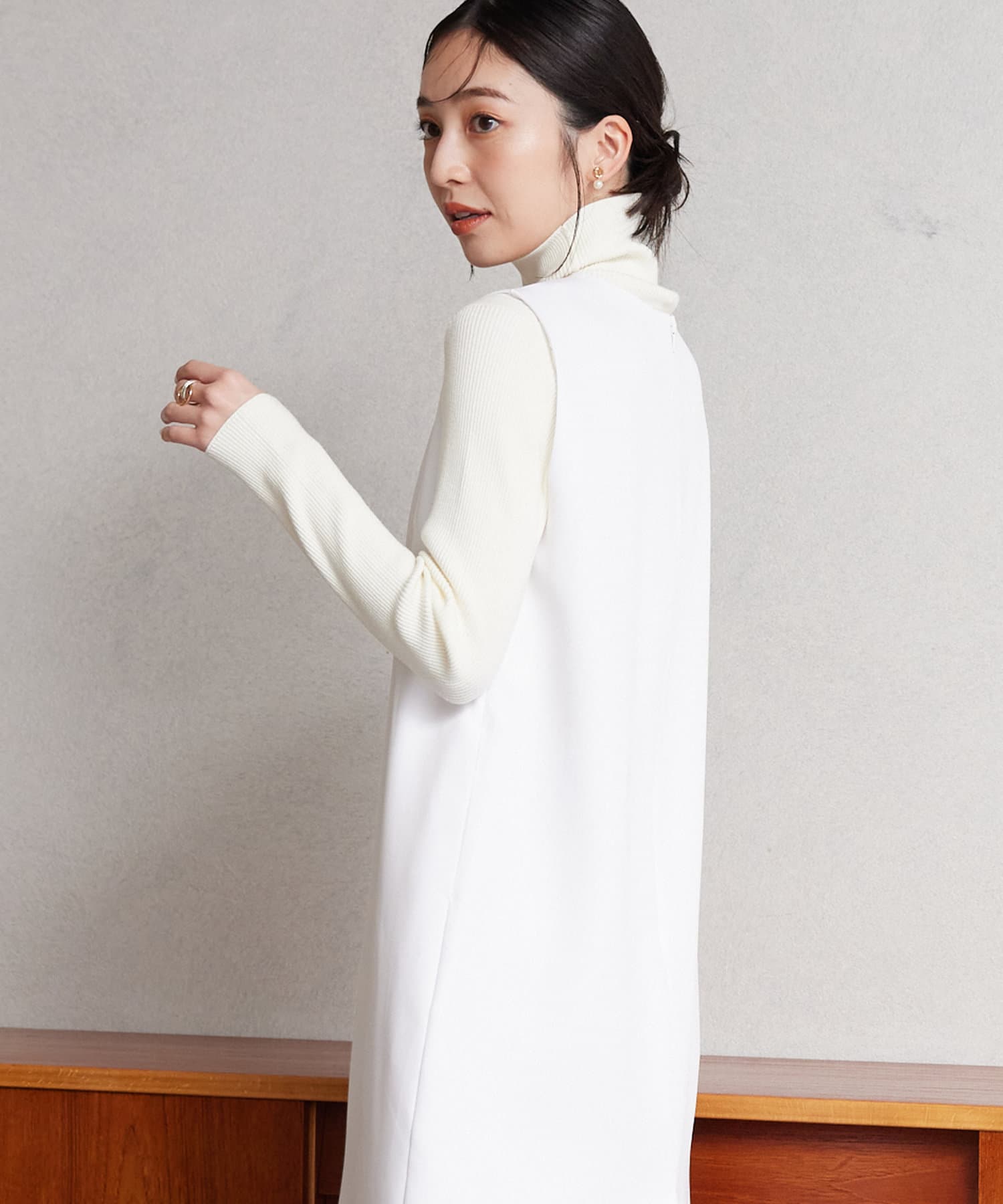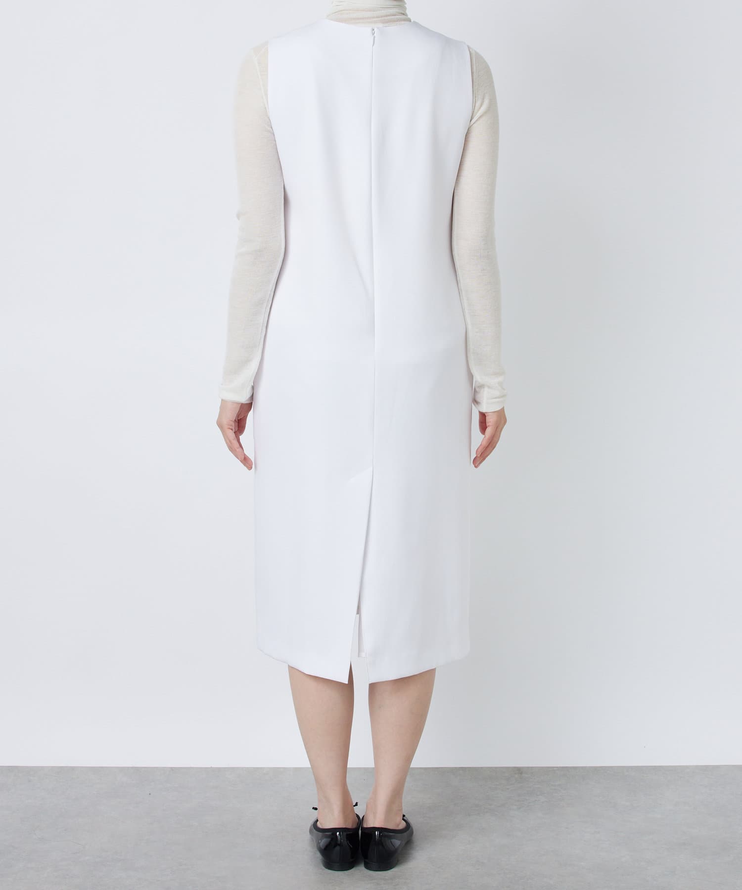 ノースリワンピとしても、レイヤードも楽しめるシーズンレスアイテムで、Iラインのシルエットですっきり見える一枚です。