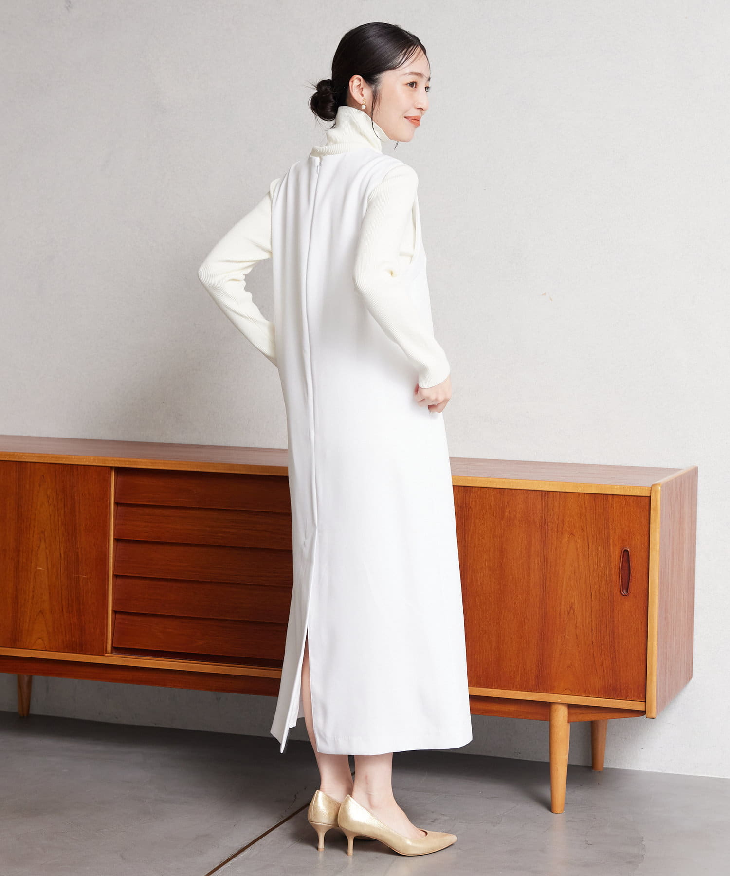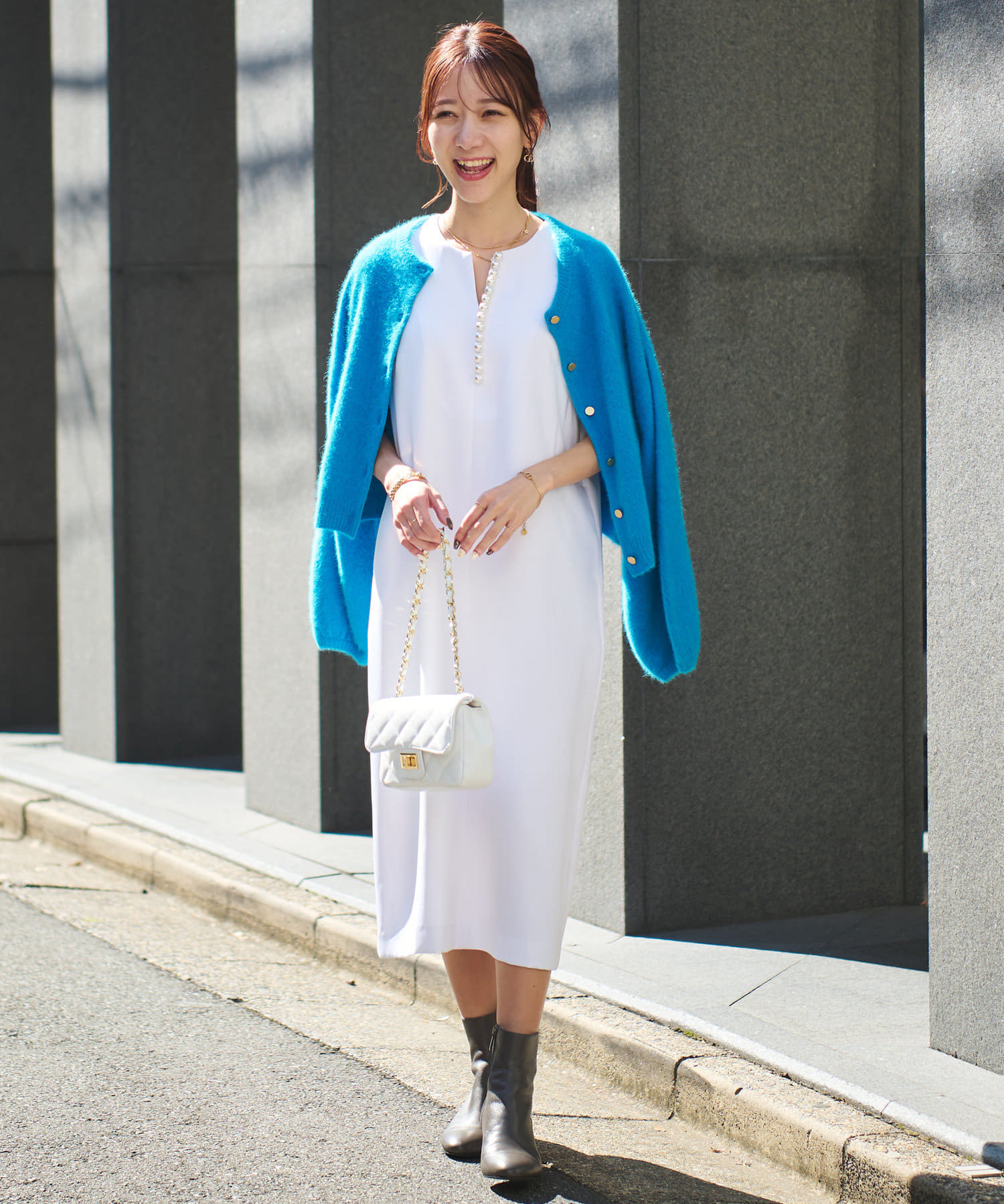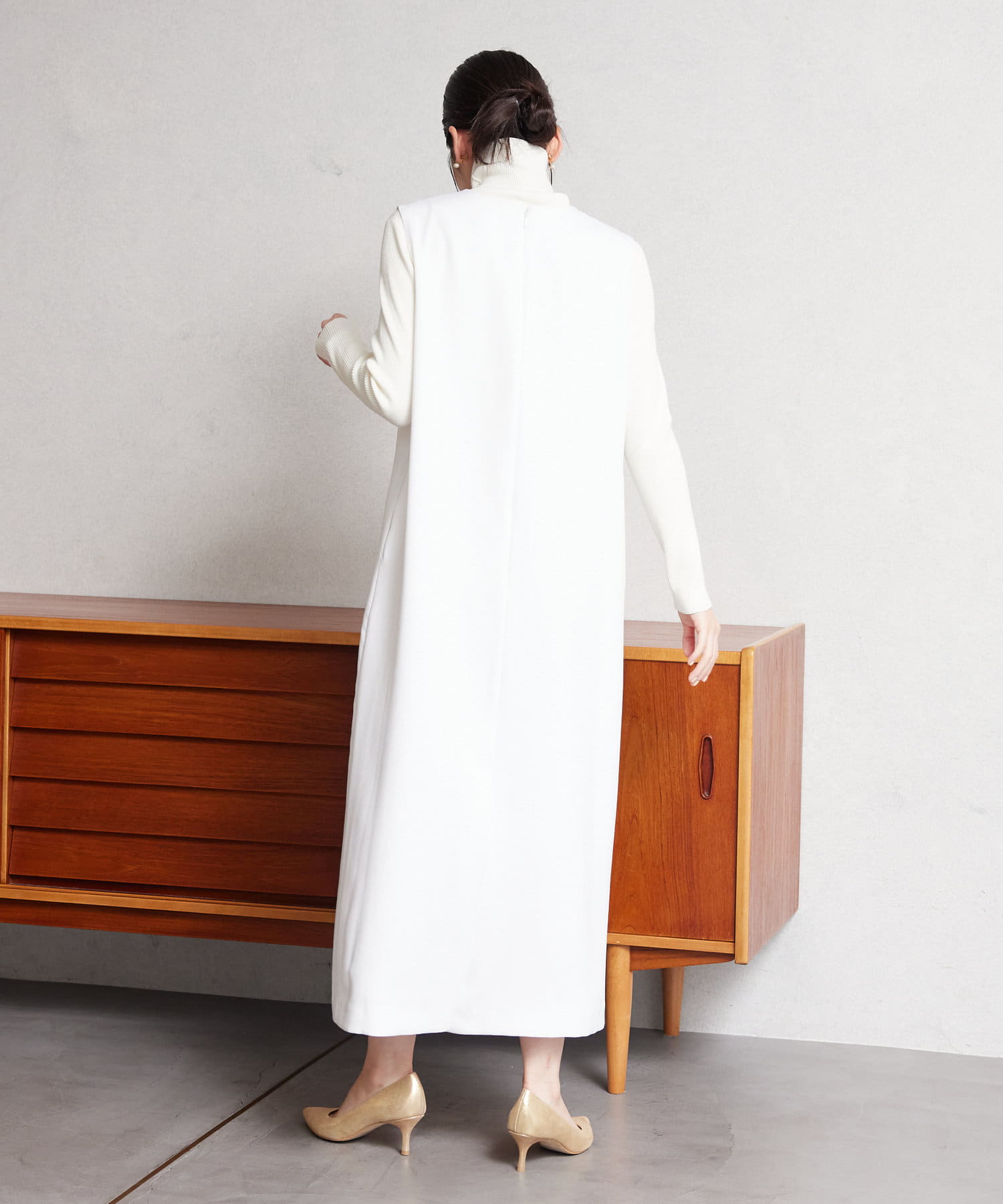 ノースリワンピとしても、レイヤードも楽しめるシーズンレスアイテムで、Iラインのシルエットですっきり見える一枚です。