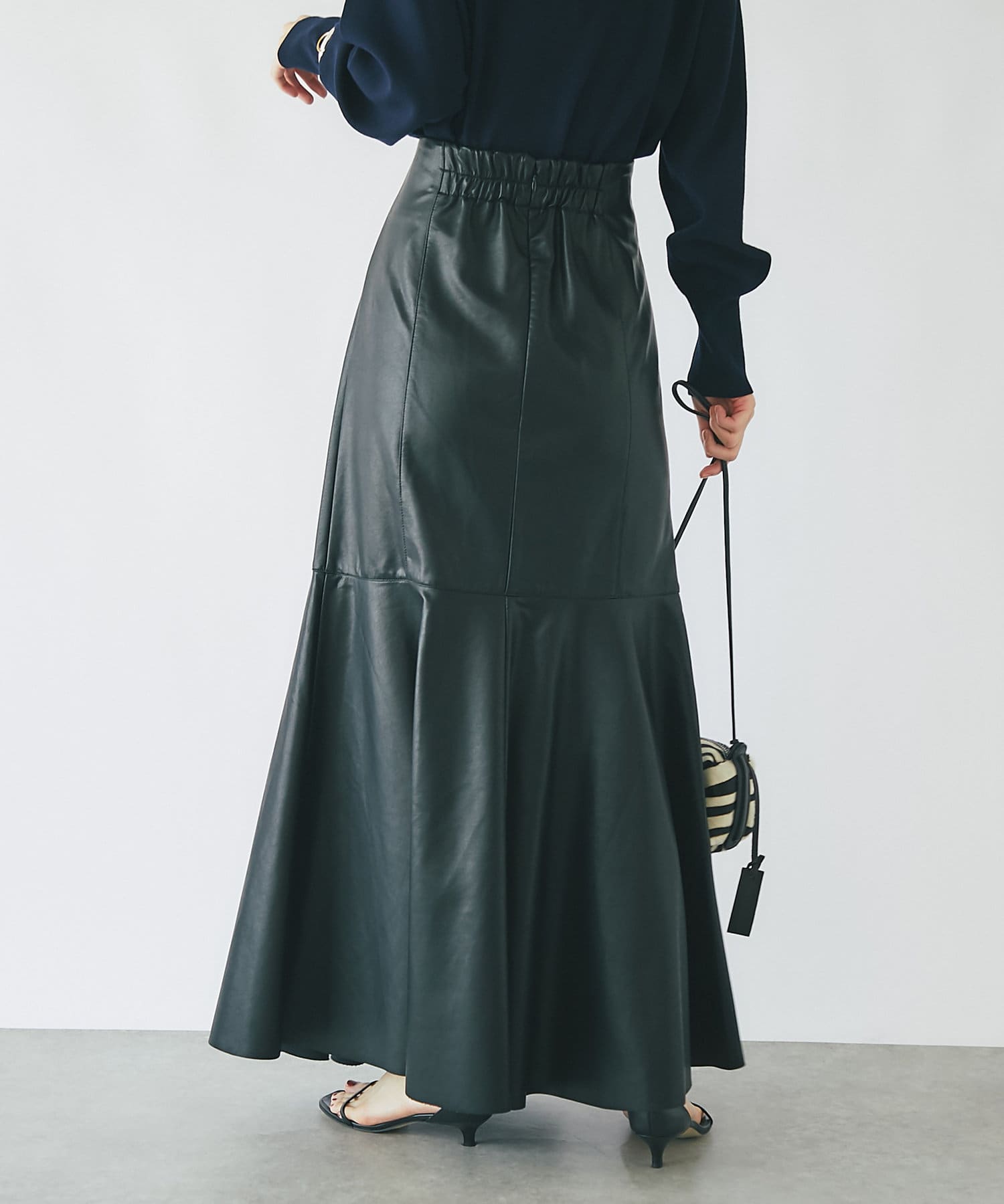 美シルエットのエコレザースカート