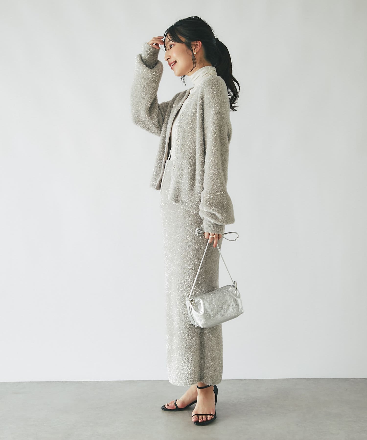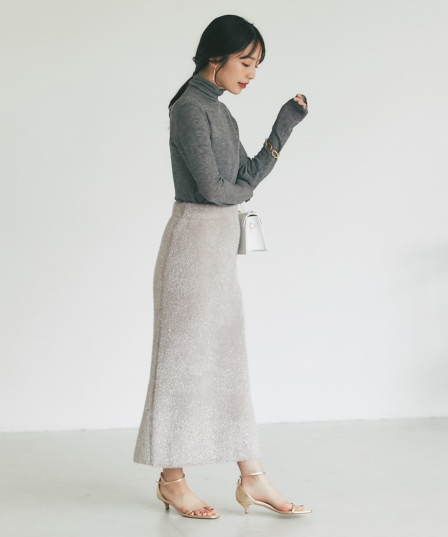 【追加オーダー決定・トレンドラメ・セットアップ着用可】ラメシャギーニットスカート