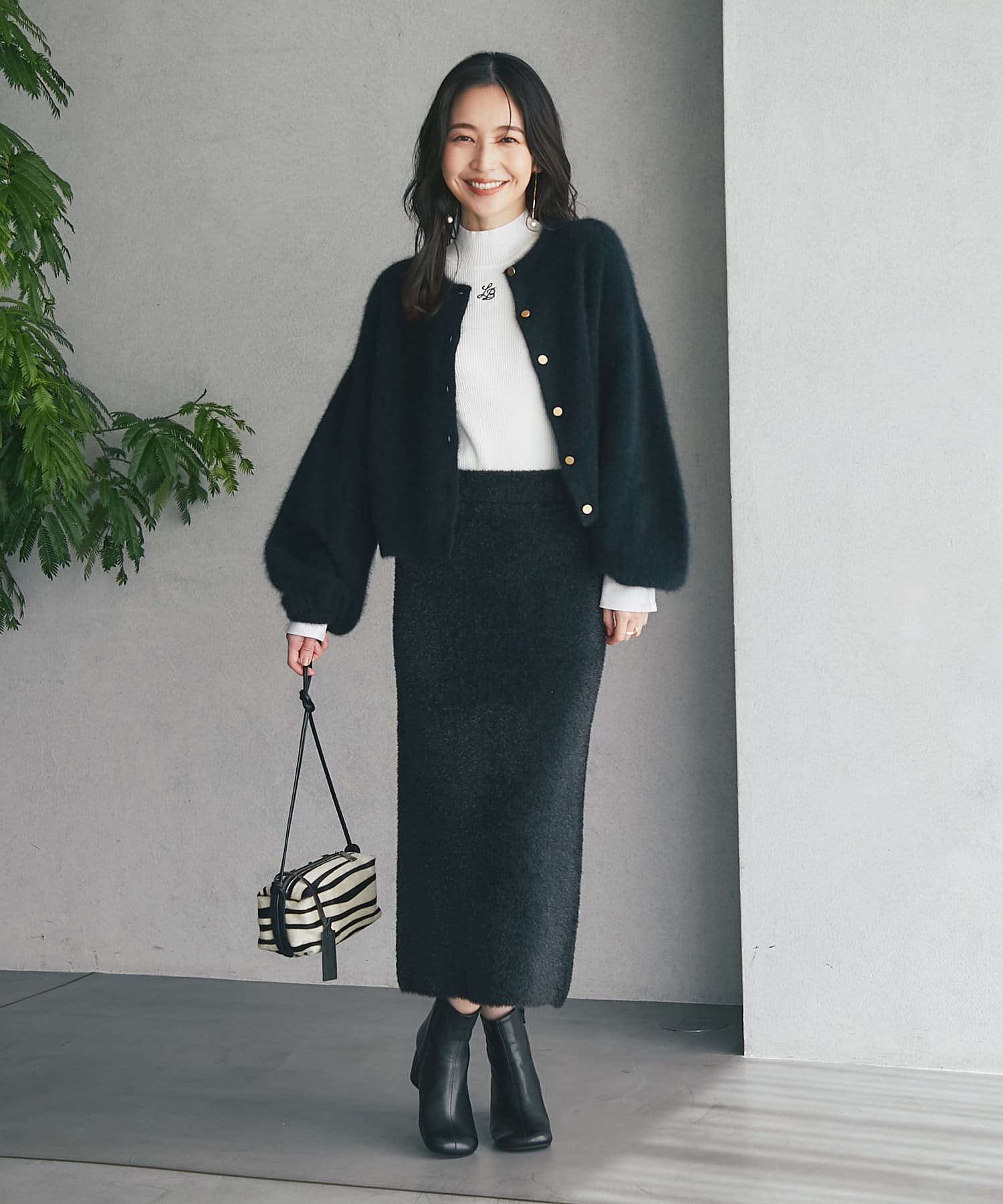 バックスリットで足さばきもよく歩きやすく、同素材のトップスとセットアップ着用も可能です。
