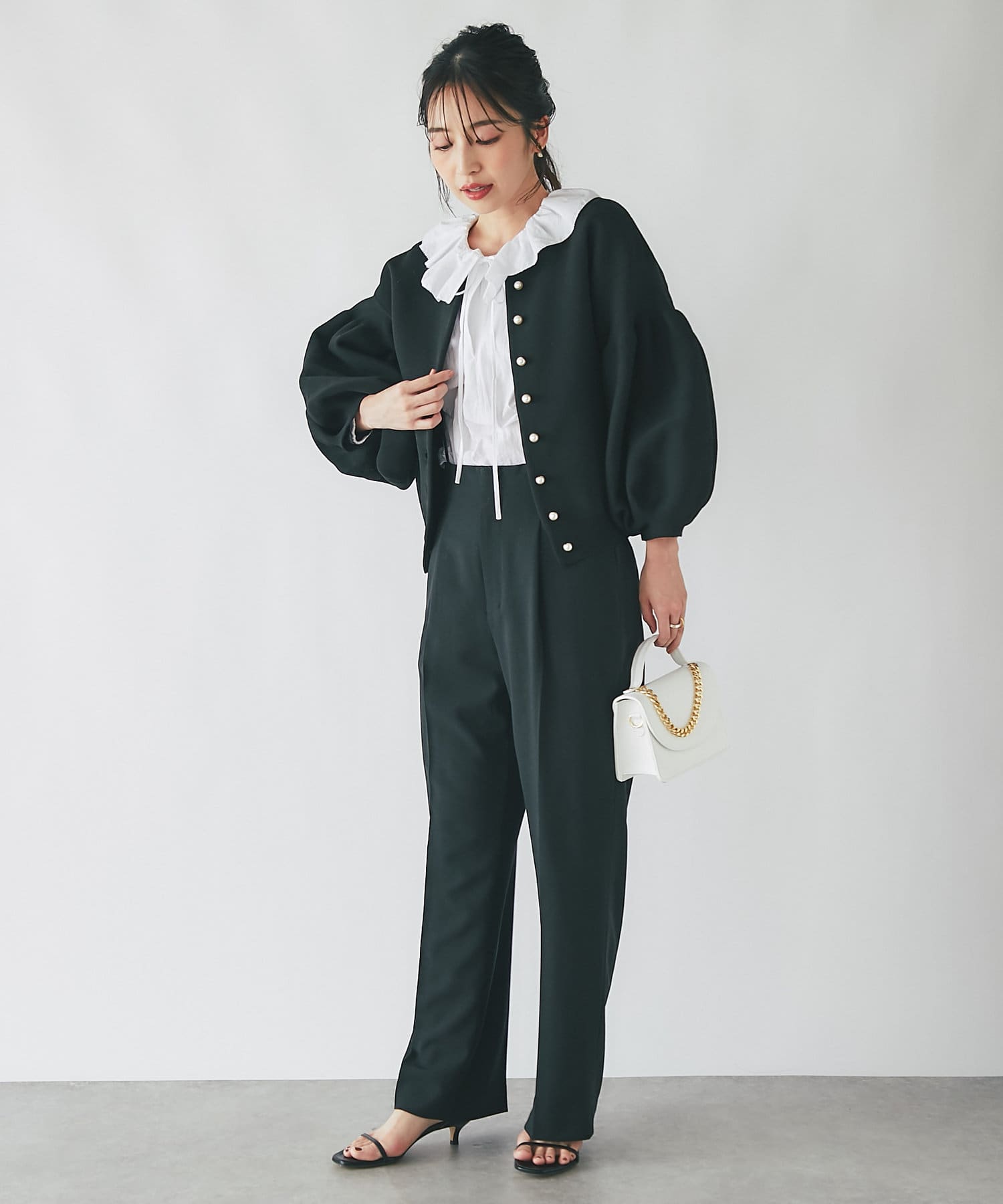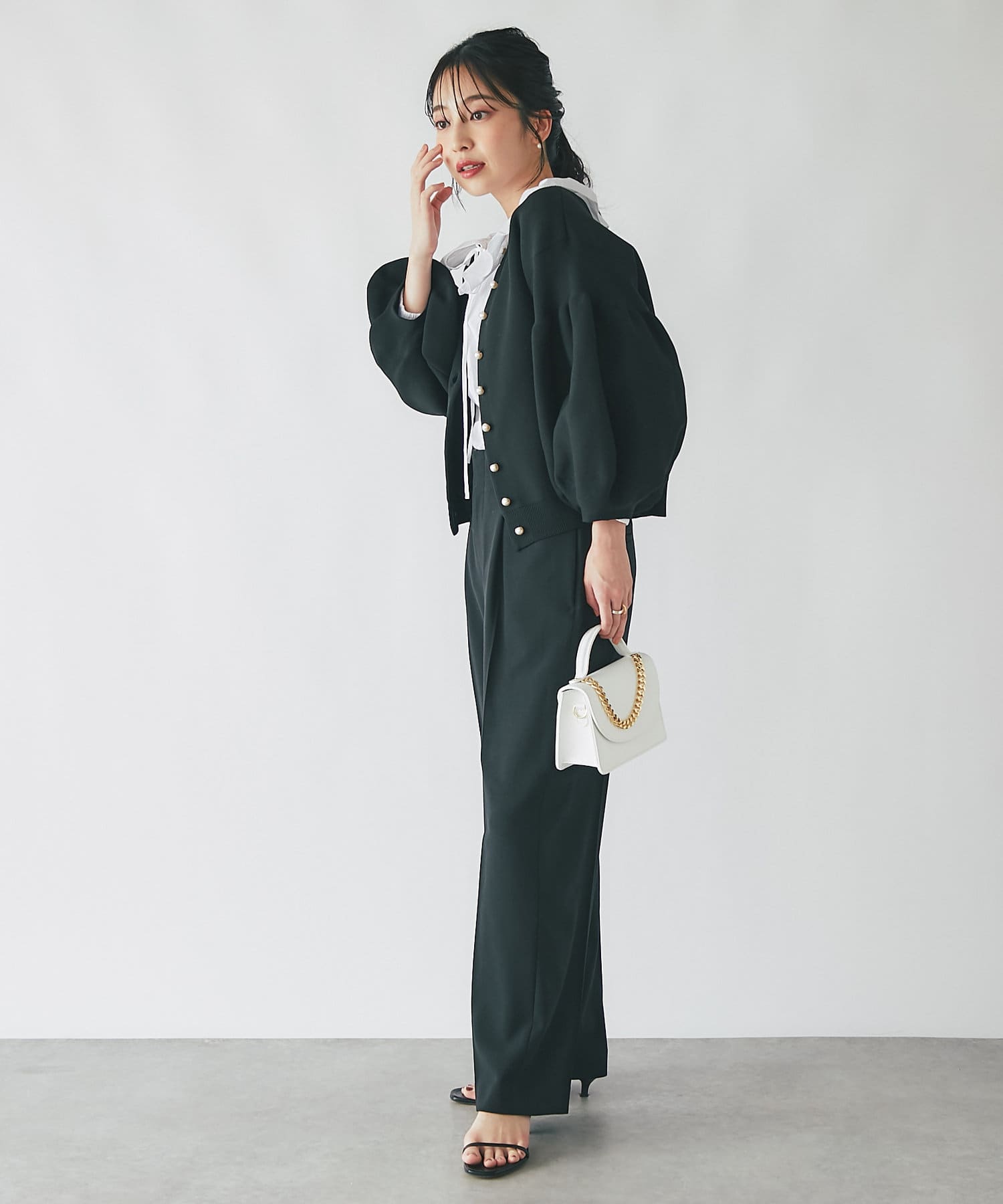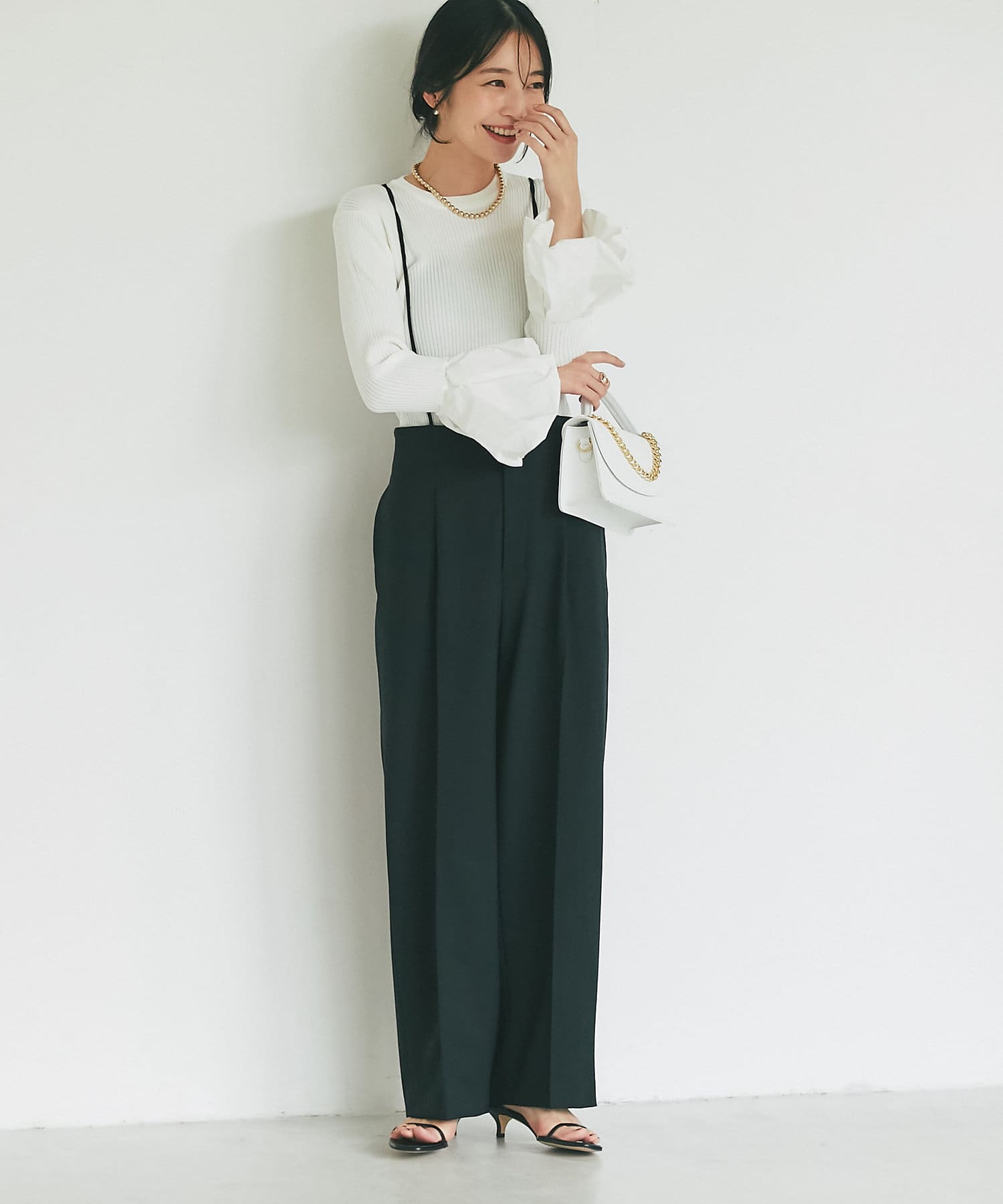 ブラウスやニットを重ねてフェミニンに見せても〇