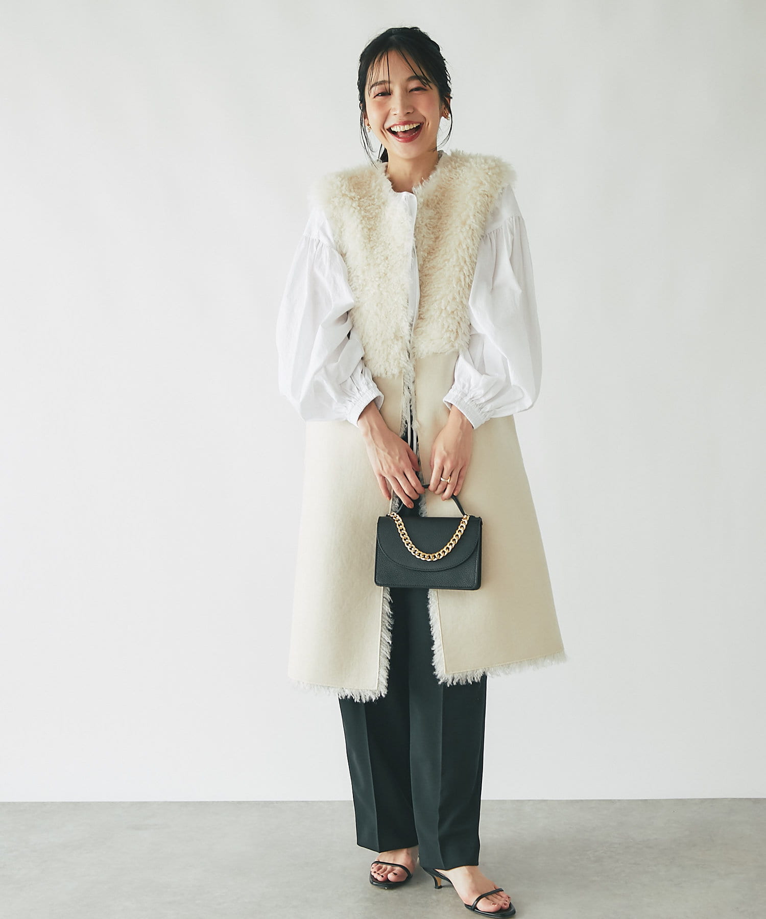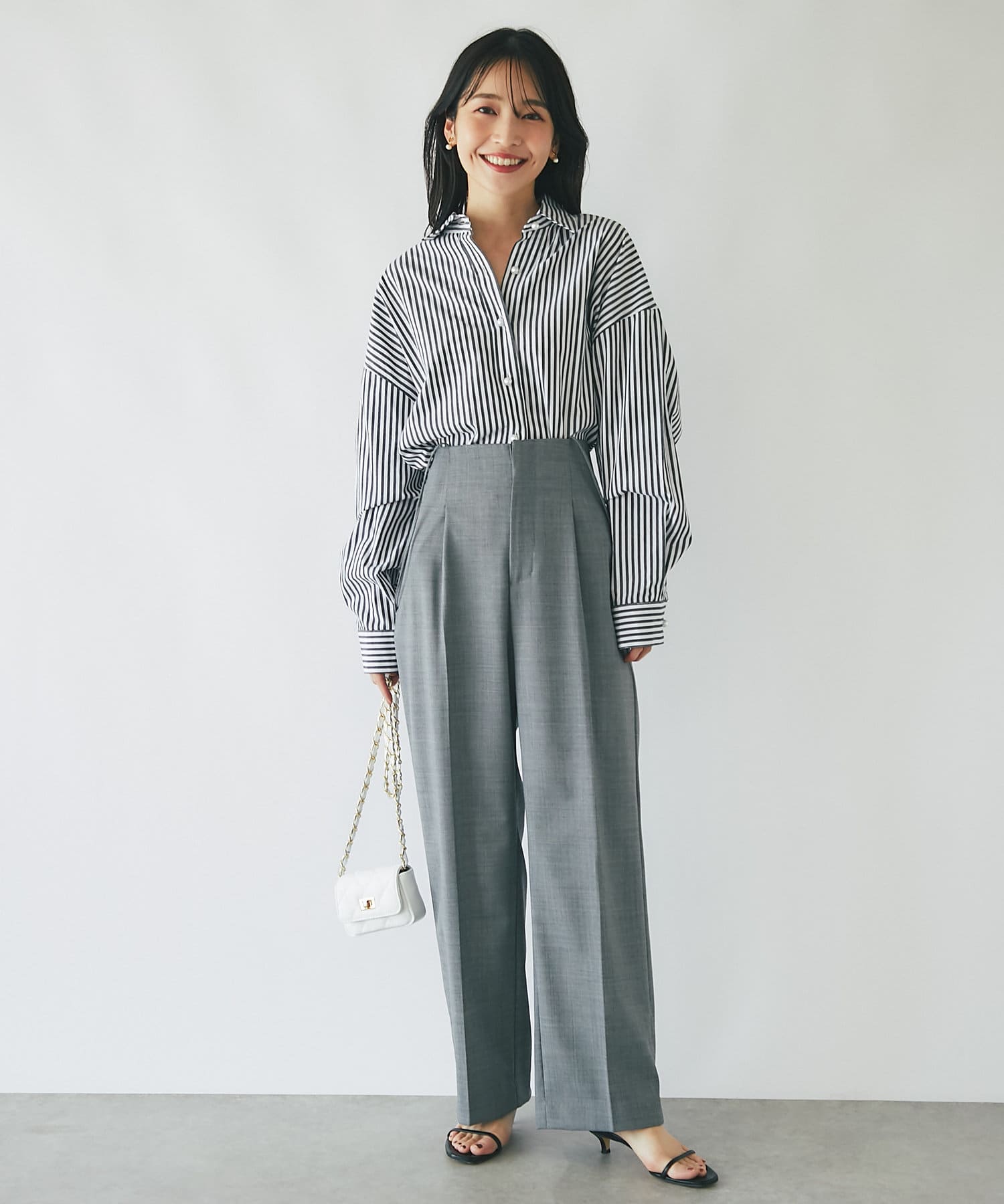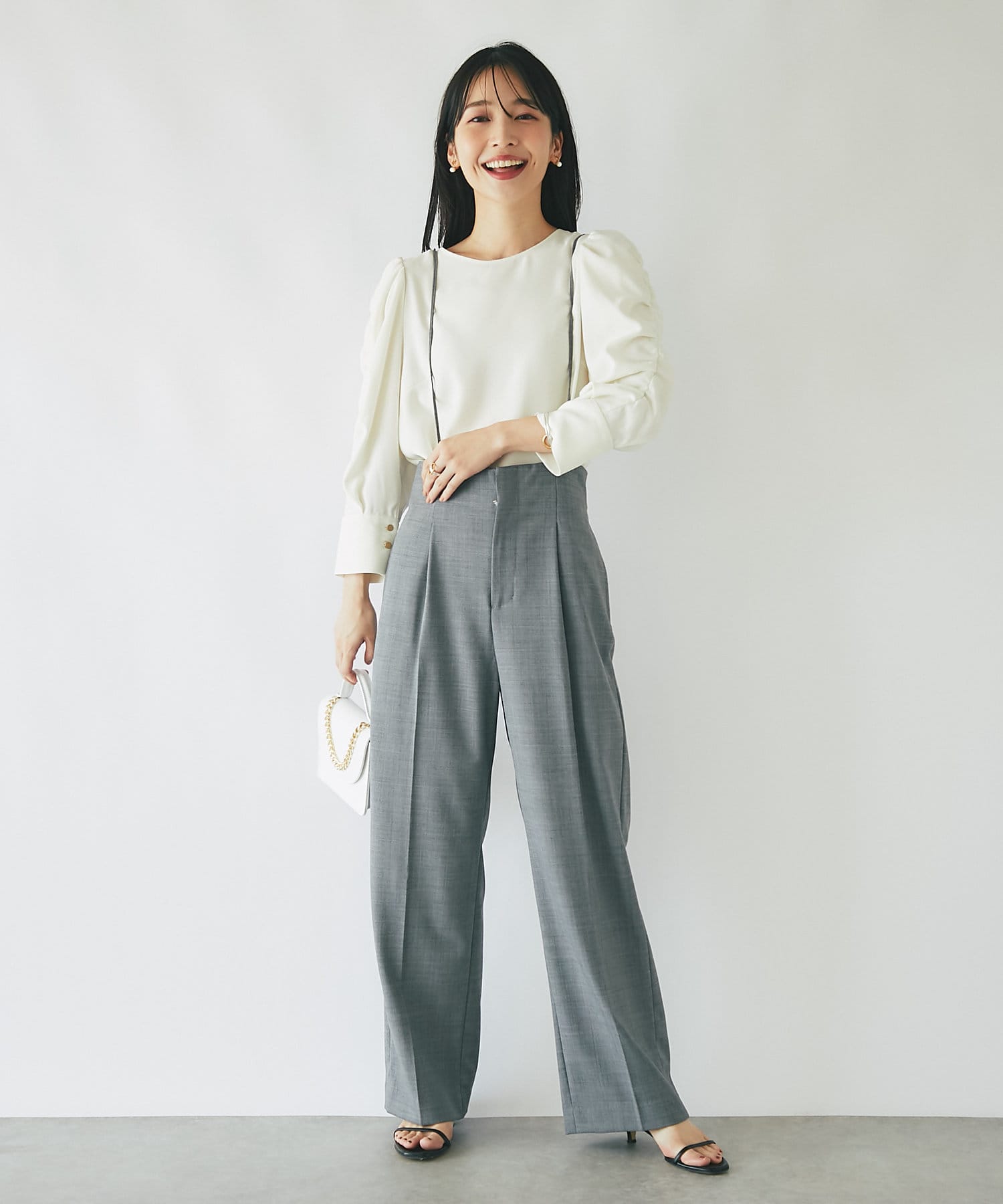 ブラウスやニットを重ねてフェミニンに見せても〇