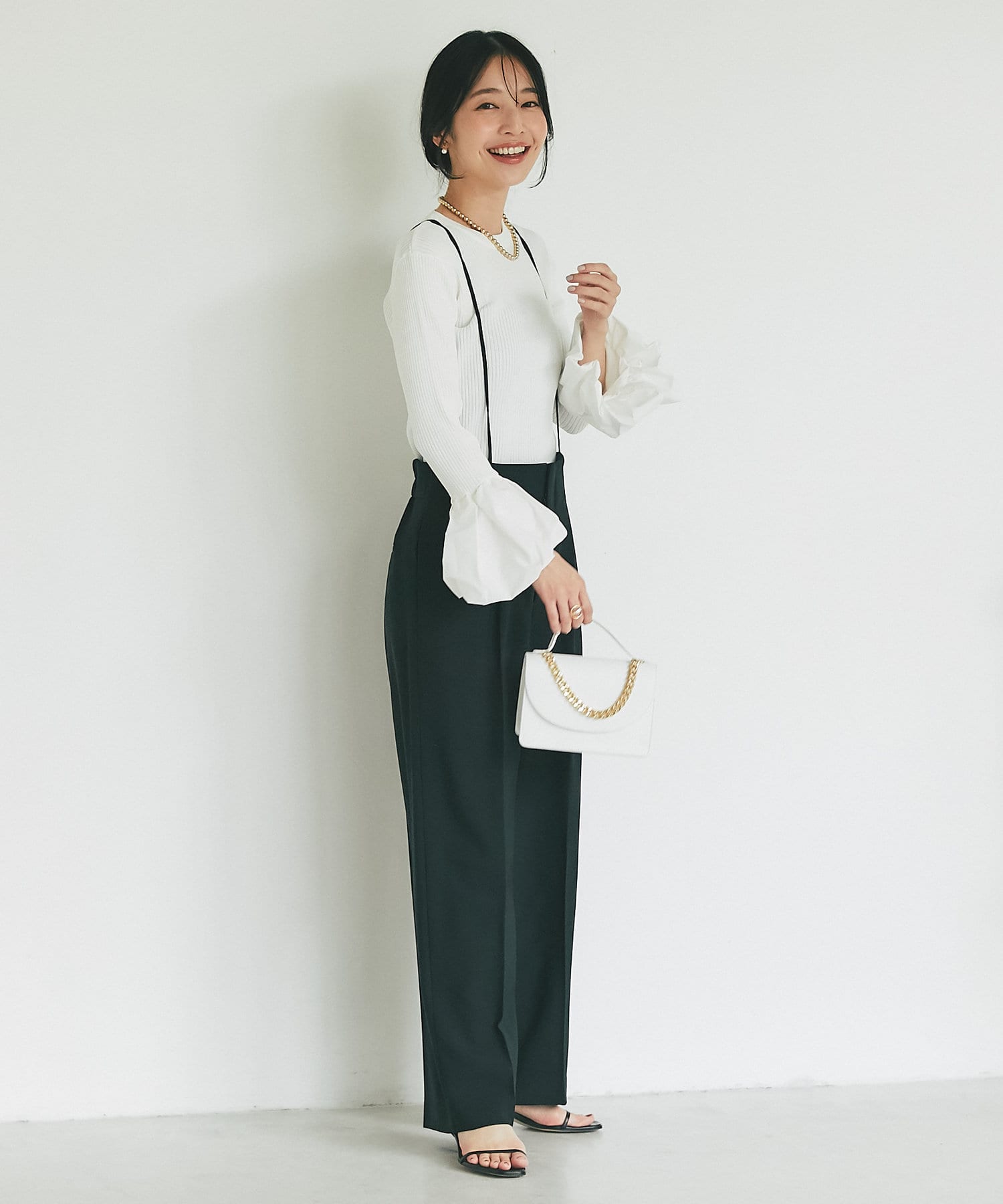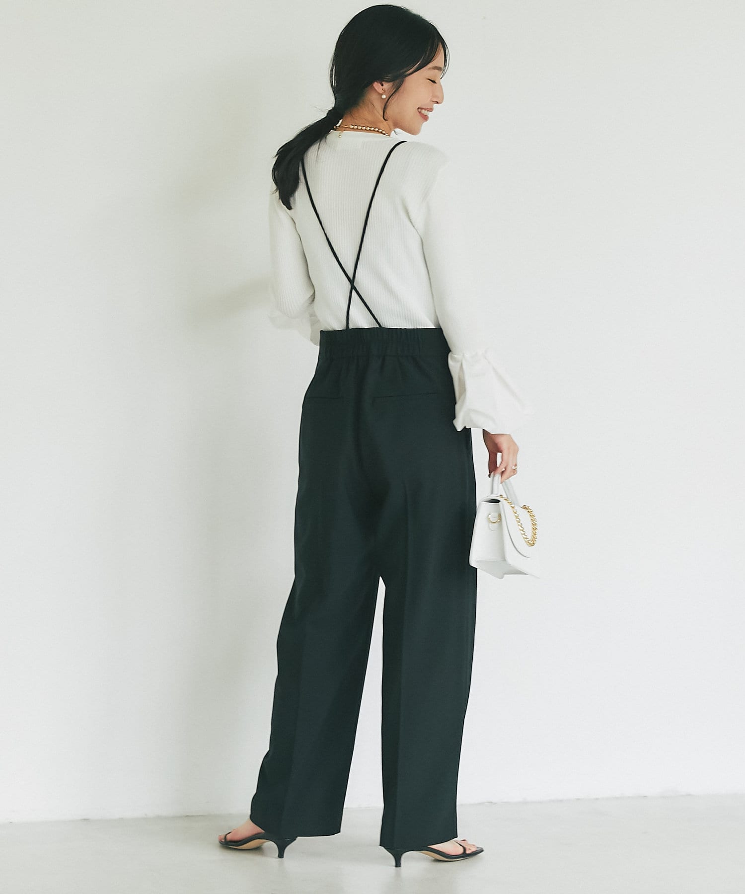 【人気アイテムリバイバル・美脚足長効果抜群】ストラップパンツ