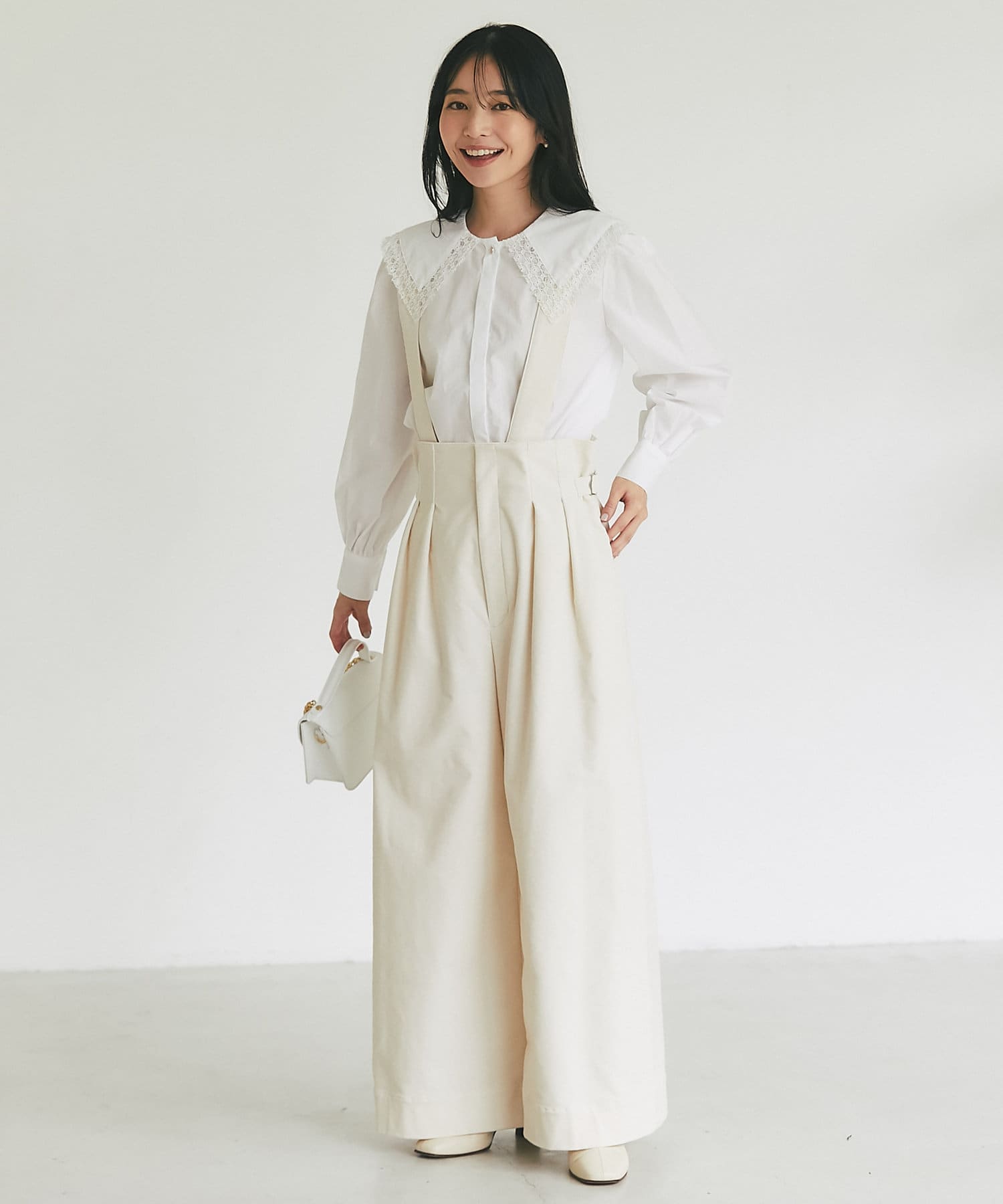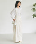 ブラウスやレースなど甘めのアイテムとの相性も抜群。