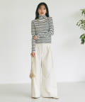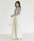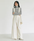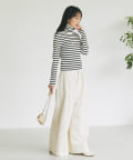 大人カジュアルにカットソーと合わせてもウエストラインがすっきりとしているので綺麗に着こなせます。