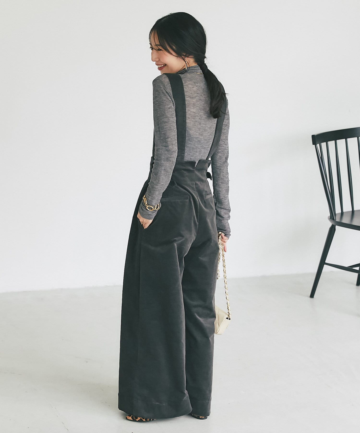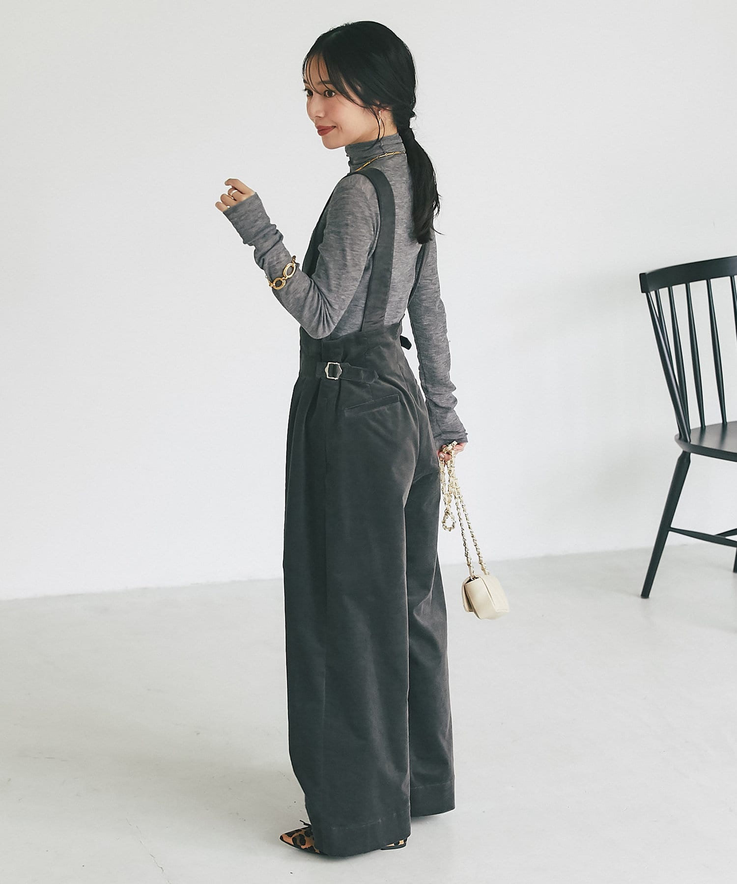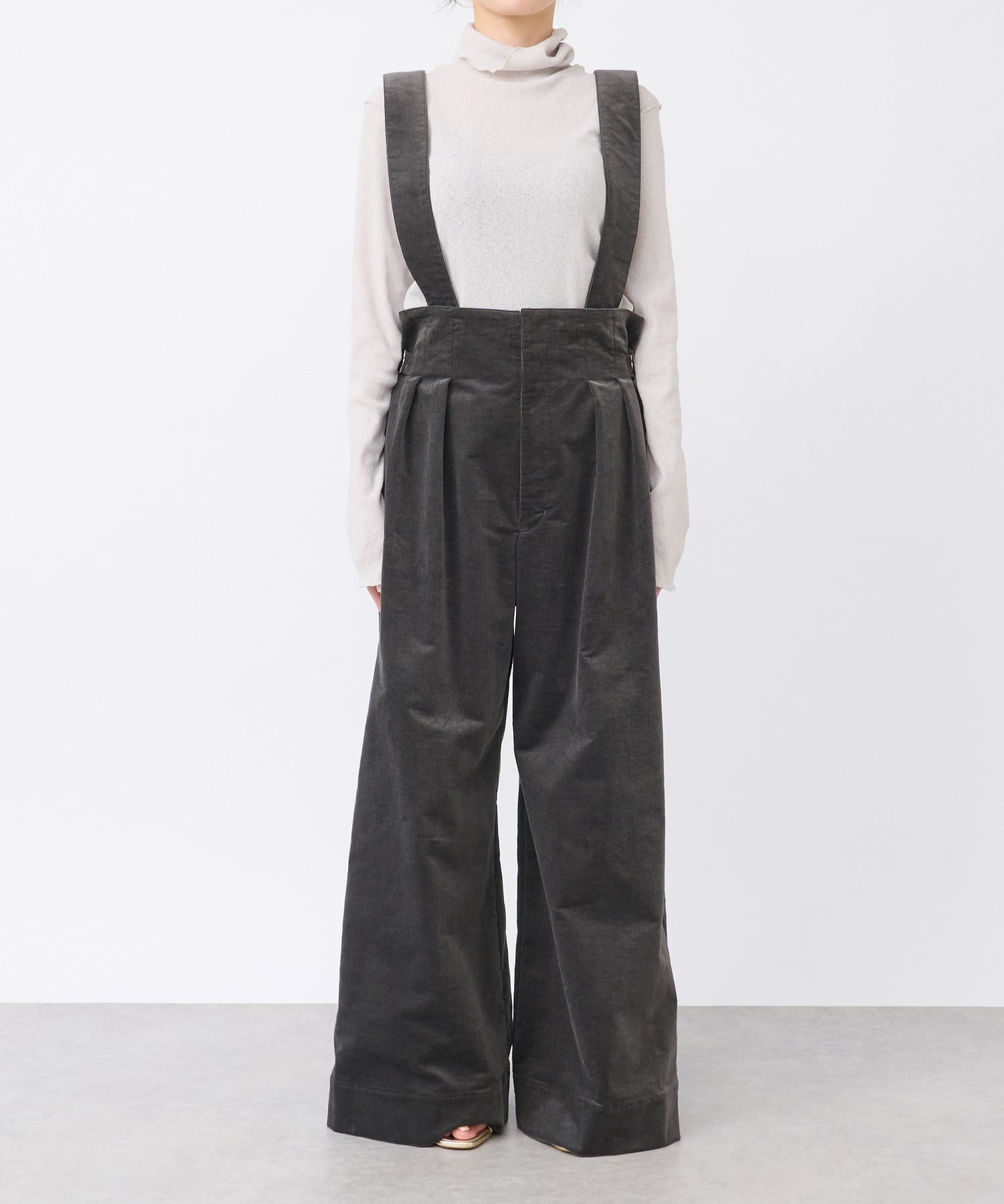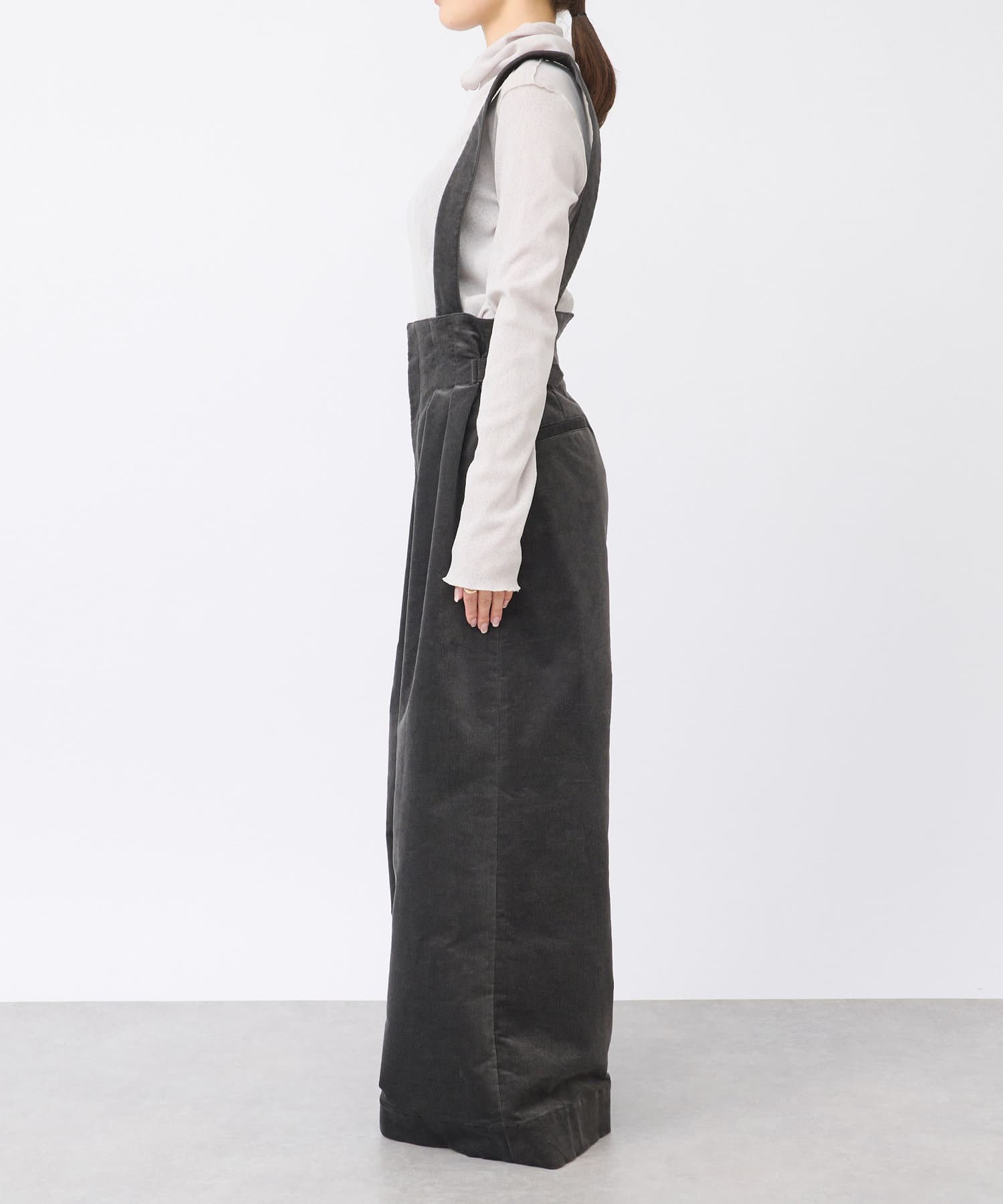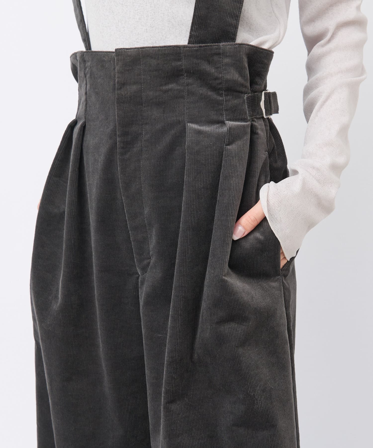秋冬にぴったりのコーデュロイ素材のサスペンダーバギー