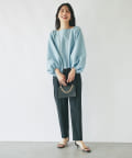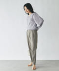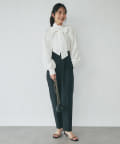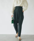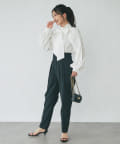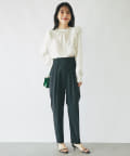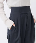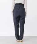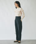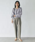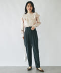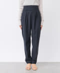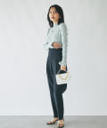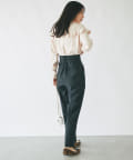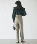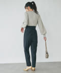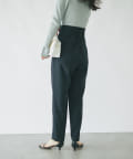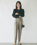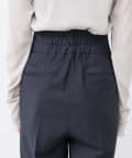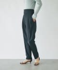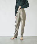 ハイウエストデザインとセンタープレスで足長効果のあるテーパードパンツ。