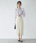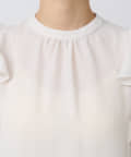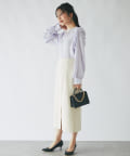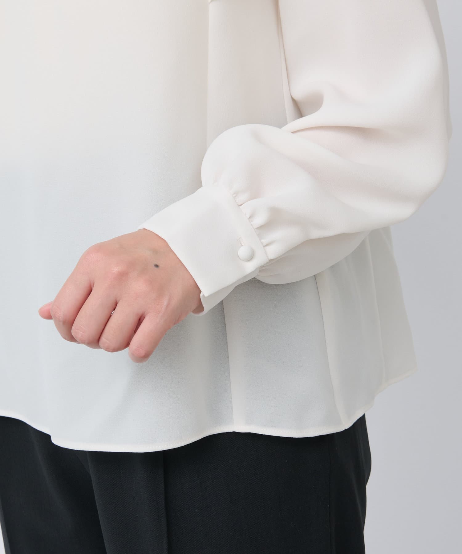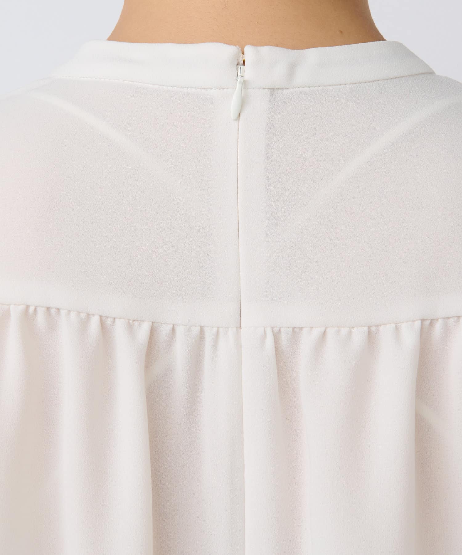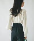 縦切り替えにラッフルを挟み込んだ大人フェミニンブラウス